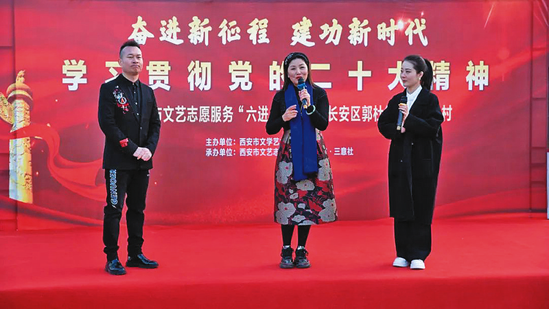12月14日下午,由西安市文联主办的“奋进新征程 建功新时代”学习贯彻党的二十大精神——西安市文艺"六进"志愿服务活动在长安区郭杜街道南小张村举办。西演西安三意社的演员们冒着严寒,深入农村,开展惠民演出。