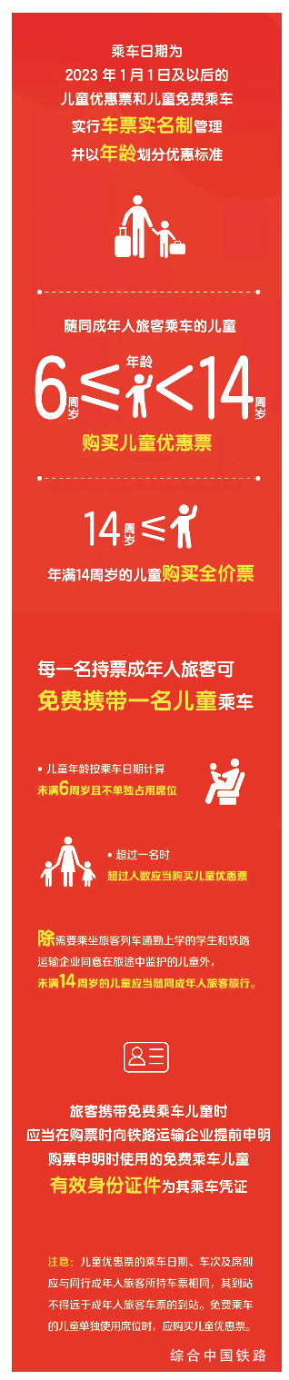 2023年1月1日及以后儿童优惠票和儿童免费乘车实行车票实名制管理并以年龄划分优惠标准