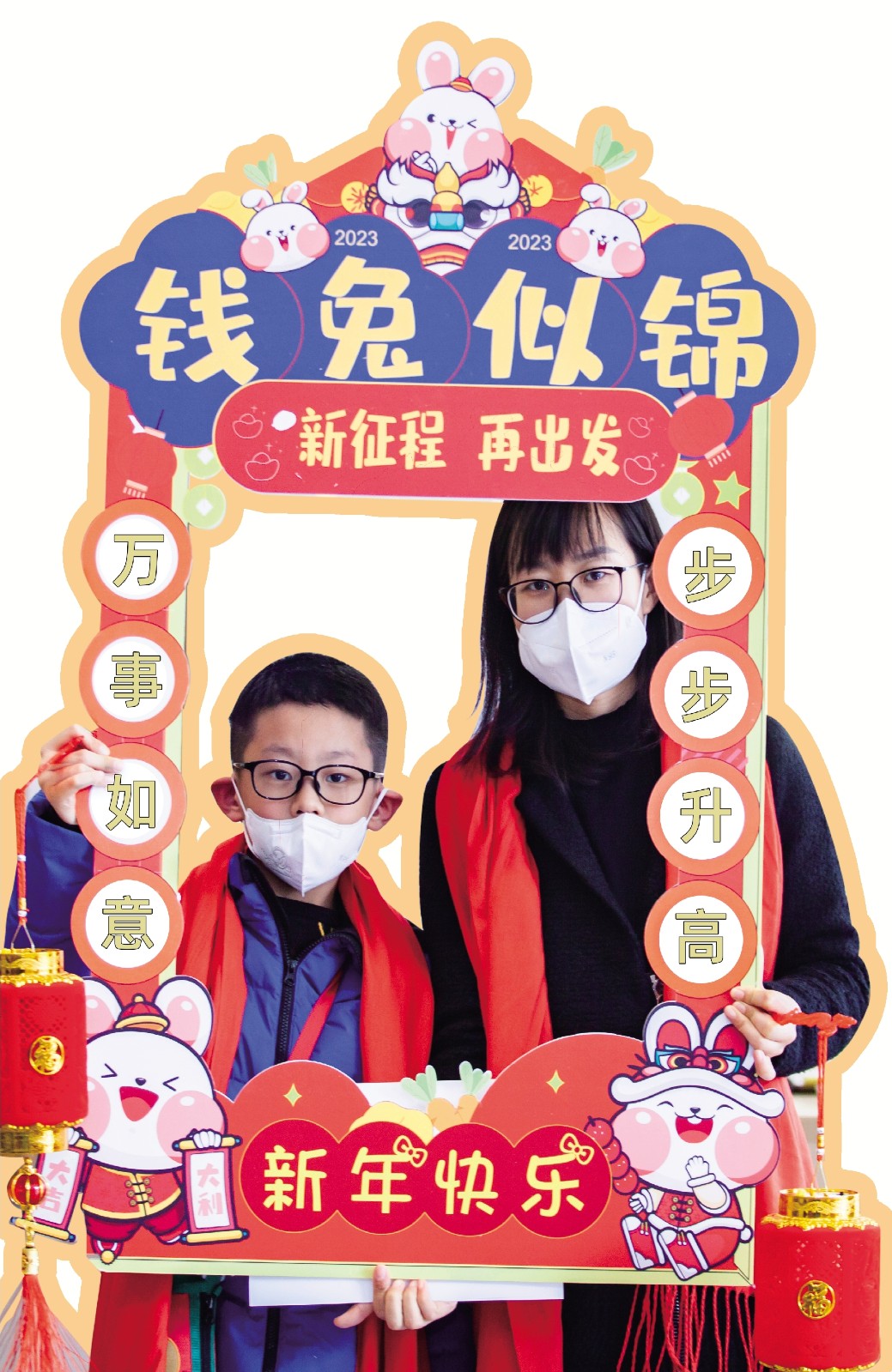 在示范职工书屋签到处,现场工作人员将代表喜庆与祝福的红围巾一一佩戴在前来参加活动的劳动者身上,在引导员的指引下走进书屋拍照打卡。一张张写有“致敬劳动者”“乘风破浪砥砺前行”“2023加油”等字样的打卡牌放置在书屋里,劳动者一边参观,一边拿起打卡牌,微笑着合影留念。