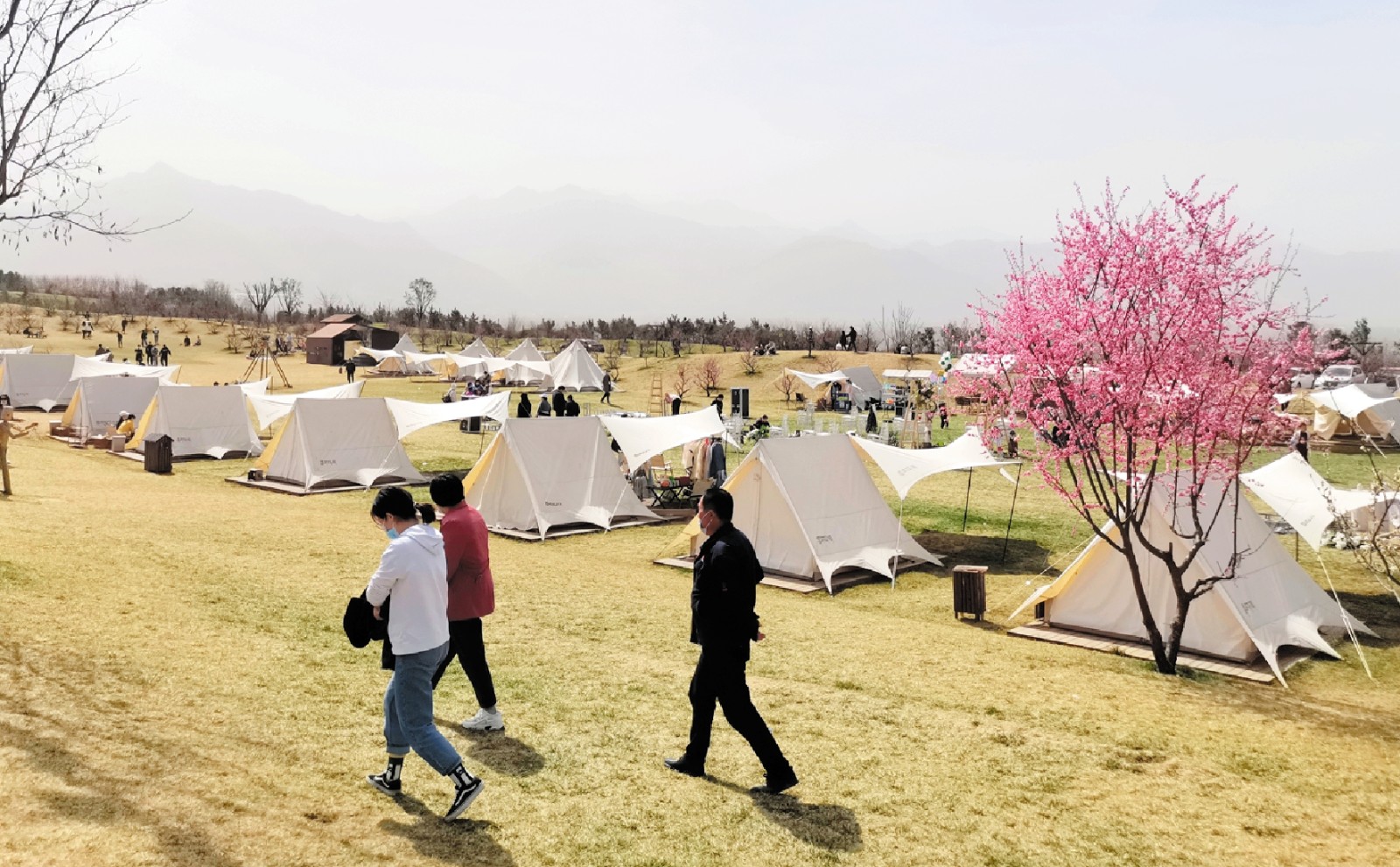3月12日植树节当天,不少市民早早开车来到了长安·唐村,在唐村指定的野营区域,支起帐篷。“让孩子亲近大自然,感受大自然,爱上大自然。”市民王先生说,出发前,他专门做了攻略,唐村的梅园是西安最大的梅园,地势高低起伏,其中的4000株梅树也“远近高低各不同”,穿梭其中颇有春游意趣。不少爱美的女性纷纷换上汉服,游走景中,景映春色,如同一幅绝美优雅的画卷。