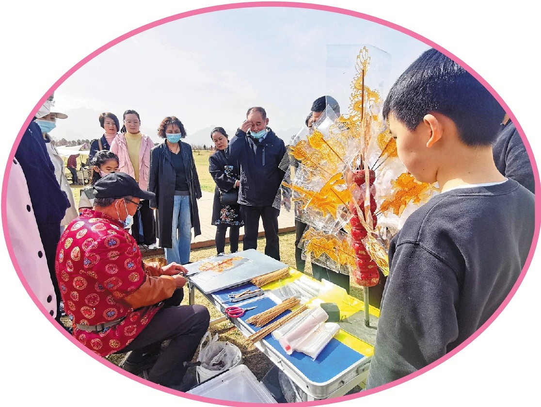 除了和煦的春风,娇艳的梅花,在艺术区,这里还为孩子们打造了萌宠乐园,游戏休闲互动区,放风筝、套圈、非遗糖画……乐趣不断。