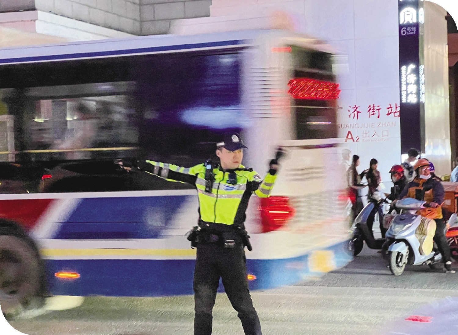 五一期间,一直在岗的西安交警刘东。(通讯员 毛蓝婧)
