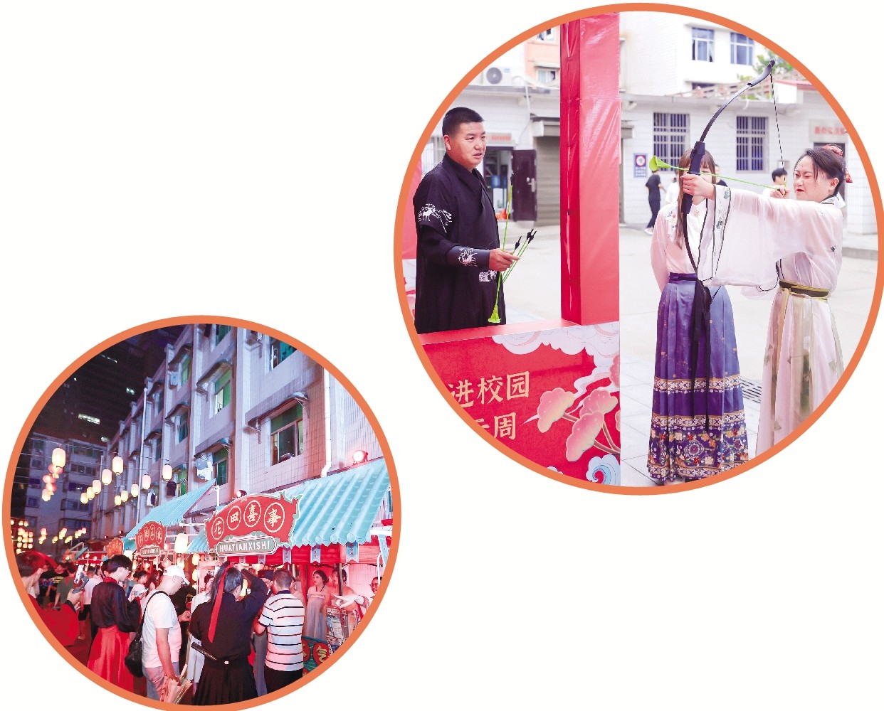 活动以独具特色的商贸文化街为载体,场景式再现夜长安的繁荣景象,通过穿华美汉服、赏非遗技艺、诵汉韵国风、品三秦美食、展商贸绝活等多种形式,带领学生们开启一场中华优秀传统文化沉浸式实景体验之旅。