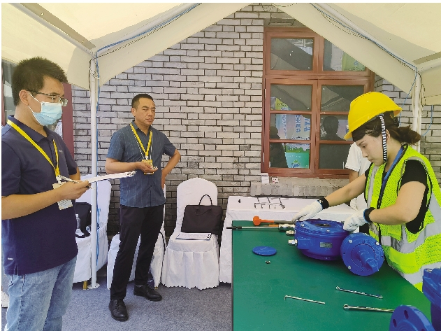 竞赛分为实操考核和理论考试两部分。实操考核内容包括供水管网漏水探测及地理信息数据测量,供水阀门拆、装,供水管网及附属设施的加工与安装等三个模块。理论考试主要考查管网系统的设计、安装、运行、维护、修理等方面的知识和经验。