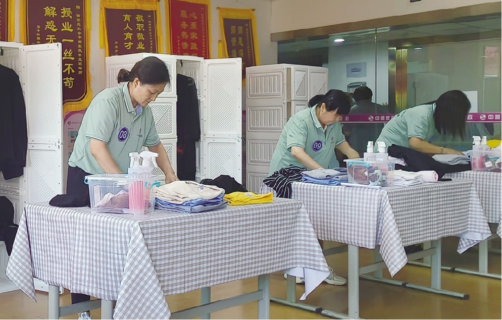 家庭烹饪赛区内,家政员们拿起炒瓢、掂起大勺,不一会儿,一盘香气扑鼻的宫保鸡丁便出了锅。在衣、物整理考区,摆在每位家政员面前的是一个白色衣柜,打开柜门,里面凌乱地堆放着30余件衣物。如何在15分钟内做好衣、物的整理收纳考验着每一位选手的“真功夫”。
