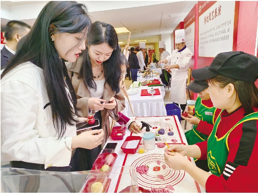 在技能展演环节,来自西安市财贸系统行业代表企业的劳模工匠、职业技能带头人、职工代表,及陕南、陕北和关中其他地区的非遗项目传承人现场进行了传统非遗、餐饮技艺、家政服务、食品工业、旅游服务五大板块、13个项目的展演,为师生们上了一堂生动的“劳模工匠精神”和“艺术鉴赏课”。