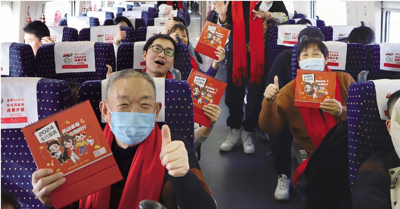 火红的福字、对联,喜庆的红围巾,精心设计的打卡点,处处充满着年味。每一位坐上爱心专列的人员都能领取市总工会为他们精心准备的大礼包。“工会的爱心专列活动真是太给力了,我们这次回家,一家四口光是车票就要省出来800多元钱呢。”产业工人侯凯忠高兴地说。