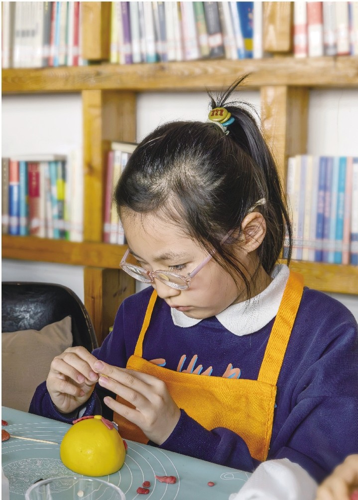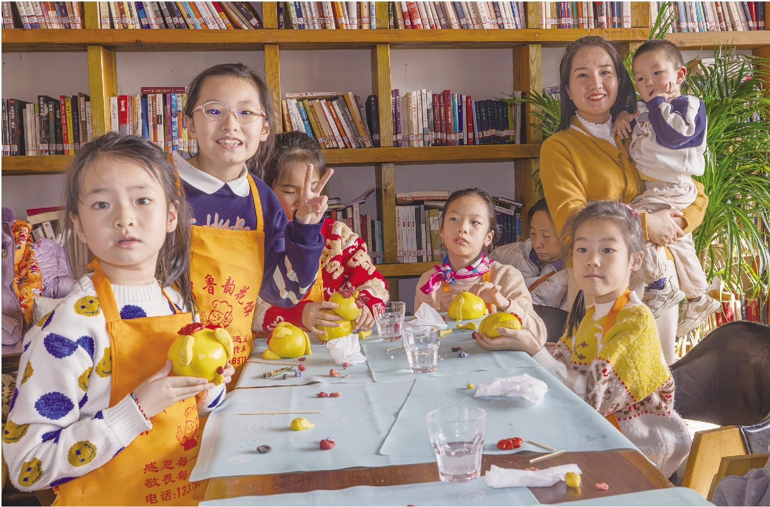 1月28日,西安歌思泊书斋,一群小学生在刘老师的指导下,正在学做陕西花馍。
