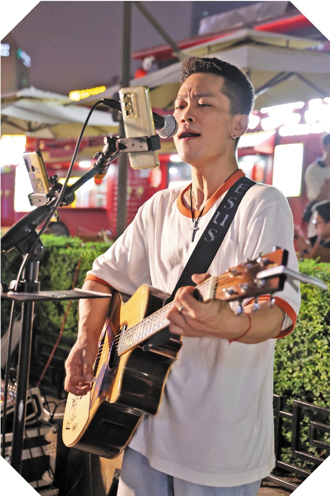 有人说西安白天叫西安,晚上叫长安,那是因为在世人的眼中,古城西安夜晚更古典,更美丽。夏日的夜晚,微风拂面,在城墙下遛弯散步,邂逅一支乐队,与歌迷们挤在迷人的街灯下看艺人演出,听上几首流行歌曲,无论是摇滚,还是民谣,时不时地跟着歌手唱几句、吼两声,便能找到自己的音乐体验,这大概就是一种艺术的共鸣,也是城墙下最文艺的事儿。 文\图 巴岩