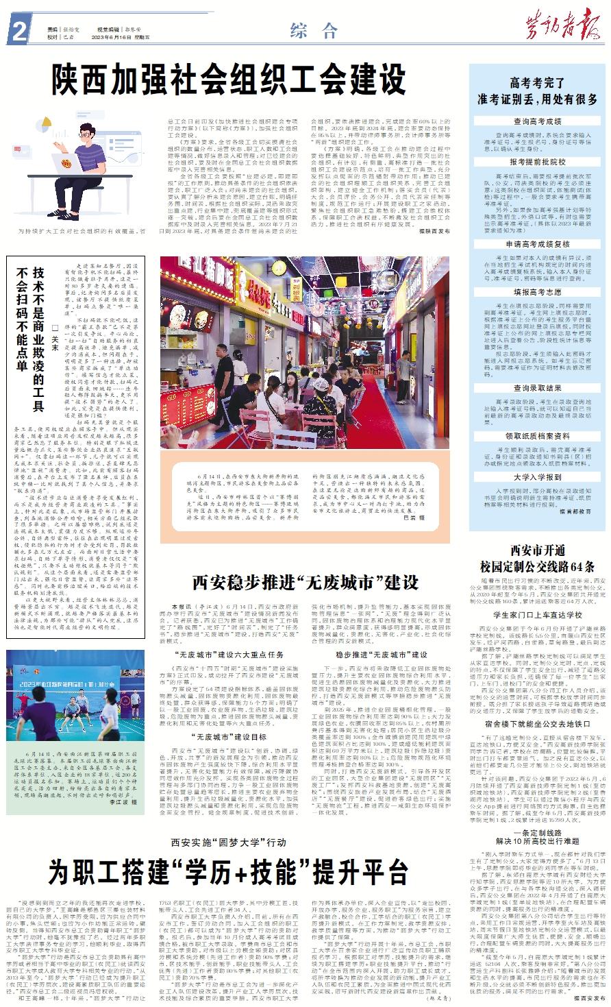 “没想到到而立之年的我还能再次走进学校,圆自己的大学梦。”王高峰是鄠邑区三秦包装材料有限公司的负责人,因学历受限,曾为供应合同中的小事,焦头烂额;也曾为小作坊能正常运转,辗转反侧。当得知西安市总工会资助青年职工“圆梦大学”行动时,他毫不犹豫报了名。经过两年多职工大学法律事务专业的学习,他顺利毕业,取得西安市职工大学专科毕业证。 “圆梦大学”行动是西安市总工会资助具有高中学历或者相当于高中毕业的职工(农民工)就读西安市职工大学成人教育大学专科相关专业的行动。“从2013年至今,‘圆梦大学’行动已经成为提升职工(农民工)学历层次,建设高素质职工队伍的重要途径。”西安市总工会二级巡视员冯增权说。 和王高峰一样,十年来,“圆梦大学”行动让1753名职工(农民工)圆大学梦,其中劳模工匠、技能带头人、工会先进工作者34人。 西安市职工大学负责人介绍,目前,所有在西安市工作,签订劳动合同,加入工会组织的职工(农民工)都可以成为“圆梦大学”行动的资助对象。报名后,参加当年10月份成人高考考试且成绩合格,被市职工大学录取。学费由市总工会和市职工大学资助,对市级以上劳模全额资助;对区县劳模和系统劳模(先进工作者)资助90%学费;对市、区技术能手、创新能手、职业技能带头人、工会优秀(先进)工作者资助80%学费;对其他职工(农民工)资助70%学费。 “圆梦大学”行动是市总工会为进一步深化产业工人队伍建设改革,提升产业工人学历层次、技术技能及综合素质的重要举措。西安市职工大学作为具体承办单位,深入企业宣传,以“走出校园、开放办学、服务企业、服务职工”为服务宗旨,建立产教融合、校企合作、工学结合的职工(农民工)学历提升新模式。在工作方案制定、教学资源安排、教学质量管理等方面,为推动“圆梦大学”行动工作提供了保障。 “圆梦大学”行动开展十年来,市总工会、市职工大学在百余家企业进行广泛宣传动员职工踊跃报名学习。根据职工对学历、技能提升的需求,继续为职工搭建学历+职业技能提升平台,推动“行动”在全市范围内深入开展,助力职工成长成才,将所学转换为推动企业发展的新动能,提升产业工人队伍和农民工素质,为全面推进中国式现代化西安实践,谱写新时代西安建设新篇章作出贡献。 (赵文青)