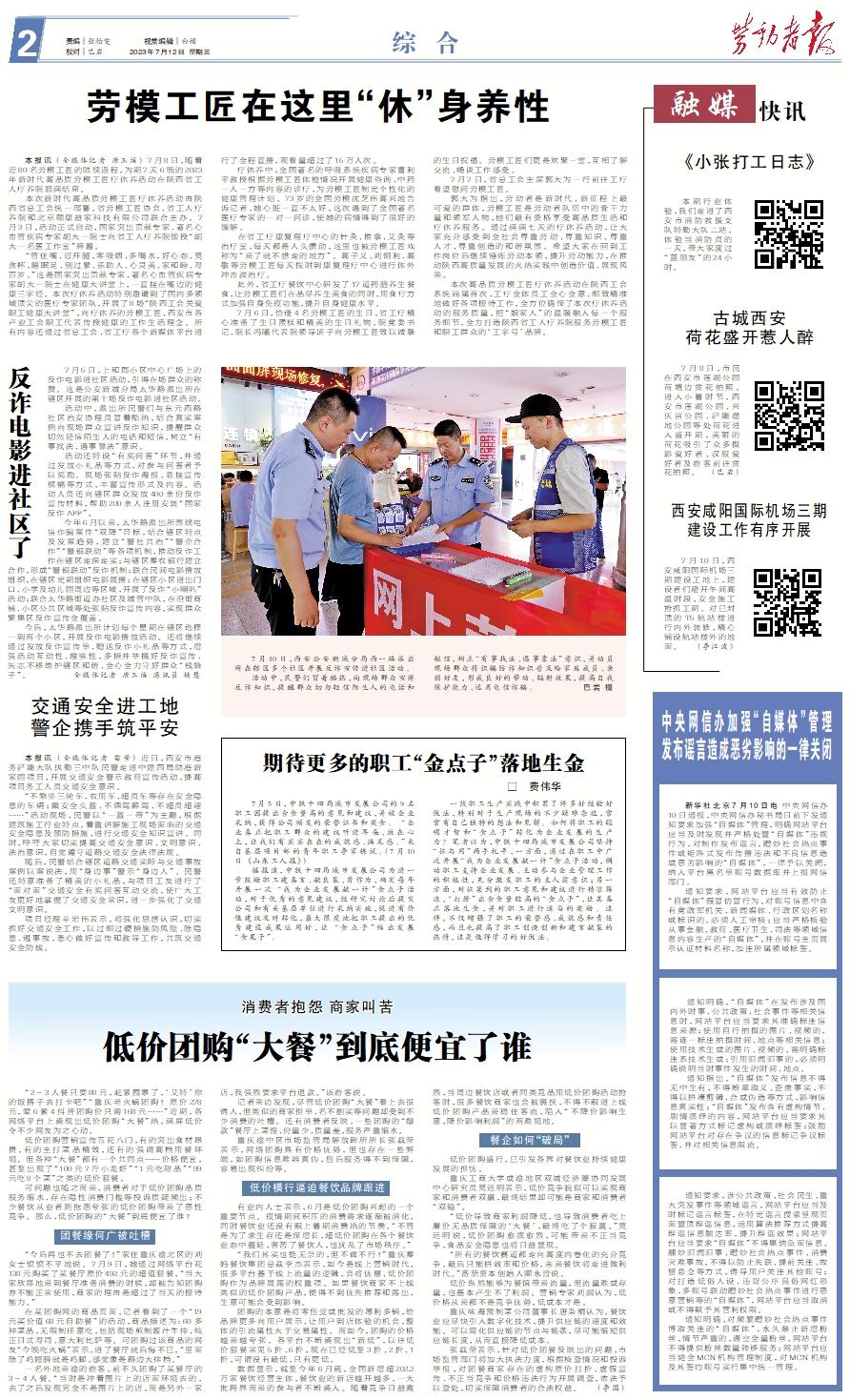 本报讯 (全媒体记者 唐玉洁) 7月8日,随着近80名劳模工匠的陆续返程,为期7天6晚的2023年新时代高品质劳模工匠疗休养活动在陕西省工人疗养院圆满结束。 本次新时代高品质劳模工匠疗休养活动由陕西省总工会统一部署,省劳模工匠协会、省工人疗养院和北京颐康益家科技有限公司联合主办。7月3日,活动正式启动,国家突出贡献专家、著名心血管疾病专家胡大一院士向省工人疗养院颁授“胡大一名医工作室”牌匾。 “管住嘴、迈开腿,零吸烟、多喝水,好心态、莫贪杯,睡眠足、别过累、乐助人、心灵美、家和睦、寿百岁。”这是国家突出贡献专家、著名心血管疾病专家胡大一院士在健康大讲堂上,一直挂在嘴边的健康三字经。本次疗休养活动特别邀请到了国内多领域顶尖的医疗专家团队,开展了8场“陕西工会关爱职工健康大讲堂”,向疗休养的劳模工匠、西安市各产业工会职工代表传授健康的工作生活理念。所有内容还通过省总工会、省工疗各个新媒体平台进行了全程直播,观看量超过了15万人次。 疗休养中,全国著名的呼吸系统疾病专家曹利平教授根据劳模工匠体检情况开展健康咨询、中药一人一方等内容的诊疗,为劳模工匠制定个性化的健康管理计划。73岁的全国劳模沈芝伟高兴地告诉记者,她心脏一直不太好,这次遇到了全国著名医疗专家的一对一问诊,使她的病情得到了很好的缓解。 在省工疗康复理疗中心的针灸、推拿、艾灸等治疗室,每天都是人头攒动,这里也被劳模工匠戏称为“来了就不想走的地方”。高子义、刘铜利、高敏等劳模工匠每天按时到康复理疗中心进行体外冲击波治疗。 此外,省工疗餐饮中心研发了17道药膳养生餐食,让劳模工匠们在品尽养生美食的同时,用食疗方式加强自身免疫功能,提升自身健康水平。 7月6日,恰逢4名劳模工匠的生日,省工疗精心准备了生日蛋糕和精美的生日礼物,院党委书记、院长冯曦代表院领导班子向劳模工匠致以诚挚的生日祝福。劳模工匠们更是欢聚一堂,互相了解交流、畅谈工作感受。 7月7日,省总工会主席郭大为一行前往工疗看望慰问劳模工匠。 郭大为指出,劳动者是新时代、新征程上最可爱的群体,劳模工匠是劳动者队伍中的骨干力量和领军人物,他们最有资格享受高品质生活和疗休养服务。通过满满七天的疗休养活动,让大家充分感受到全社会尊重劳动、尊重知识、尊重人才、尊重创造的和谐氛围。希望大家在回到工作岗位后继续锤炼劳动本领,提升劳动能力,在推动陕西高质量发展的火热实践中创造价值、展现风采。 本次高品质劳模工匠疗休养活动在陕西工会系统尚属首次,工疗全体员工全心全意、细致精准地做好各项接待工作,全方位确保了本次疗休养活动的服务质量,把“娘家人”的温暖融入每一个服务细节,全力打造陕西省工人疗养院服务劳模工匠和职工群众的‘工字号’品牌。