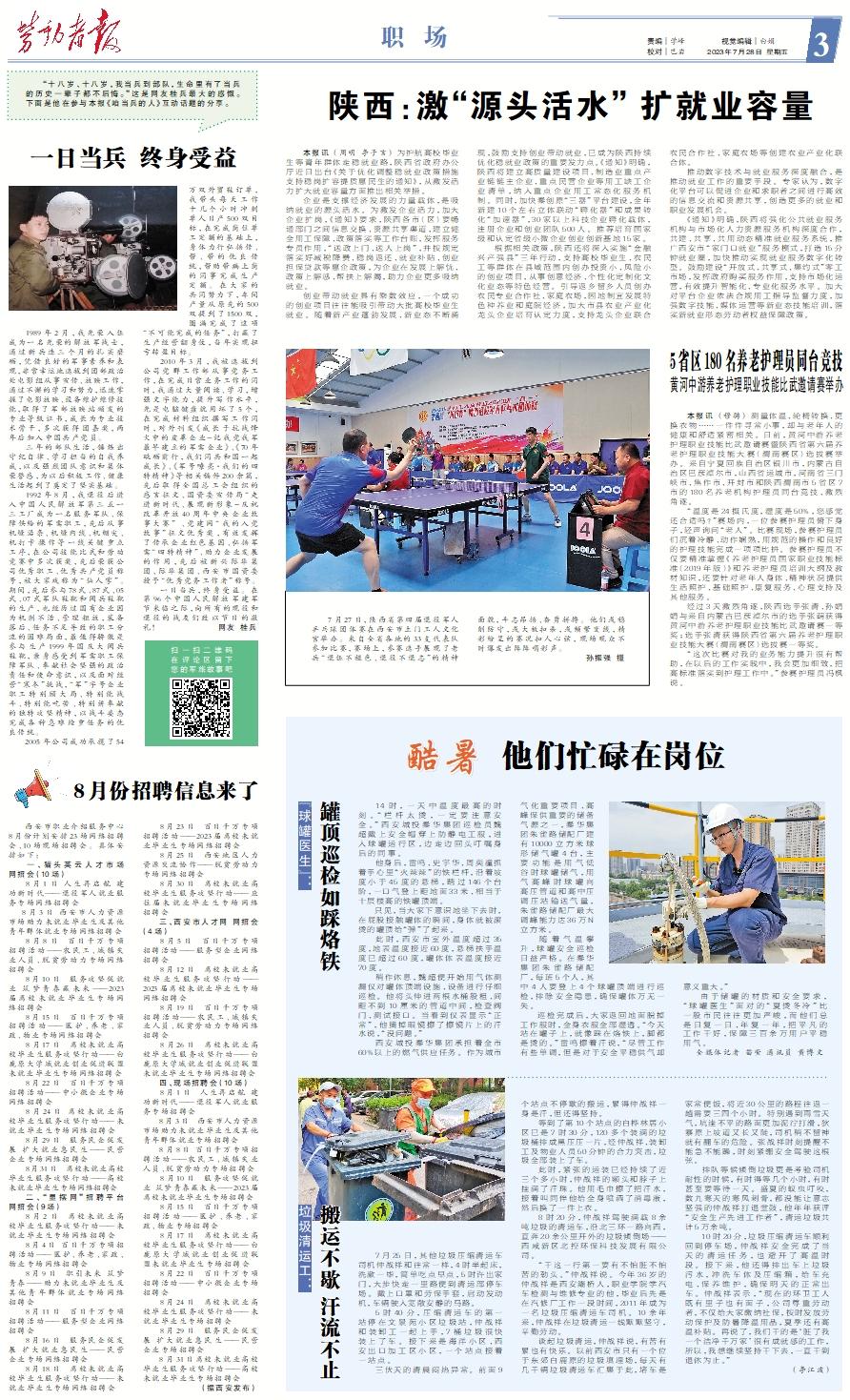 本报讯 (周明 李子言) 为护航高校毕业生等青年群体走稳就业路,陕西省政府办公厅近日出台《关于优化调整稳就业政策措施支持稳岗扩容提质惠民生的通知》,从激发活力扩大就业容量方面推出相关举措。 企业是支撑经济发展的力量载体,是吸纳就业的源头活水。为激发企业活力,加大企业扩岗,《通知》要求,陕西各市(区)要畅通部门之间信息交换、资源共享渠道,建立健全用工保障、政策落实等工作台账,发挥服务专员作用,“送政上门、送人上岗”,并按规定落实好减税降费、稳岗返还、就业补贴、创业担保贷款等惠企政策,为企业在发展上解忧、政策上解惑、帮扶上解渴,助力企业更多吸纳就业。 创业带动就业具有乘数效应,一个成功的创业项目往往能吸引带动大批高校毕业生就业。随着新产业蓬勃发展、新业态不断涌现,鼓励支持创业带动就业,已成为陕西持续优化稳就业政策的重要发力点。《通知》明确,陕西将建立高质量建设项目、制造业重点产业链链主企业、重点民营企业等用工缺工企业清单,纳入重点企业用工常态化服务机制。同时,加快秦创原“三器”平台建设,全年新建10个左右立体联动“孵化器”和成果转化“加速器”,30家以上科技企业孵化载体,注册企业和创业团队500人。推荐培育国家级和认定省级小微企业创业创新基地15家。 根据相关政策,陕西还将深入实施“金融兴产强县”三年行动,支持高校毕业生、农民工等群体在县域范围内创办投资小、风险小的创业项目,从事创意经济、个性化定制化文化业态等特色经营。引导返乡留乡人员创办农民专业合作社、家庭农场,因地制宜发展特色种养业和庭院经济,加大市县农业产业化龙头企业培育认定力度,支持龙头企业联合农民合作社、家庭农场等创建农业产业化联合体。 推动数字技术与就业服务深度融合,是推动就业工作的重要手段。专家认为,数字化平台可以促进企业和求职者之间进行高效的信息交流和资源共享,创造更多的就业和职业发展机会。 《通知》明确,陕西将强化公共就业服务机构与市场化人力资源服务机构深度合作,共建、共享、共用动态精准就业服务系统,推广西安市“家门口就业”服务模式,打造15分钟就业圈,加快推动实现就业服务数字化转型。鼓励建设“开放式、共享式、集约式”零工市场,发挥政府购买服务作用,支持市场化运营,有效提升智能化、专业化服务水平。加大对平台企业依法合规用工指导监督力度,加强数字技能、媒体运营等新业态技能培训,落实新就业形态劳动者权益保障政策。