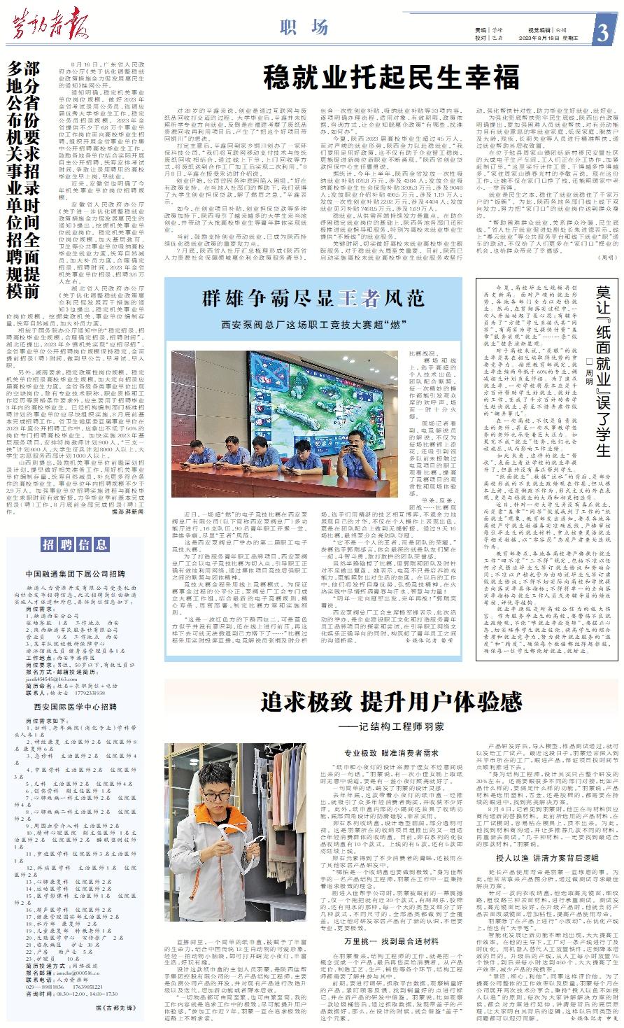 对28岁的辛鑫来说,创业是通过互联网与废纸品回收打交道的过程。大学毕业后,辛鑫并未按照所学专业方向就业,反倒是在福建考察了废纸品资源回收再利用项目后,产生了“把这个好项目带回铜川”的想法。 打定主意后,辛鑫回到家乡铜川创办了一家环保科技公司。“我们将互联网移动支付技术与传统废纸回收相结合,通过线上下单、上门回收等方式,将废纸送到合作工厂加工后实现二次利用。”8月8日,辛鑫在接受采访时介绍说。 创业伊始,公司曾因各种原因陷入困境。“好在有政策支持。在当地人社部门的帮助下,我们获得了大学生创业担保贷款,解了燃眉之急。”辛鑫表示。 如今,在创业项目补贴、创业担保贷款等多种政策加持下,陕西吸引了越来越多的大学生来当地创业,并带动了大批高校毕业生等青年群体实现就业。 当前,鼓励支持创业带动就业,已成为陕西持续优化稳就业政策的重要发力点。 7月底,陕西省人社厅汇总梳理形成《陕西省人力资源社会保障领域惠企利企政策服务清单》,包含一次性创业补贴、吸纳就业补贴等33项内容,逐项明确办理流程、适用对象、有效期限、政策依据、咨询方式,让企业知晓惠企政策“有哪些、找谁办、如何办”。 今夏,陕西2023届高校毕业生超过45万人。面对严峻的就业形势,陕西全力以赴稳就业。“我们要用足用好政策,这不仅有助于企业留工稳岗,更能促进新岗位新职业不断涌现。”陕西省创业贷款担保中心主任曹勇说。 据统计,今年上半年,陕西全省发放一次性吸纳就业补贴876.8万元,涉及4384人;发放企业吸纳高校毕业生社会保险补贴3205.3万元,涉及9048人;发放职业介绍补贴490.5万元,涉及1.19万人;发放一次性创业补贴2202万元,涉及4404人;发放就业见习补贴7468.5万元,涉及1.69万人。 稳就业,从供需两端持续发力是重点。在助企纾困稳定就业岗位的基础上,陕西各地各部门还积极推进就业指导和服务,特别为离校未就业毕业生提供“不断线”的就业服务。 关键时期,切实做好离校未就业高校毕业生跟踪服务,对于稳就业大局至关重要。目前,陕西已启动实施离校未就业高校毕业生就业服务攻坚行动,强化帮扶针对性,助力毕业生好就业、就好业。 为强化兜底帮扶兜牢民生底线,陕西出台政策明确提出,要加强困难人员就业帮扶,对有劳动能力且有就业意愿的零就业家庭、低保家庭、脱贫户及大龄、残疾、长期失业等人员进行精准帮扶,通过就业帮助其增收致富。 在位于勉县周家山镇团结新村移民安置社区的大成电子生产车间,工人们正在分工协作,加紧赶制订单。“这里实行计件工资,干得越多挣得越多。”家住周家山镇春光村的李敏言说。现在这份工作,让她不仅在家门口挣了钱,还能照顾家中老小,一举两得。 就业是民生之本,稳住了就业就稳住了千家万户的“饭碗”。为此,陕西各地各部门线上线下双向发力,努力把“家门口”的就业岗位送到群众身边。 “帮助困难群众就业,关系群众冷暖、民生底线。”省人社厅就业促进处副处长朱进德表示,线上“秦云就业”等公共服务平台和线下就业“职”通车的联动,不仅给了人们更多在“家门口”择业的机会,也给群众带来了幸福感。 (周明)