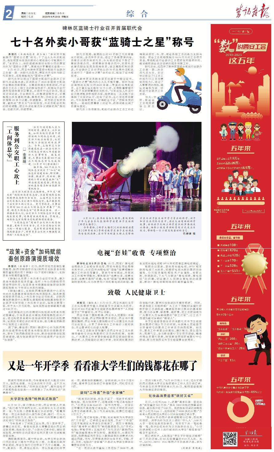 本报讯 (全媒体记者 唐玉洁) “非常荣幸能被授予‘蓝骑士之星’称号,干了这么久外卖配送员,我发现要有很强的责任心和进取心才能真的干好。”主席台上,来自成都法斯特有限公司的贾家杰作为“蓝骑士之星”,真诚地分享着成长感受…… 8月18日,西安市碑林区蓝骑士配送行业联合工会第一届一次职代会召开,贾家杰不仅作为职工代表参会,还现场被选为“蓝骑士之星”。 职代会审议通过了蓝骑士配送行业联合工会职代会实施办法;表决通过了2023年蓝骑士配送行业集体协商草案。在集体协商会筹备期间,行业联合工会在上级工会的指导协助下,积极与企业行政方沟通协商会议事宜,在骑手中充分动员,通过面对面访谈、企业群问讯、问卷调查等方式,征集梳理出涉及福利待遇、激励机制、劳动安全、休息休假等20多个议题,形成提案。双方通过友好协商,最终就“恶劣天气补贴发放、外卖员配送机制的时间调整、建立外卖送餐员争议调解机制”等内容,达成共识,形成草案。 职代会现场,被推选出的41名职工代表郑重实行权利,全员举手表决,通过了协商草案内容。协商会议双方首席代表,在大家的见证下签订了集体协商合同。依照集体协商合同中,完善外卖送餐员职业发展及稳岗体系,设立激励机制的条款,行业联合工会对评选出的70名优秀外卖配送员进行了 “蓝骑士之星”命名仪式,颁发了证书和奖金。 从碑林区常务副主席王远淑手中接过证书,“蓝骑士之星”杨杰内心久久不能平静。他作为迪亚斯物流有限公司2023年第二季度的优秀配送员,这个夏天每天跑单12个小时,无惧酷暑穿梭不停,用汗水诠释着责任与担当。“4年前加入外卖行业只是想能多挣钱好养家,没想到这一天天跑下来得到了大家的认可,还发了证书,这心里还怪自豪的,今后我得更努力,对得起这个证。”眉眼含笑的杨杰,一遍遍抚摸着桌上的证书,话语间是充满了自豪与坚定。 职代会上传喜频传,配送行业联合工会工作还得到来自省、市、区、街道各级工会的鼎力支持与协助。区总工会现场预拨付10.75万元的工会项目资金,帮助配送行业联合工会更好发挥组织作用,做实做细新业态劳动者的服务保障工作。 职代会前,还召开了碑林区蓝骑士配送行业联合工会第一届二次会员代表大会。会议审议通过了《工会工作报告》《工会经费使用报告》,通过了人事事项的改选,确认刘嵩琪为新一任配送行业联合工会主席。 当天,省、市、区、街道总工会相关领导出席会议。
