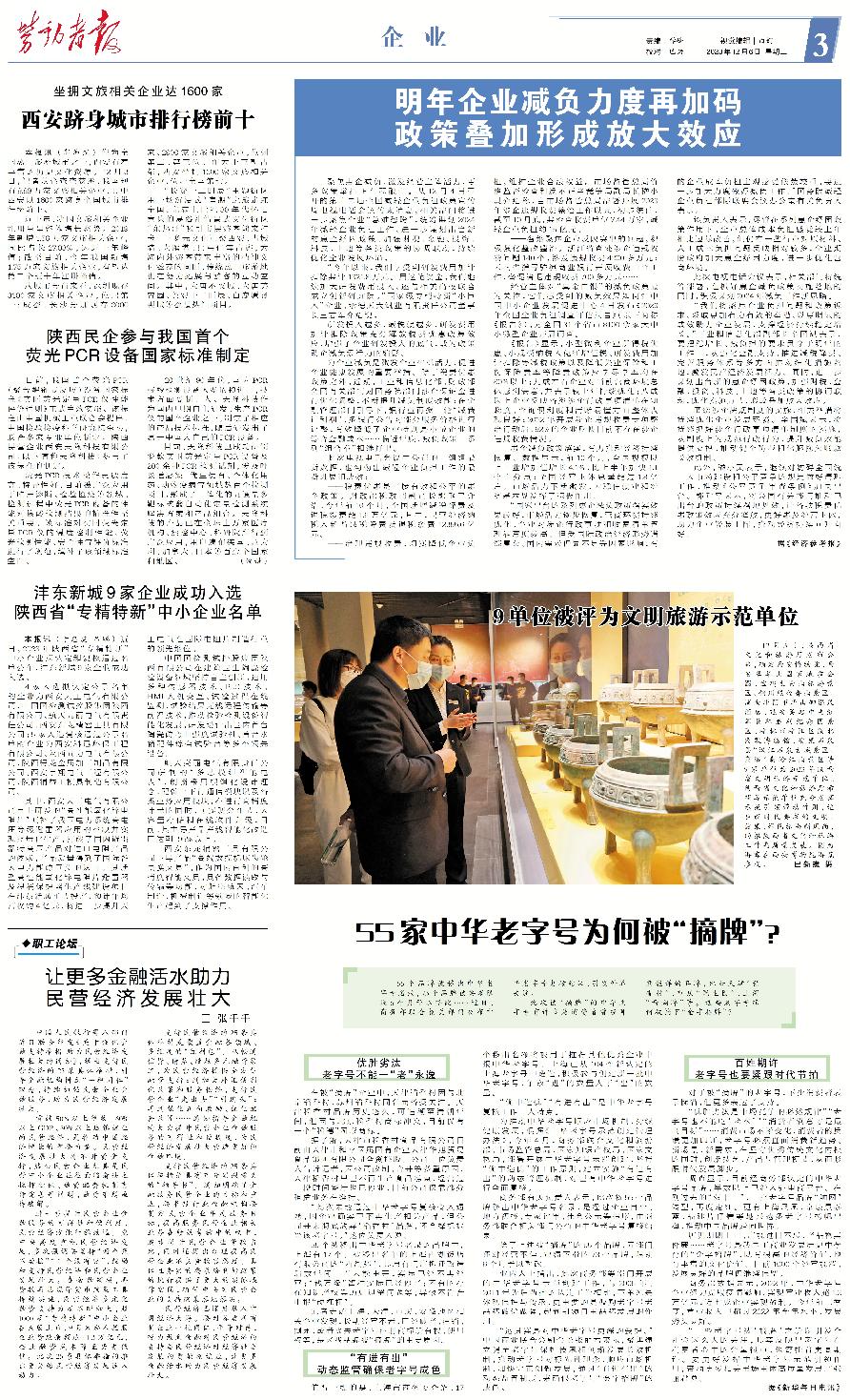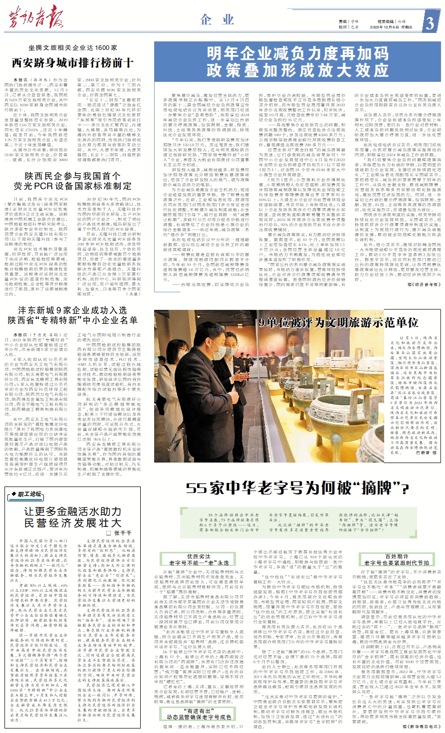 聚焦惠企减负、激发经营主体活力,更多政策举措正在酝酿中。从12月4日召开的第十二届全国减轻企业负担政策宣传周电视电话会议传来消息,相关部门将进一步聚焦企业“急难愁盼”,统筹谋划2024年减轻企业负担工作,进一步谋划出台新的惠企纾困政策,加强财税、金融、投资、科技、土地等各类政策的协调联动,持续优化企业发展环境。 “今年以来,我们享受到研发费用加计扣除共计1321.8万元。用这笔资金,我们继续加大研发费用投入,还与相关高校联合成立创新研究院。”国家级专精特新“小巨人”企业、承德天大钒业有限责任公司董事长王志军介绍说。 研发投入越多,减税就越多,研发费用加计扣除政策充分释放税费优惠政策效应,增强了企业研发投入的底气,成为政策助企减负添活力的缩影。 为企业减负是激发企业生机活力、促进企业健康发展的重要举措。除了税费优惠政策之外,近期,工业和信息化部、财政部会同有关部门对国务院部门涉企保证金进行优化调整,不断提升减负制度效能;在金融管理部门引导下,银行业再掀一轮“减费让利潮”,多银行公告对部分服务价格进行调整,有效降低了企业特别是小微企业的综合金融成本……临近年底,减负政策一系列“组合拳”相继打出。 此次电视电话会议中公布的一组组最新数据,也勾勒出减轻企业负担工作的最新进展和成效: ——税费优惠是直接有效和公平的惠企政策。财政部税政司副司长郭垂平介绍,今年前10个月,全国新增减税降费及退税缓费超1.6万亿元,其中,民营经济纳税人新增减税降费及退税缓费12385.6亿元。 ——治理违规收费,切实降低企业负担,维护企业合法权益。市场监管总局价格监督检查和反不正当竞争局副局长嵇小灵介绍称,自市场监管总局部署开展2023年涉企违规收费整治工作以来,初步统计,截至10月底,共检查收费单位7.44万家,减轻企业负担约15亿元。 ——各地聚焦企业反映突出的问题,积极强化整改整治。浙江省查处涉企违规收费问题140个,涉及违规收费4200多万元;云南省指导驻滇商业银行开展收费自查工作,督促清退违规收费700多万元…… 经营主体对“真金白银”的减负政策最为关注,它们感受到的减负效果如何?中国中小企业发展促进中心4日发布《2023年全国企业负担调查评估报告》(以下简称《报告》),对全国31个省市8100余家大中小微型企业开展调查。 《报告》显示,小型微利企业所得税优惠、小规模纳税人免征增值税、研发费用加计扣除等减税政策以及降低失业保险和工伤保险费率等降费政策应享尽享率均在80%以上;九成左右企业对当前营商环境总体感到满意,并表示较上年持续优化;八成以上企业反映各类涉企行政事项清单在知晓度、查询便利度和清晰易懂方面整体表现良好;2022年开展涉企违规收费专项整治行动后,92%的企业反映目前不存在涉企违规收费情况。 惠企减负政策落实,有力推动经济持续恢复。数据显示,前10个月,全国规模以上工业增加值增长4.1%,比上半年加快1.1个百分点;全国经营主体总量超过1.8亿户。市场活力不断激发,为稳住就业和经济基本盘发挥了积极作用。 “国家出台的系列惠企减负政策落实效果较好,市场活力逐步恢复,营商环境持续优化,企业对涉企行政事项和收费清单管理满意度较高。但受国际政治经济形势错综复杂、国内需求仍显不足等因素影响,有的企业成本负担主观感受依然较重,要进一步加大力度做好减负工作。”国务院减轻企业负担部际联席会议办公室有关负责人表示。 该负责人表示,尽管在系列惠企纾困政策作用下,企业总体成本负担感受较上年相比边际改善,但仍有一些行业对原材料、人工成本负担问题反映相对较多,企业期盼政府加大惠企纾困力度,进一步优化营商环境。 此次电视电话会议表示,相关部门将统筹部署,在抓好惠企减负政策实施落地的同时,积极谋划2024年减负工作新思路。 “我们将聚焦企业负担问题和政策诉求,采取更加有力有效的举措,以更明显的成效助力企业发展,支撑经济持续稳定增长。”工业和信息化部副部长辛国斌表示,要把稳增长、减负担的要求贯穿于明年的工作中,从强化金融支持、推进减税降费、完善服务体系等多方面推动细化措施落地,激发民营经济发展活力。同时,进一步谋划出台新的惠企纾困政策,加强财税、金融、投资、科技、土地等各类政策的协调联动,优化实施方式,形成叠加放大效应。 围绕涉企法规制度的实施,相关举措将持续优化企业发展环境。辛国斌表示,将持续抓好涉企行政事项清单制度的实施,从制度上为规范行政行为、提升减负效能提供支撑,推动健全防范和化解拖欠账款长效机制。 此外,嵇小灵表示,继续对妨碍全国统一大市场建设和公平竞争的规定做好清理工作,推动《公平竞争审查条例》加快出台。郭垂平表示,将会同有关部门推动已出台的政策持续落地见效,让各项税费优惠政策效应充分释放,更好惠及经营主体,助力企业轻装上阵,推动经济持续回升向好。 据《经济参考报》