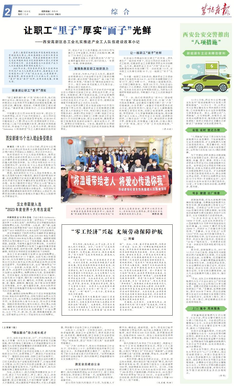 在第三届国家级新区经开区高新区班组长管理技能大赛上,西安高新区8名职工跻身决赛,并取得优异成绩。贺忠善劳模创新工作室已完成申报陕西省示范性劳模和工匠人才创新工作室的工作。这是高新区总工会推进产业工人队伍建设改革取得的成果之一。 2021年以来,作为首批开发区工会被西安市列为产业工人改革试点单位,高新区总工会引领区内6家“产改”试点企业,从素质提升、服务保障、典型选树等3个方面入手,让职工“里子”厚实“面子”光鲜,实现全面发展、幸福生活。提素质让职工“里子”厚实 “职工素质提升是‘产改’的核心任务,我们按照行业特点,指导比亚迪、三星、中航富士达、奕斯伟等试点企业开展不同主题的劳动和技能竞赛,通过抓培训、赛技能、促创新,不断拓宽职工成长成才通道。”高新区党工委副书记、工会主席郭晓辉说。 中航富士达公司2020年至2023年,通过以工代训师带徒,培养了542名初级技工。该公司计划未来两到三年,通过开展新型学徒制,培训200名中高级技工;三星(西安公司)完善网络学习平台,采用线上+线下的技能提升体系,推进全员网络教育培训,开设线下产业工人技术公开课,推进的“Samsung U网络课堂”为工人提供最新的技术知识,夯实产业工人技术基础;铂力特公司为提升工艺专业素养,开展工艺技能PK赛,赛出了70余名工艺尖端人才。 高素质技能人才成为推动各“产改”企业高质量发展的主力军,他们的收入一年更比一年高,获得感满满。重服务激发职工创新活力 近年来,为壮大产业工人队伍,高新区总积极推动人才就业和企业用工需求的精准对接,成功开展“春送岗位” 线上线下招聘会20余场,“筑巢引凤”提供就业岗位3.5万个, 吸引3000余名技能人才扎根企业,激发出职工创新活力。 由西安市劳动模范党作红名字命名的中航富士达公司党作红创新工作室,依托技术引领、产业孵化、市场驱动、勇于创新的优势,工作室获得国家专利授权发明专利3项、实用新型专利7项,为公司培养技术人才50名。党作红表示,成绩的取得离不开高新区总工会的大力支持。 为充分发挥劳模工匠在创新实践中的示范引领和骨干带头作用,高新区总工会积极搭建劳模和工匠人才创新这个平台,制定《职工创新工作室管理办法》,参照《西安市职工(劳模)创新工作室管理办法》,对区内5家职工(劳模)创新工作室各拨付5万元的经费支持,建立长效机制,激励更多职工投身改革创新的实践中,逐步实现人才、项目、成果的培育和转化。3年来,高新区有23项职工创新项目获得西安市职工经济技术创新优秀成果奖。让一线职工“面子”光鲜 比亚迪公司弗迪科技空调工厂的李强 ,原先是生产一线的技术骨干,经过公司的培养成长为一名工程师,经高新区总工会推荐获评西安市劳动模范。这几年,高新区总工会在“产改”试点企业一线推荐选树省市级劳模(五一劳动奖章)13名,省市级工人先锋号班组14个,让一线职工“面子”光鲜。 为丰富一线职工文体活动,高新区总工会建设各类工会服务阵地154个,其中省市级模范职工之家19个,职工书屋13个。开展线上健康跑活动,1.2万职工踊跃参与。投资135万元,为比亚迪公司建设2个心灵驿站,为职工开展心理健康咨询服务。还有送文化进企业专场慰问演出,为研发人员组织专场联谊活动,不断提升产业工人的获得感幸福感。 “下一步,我们将围绕西安‘双中心’建设和‘四个高新’建设创造性开展工作,打造‘产改’示范典型集群,总结提炼可复制可推广的‘产改’经验做法,在全区推广;注重培育选树更多的试点企业,联动相关部门,健全产业工人薪酬激励机制和工资增长机制,将职工创新成果、技能等级、学历职称、个人荣誉等薪酬分配挂钩,稳步提高产业工人收入;同省市总工会沟通,设想推动园区、小微企业的‘产改’工作,推动园区在资源共享、政策支持、机制覆盖上做文章,打造小微企业‘产改’样本,助力‘产改’工作向纵深发展。”郭晓辉说。 (李江波)