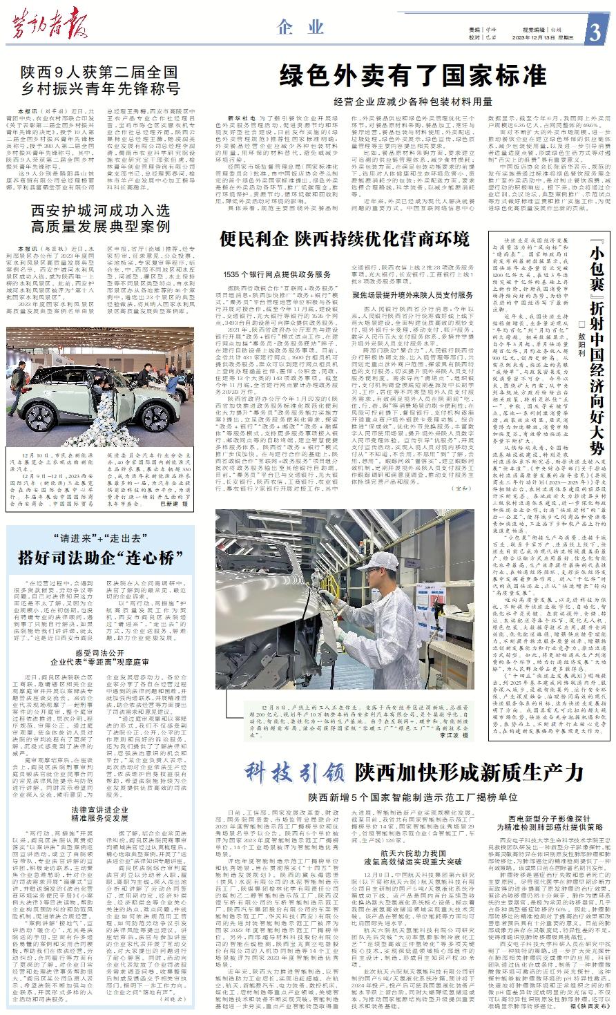 12月8日,产线上的工人正在作业。坐落于西安经开区泾渭新城,总投资超200亿元、规划年产10万辆整车的西安吉利汽车有限公司,是个集数字化、自动化、智能化、柔性化为一体的生产基地。由于在互联网+、碳中和、智能制造方面的超前布局,该公司获得国家级“零碳工厂”“绿色工厂”“高新技术企业”。 李江波 摄