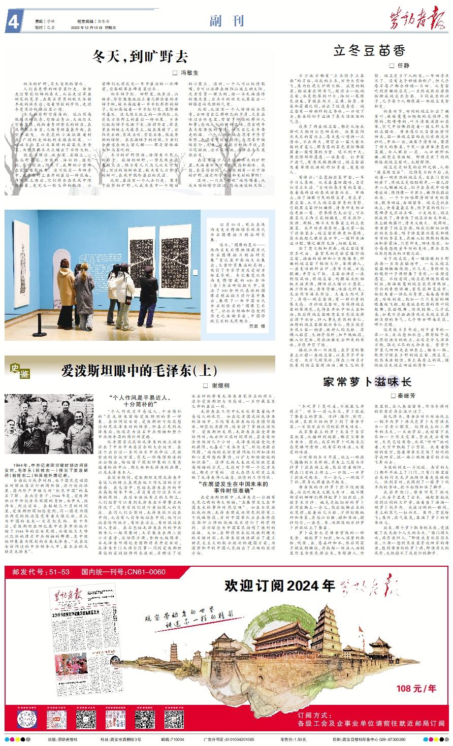 初冬的旷野,是大自然的留白。 人们在更替的四季里行走。匆匆走过繁花似锦的春天,从容走过草盛树茂的夏季,在果实累累的秋天体验丰收的快乐后,迈着坚毅的步伐,走进冬季寒冷的驿站里小憩。 冬天的原野空荡荡的。远山用高低起伏的线条,勾勒出青山、大地与天空的界限,收纳着青砖黛瓦的村庄,在风中默立垂首,几缕青烟袅袅升起,在空中摇曳。白亮亮的小溪抚摸着村庄,广阔的麦田把村庄搂在怀里。一畦畦冬白菜以及翠绿的蒜苗或者香菜,为萧瑟的冬天点缀出了些许生机。 就在石堰边、地头里、窑垴上,一丛丛野菊花,金黄的、洁白的、酒红的,尽情绽放;阳光下,成群的小蜜蜂在花上唱歌跳舞。这可能是一年四季中,北方原野上盛开的最后一种花朵,待河水上冻后,它们将会在寒风中慢慢枯萎,走完又一轮生命的轨迹。小蜜蜂们也将采完一年中最后的一些蜂蜜,准备蜗居在蜂巢里过冬。 初冬柿子红。田野里、地垄边、山路旁,零零散散地站立着几棵沧桑的老柿子树,枝头高挂着一串串红彤彤的柿子,宛如高挂着一串串红灯笼,显得格外喜庆。这无垠大地上的一抹嫣红,也是北方原野上的最后一种水果。乡亲们把红柿子采摘下来,除掉外皮,将其穿在树枝上或藤条上,挂在屋檐下,让阳光去晒、寒风去吹、雪花去冻,做成香甜的柿饼。在采摘柿子的时候,乡亲们会特意在树上留几颗——那是留给路人和鸟雀吃的。 冬日的旷野很静,静得看不见人的影子。寂静的田野,一望无垠地延展到天边,偶尔有几只鸟儿从天空划过;河边的杨树林里,枝头有几片零星的树叶,在风中低吟最后的民谣。 此刻,最适宜一个人去行走。置身于寂寥的旷野,人成为其中一个蠕动的小黑点。这时,一个人可以纵情歌唱,亦可以选择在朝阳山坡上晒太阳,或者背靠一棵大树,读一本充满温情的散文集,让冬日的时光也显露出一种惬意而优雅的气质。 此刻,也适宜一个人静静地去思考,去回首自己那难忘的岁月,尤其品味过去时光里,曾留下印迹的那些人和事;感叹人生的种种况味,思索明年春天需要做的事情,抑或自己来年要走的路。一个人静静地在思考中孕育希望,在思考中绽放热情,在思考中继续前行,或者,盯着前方的地平线,毫不迟疑地、迫不及待地,选择在冬天里就出发。 在没有多少人光临的冬天的旷野里,充满着妙不可言的美感和韵味。我想,在苍茫世间,人若能拥有一处宁静的旷野,该是何等幸运和美好的事啊! 这时,一只鸟“啾啾”地鸣唱着,从我头顶的晴空掠过,飞向遥远的天际。