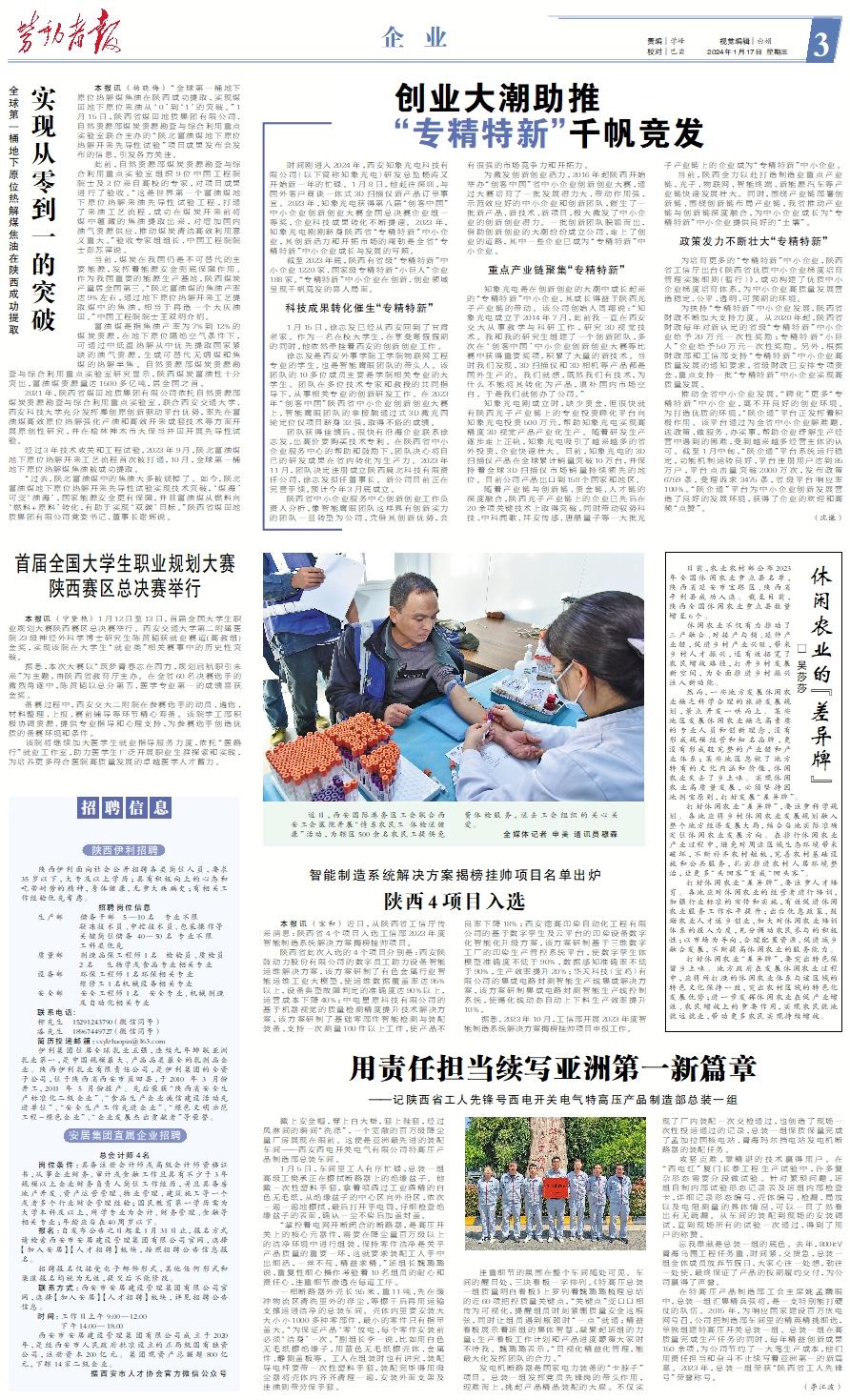 时间刚进入2024年,西安知象光电科技有限公司(以下简称知象光电)研发总监杨涛又开始新一年的忙碌。1月8日,他赶往深圳,与国外客户商谈一体式3D扫描仪新产品订单事宜。2023年,知象光电获得第八届“创客中国”中小企业创新创业大赛全国总决赛企业组一等奖,企业科技成果转化不断提速。2023年,知象光电刚刚跻身陕西省“专精特新”中小企业,其创新活力和开拓市场的闯劲是全省“专精特新”中小企业成长与发展的写照。 截至2023年底,陕西有省级“专精特新”中小企业1220家、国家级专精特新“小巨人”企业188家。“专精特新”中小企业在创新、创业领域呈现千帆竞发的喜人局面。科技成果转化催生“专精特新” 1月15日,徐志发已经从西安回到了甘肃老家。作为一名在校大学生,在享受寒假假期的同时,他依然牵挂着西安的创新创业工作。 徐志发是西安外事学院工学院物联网工程专业的学生,也是智能鹰眼团队的带头人。该团队的10多位成员主要是学院相关专业的大学生。团队在多位技术专家和教授的共同指导下,从事相关专业的创新研发工作。在2023年“创客中国”陕西省中小企业创新创业大赛上,智能鹰眼团队的非接触通过式3D激光四轮定位仪项目跻身32强,取得不俗的成绩。 团队获得佳绩后,很快有沿海企业联系徐志发,出高价要购买技术专利。在陕西省中小企业服务中心的帮助和鼓励下,团队决心将自己的研发成果在省内转化为生产力。2023年11月,团队决定注册成立陕西晨北科技有限责任公司,徐志发拟任董事长。新公司目前正在完善手续,预计今年3月底成立。 陕西省中小企业服务中心创新创业工作负责人分析,像智能鹰眼团队这样具有创新实力的团队一旦转型为公司,凭借其创新优势,会有很强的市场竞争力和开拓力。 为激发创新创业活力,2016年起陕西开始举办“创客中国”省中小企业创新创业大赛,通过大赛培育了一批发展潜力大、带动作用强、示范效应好的中小企业和创新团队,催生了一批新产品、新技术、新项目,极大激发了中小企业的创新创业潜力。一批创新团队脱颖而出,借助创新创业的大潮纷纷成立公司,走上了创业的道路,其中一些企业已成为“专精特新”中小企业。重点产业链聚集“专精特新” 知象光电是在创新创业的大潮中成长起来的“专精特新”中小企业,其成长得益于陕西光子产业链的带动。该公司创始人周翔说:“知象光电成立于2014年7月,此前我一直在西安交大从事教学与科研工作,研究3D视觉技术。我和我的研究生组建了一个创新团队,多次在‘创客中国’中小企业创新创业大赛等比赛中获得重要奖项,积累了大量的新技术。当时我们发现,3D扫描仪和3D相机等产品都是国外生产的。我们就想,既然我们有技术,为什么不能将其转化为产品,填补国内市场空白。于是我们就创办了公司。” 知象光电刚成立时,缺少资金,但很快就有陕西光子产业链上的专业投资孵化平台向知象光电投资500万元,帮助知象光电实现高精度3D视觉产品产业化生产。随着研发生产逐步走上正轨,知象光电吸引了越来越多的省外投资,企业快速壮大。目前,知象光电的3D扫描仪产品在全球累计销量突破10万台,并保持着全球3D扫描仪市场销量持续领先的地位。目前公司产品出口到158个国家和地区。 随着产业链与创新链、资金链、人才链的深度融合,陕西光子产业链上的企业已先后在20余项关键技术上取得突破,同时带动驭势科技、中科闻歌、拜安传感、唐晶量子等一大批光子产业链上的企业成为“专精特新”中小企业。 当前,陕西全力以赴打造制造业重点产业链,光子、物联网、智能终端、新能源汽车等产业链快速发展壮大。同时,围绕产业链部署创新链、围绕创新链布局产业链,我省推动产业链与创新链深度融合,为中小企业成长为“专精特新”中小企业提供良好的“土壤”。政策发力不断壮大“专精特新” 为培育更多的“专精特新”中小企业,陕西省工信厅出台《陕西省优质中小企业梯度培育管理实施细则(暂行)》,成功构建了优质中小企业梯度培育体系,为中小企业高质量发展营造稳定、公平、透明、可预期的环境。 为扶持“专精特新”中小企业发展,陕西省财政不断加大支持力度。从2020年起,陕西省财政每年对新认定的省级“专精特新”中小企业给予20万元一次性奖励;专精特新“小巨人”企业给予50万元一次性奖励。另外,根据财政部和工信部支持“专精特新”中小企业高质量发展的通知要求,省级财政已安排专项资金,重点支持一批“专精特新”中小企业实现高质量发展。 推动全省中小企业发展,“孵化”更多“专精特新”中小企业,离不开良好的创业环境。为打造优质的环境,“陕企通”平台正发挥着积极作用。该平台通过为全省中小企业解难题、送政策、做服务、办实事,帮助企业纾解生产经营中遇到的困难,受到越来越多经营主体的认可。截至1月中旬,“陕企通”平台系统运行稳定,功能机制运转良好,平台注册用户达到85万户,平台点击量突破2000万次,发布政策6759条,受理诉求3475条,省级平台响应率100%。“陕企通”平台为中小企业创新发展营造了良好的发展环境,获得了企业的欢迎和高频“点赞”。 (沈谦)