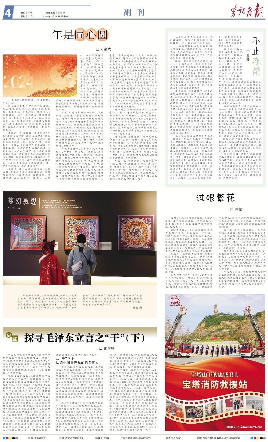 从长安到敦煌,从敦煌到罗马,丝绸之路贯通了长安与西方世界,成为东西方文明交流互鉴的载体。近日,“燕过东方”丝绸艺术作品展在西安唐皇城墙含光门遗址博物馆开展。本次展览汇集了艺术家数十款艺术作品,以“礼遇世界”“梦回长安”“梦幻敦煌”“遇见中亚”“祥瑞东方”五个篇章为引领,以“龙与九子”为创作题材,将中国传统文化融于时尚艺术,聚九子之祝福与力量,献礼甲辰龙年新春佳节。 巴岩 摄