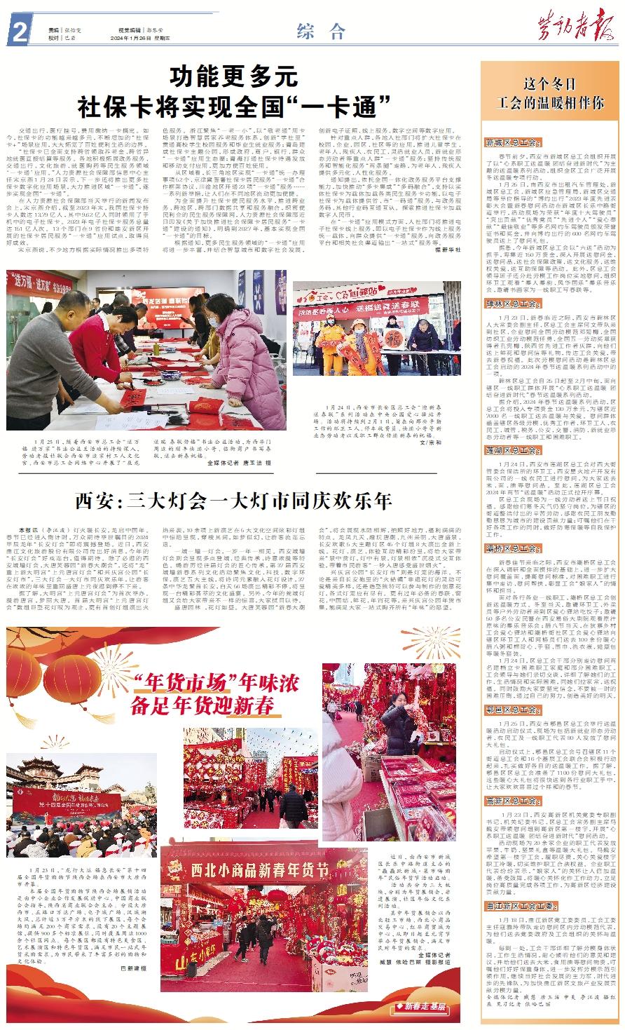 1月24日,西安市长安区总工会“迎新春 送春联”系列活动在中央公园爱心驿站开场。活动将持续到2月1日,旨在向那些辛勤工作的环卫工人、停车收费员、快递小哥等新业态劳动者以及职工群众传递新春的祝福。 文/宗和