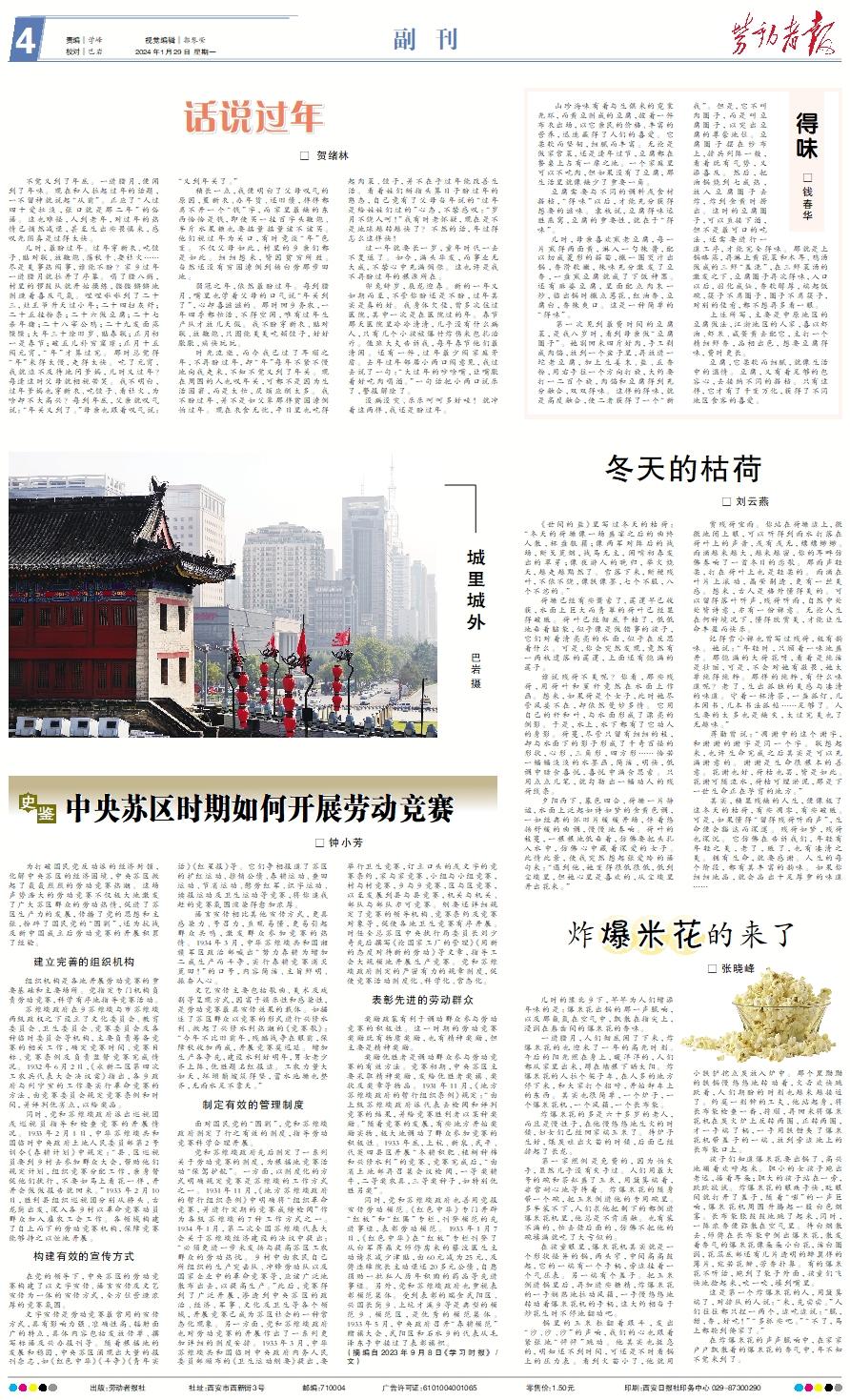 为打破国民党反动派的经济封锁,化解中央苏区的经济困境,中央苏区掀起了轰轰烈烈的劳动竞赛热潮。这场声势浩大的劳动竞赛不仅极大地激发了广大苏区群众的劳动热情,促进了苏区生产力的发展,传播了党的思想和主张,粉碎了国民党的“围剿”,还为抗战及新中国成立后劳动竞赛的开展积累了经验。建立完善的组织机构 组织机构是各地开展劳动竞赛的重要基础和主要场所。党指定专门机构负责劳动竞赛,科学有序地指导竞赛活动。 苏维埃政府在乡苏维埃与市苏维埃两级政权之下设立了文化委员会、教育委员会、卫生委员会、竞赛委员会及各种临时委员会等机构,主要负责筹备竞赛的相关工作,确定竞赛时间、竞赛目标、竞赛条例及负责监督竞赛完成情况。1932年6月2日,《永新二区第四次工农兵代表大会决议案》指出,各乡政府与列宁室的工作要实行革命竞赛的方法,由竞赛委员会规定竞赛条例和时间,并评判优劣点,以给奖品。 同时,党和苏维埃政府派出巡视团或巡视员指导和检查竞赛的开展情况。1933年2月1日,中华苏维埃共和国临时中央政府土地人民委员部第2号训令《春耕计划》中规定:“县、区巡视员要到乡村去参加群众大会,帮助他们规定计划,组织竞赛分配工作,亲身督促他们执行,不要如马上看花一样,开开会做做报告就回来。”1933年2月10日,胜利县组织巡视团分别从桥头、古龙岗出发,深入各乡村以革命竞赛动员群众加入雇农工会工作。各领域构建了自上而下的劳动竞赛机构,保障竞赛能够持之以恒地开展。构建有效的宣传方式 在党的领导下,中央苏区的劳动竞赛构建了以文字宣传、语言宣传及文艺宣传为一体的宣传方式,全方位营造浓厚的竞赛氛围。 文字宣传是劳动竞赛最常用的宣传方式,具有影响力强、准确性高、辐射面广的特点,具体内容包括发放传单、撰写标语及兴办报刊等。随着根据地的发展和稳固,中央苏区涌现出大量的报刊杂志,如《红色中华》《斗争》《青年实话》《红星报》等。它们争相报道了苏区的扩红运动、推销公债、春耕运动、查田运动、节省运动、慰劳红军、识字运动、读报运动及卫生运动等竞赛,将你追我赶的竞赛氛围渲染得愈加浓厚。 语言宣传相比其他宣传方式,更具感染力、号召力,直观易懂,更易引起群众共鸣,激发群众参加竞赛的热情。1934年3月,中华苏维埃共和国湘赣军区政治部喊出“努力春耕为增加二成生产而斗争,实行春耕竞赛消灭荒田!”的口号,内容简洁、主旨鲜明、振奋人心。 文艺宣传主要包括歌曲、美术及戏剧等呈现方式,因富于娱乐性和感染性,是劳动竞赛最具宣传效果的载体。如描述了苏区群众以竞赛的形式进行兴修水利、掀起了兴修水利热潮的《竞赛歌》:“今年不比旧前年,残酷战争在眼前,保障秋收加两成,开展竞赛莫迟延。增加生产各争先,建设水利好明年,男女老少齐上阵,优胜题名红报边。工农力量大如天,坏坝崩坡筑得坚,蓄水池塘也整齐,无雨水足不靠天。”制定有效的管理制度 面对国民党的“围剿”,党和苏维埃政府制定了行之有效的制度,指导劳动竞赛科学合理开展。 党和苏维埃政府先后制定了一系列关于劳动竞赛的制度,为根据地竞赛活动“保驾护航”。一方面,以制度化的方式明确规定竞赛是苏维埃的工作方式之一。1931年11月,《地方苏维埃政府的暂行组织条例》中明确将“组织革命竞赛,并进行定期的竞赛成绩检阅”作为各级苏维埃的7种工作方式之一。1934年1月,第二次全国苏维埃代表大会关于苏维埃经济建设的决议中提出:“必须更进一步来发扬与提高苏区工农群众的劳动热忱。乡村中由农民自己所组织的生产突击队、冲锋劳动队以及国家企业中的革命竞赛等,应该广泛地散布出去,以提高生产。”此后,竞赛得到了广泛开展,渗透到中央苏区的政治、经济、军事、文化及卫生等各个领域,开展竞赛已成为苏区社会的一种常态化现象。另一方面,党和苏维埃政府也对劳动竞赛的开展作出了一系列更加详细的制度安排。1933年3月,中华苏维埃共和国临时中央政府内务人民委员部颁布的《卫生运动纲要》提出,要举行卫生竞赛,订立口头的或文字的竞赛条约,家与家竞赛,小组与小组竞赛,村与村竞赛,乡与乡竞赛,区与区竞赛,以至发展到县与县竞赛,机关与机关、部队与部队亦可竞赛。纲要还详细规定了竞赛的领导机构、竞赛条约及竞赛对象等,促使各地卫生竞赛有序开展。时任全总苏区中央执行局委员长刘少奇先后撰写《论国家工厂的管理》《用新的态度对待新的劳动》等文章,指导工会大规模地开展生产竞赛。党和苏维埃政府制定的严密有力的规章制度,促使竞赛活动制度化、科学化、常态化。表彰先进的劳动群众 奖励政策有利于调动群众参与劳动竞赛的积极性。这一时期的劳动竞赛奖励既有物质奖励,也有精神奖励,但主要是精神奖励。 奖励优胜者是调动群众参与劳动竞赛的有效方法。竞赛初期,中央苏区主要采取精神奖励,发给优胜者奖旗、奖状及奖章等物品。1931年11月,《地方苏维埃政府的暂行组织条例》规定:“由上级苏维埃政府派代表去检阅和评判竞赛的结果,并给竞赛胜利者以某种奖励。”随着竞赛的发展,有些地方开始奖励实物,极大地调动了群众参加竞赛的积极性。1933年底,上杭、新泉、武平、代英四县区开展“冬耕积肥、植树种棉和兴