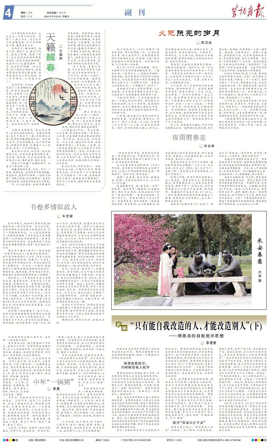 在旧书摊上,杨沫的《青春之歌》被随意扔在一堆旧书中间。时光如包浆,让这部曾被无数年轻人追捧的作品,多了一层独特的印记。小心翼翼地捧起它,我瞬间便想起了多年前在大学校园里第一次拜读此书时的情形。在时光穿云破月的流淌中,我仿佛看到了林道静坚毅果敢的眼神,颇有“他乡遇故知”之感。 明代的于谦在《观书》一诗里写道“书卷多情似故人,晨昏忧乐每相亲”。对于爱书和嗜读之人而言,书卷不仅仅是印着铅字的纸张,更像是一位老友,虽离散多年却亲近如昨,与我们相对而坐,促膝长谈。它也如一叶扁舟,载着读书之人徜徉在烟波浩渺的知识海洋,暂别慌张,抛却疲惫,寄身书海以求知,获得最具营养的精神食粮和心灵慰藉。 既似故人,心中便自然多出几分亲近之感,读书的过程,也就变成了心灵的碰撞、思想的交流。在阅读的时候,我始终保持着随时批注的习惯,每每碰到名言警句,或是引人深思之语,便会将自己的浅见书写于空白之处,一来为了当下理解,二来便于日后重温,数十年间,未曾改变。尤其是《中国小说史略》和《唐五代名家词选讲》,因阅读次数太多,批注遍及书本角角落落,几无任何空余之处。 在这种心态的驱使下,长久以来,我对书卷保持着最基本的诚恳与敬畏之心,这一点与古人多有相似之处。与书相交类于交友,讲究的是性情相近、针芥相投,因此每每有“会意”之处,便乐以忘忧,欣然忘食,其喜洋洋之状总会让自己忍俊不禁。理学大家朱熹认为,读书之法,在循序而渐进,熟读而精思,过程要慢,节奏要缓,如此方可达到驾轻就熟的地步,才能生发出精辟透彻之思。与人交往,何尝不是从点头之交到灵魂契合的过程呢? 如今,读书方式较以前发生了天翻地覆的变化,但我依旧固执地保持着阅读纸质书的习惯,那种触摸书卷时指尖传来的温柔触感,那些纸页翻动间四散飘开的幽幽墨香,让我如痴如醉,不能自已。于是,任由自己步入其中,神游书内,与作者、与人物侃侃而谈,好似久别重逢的故人一般,既不矜持,亦不疏离。 作家三毛认为,读书多了,容颜自然改变,许多时候,自己可能以为许多看过的书籍都成了过眼云烟,不复记忆,其实它们体现在气质、谈吐上,让人们的胸襟更为宽广,当然也可能显露在生活和文字里。诚如三毛所言,书籍对人的改变并不能立竿见影,但它一定是潜在的、恒久的。这种改变与我们共存共生、不离不弃,给我们的人生增添了几分睿智和优雅。正所谓“近朱者赤”,想来书籍对人的改变,大概与挚友、诤友带来的影响如出一辙。 虽然处于不同时空,但每当我在红豆般的烛火下捧读书卷之时,遥望天际月明星稀,聆听耳畔风声浩荡,依然能够与千年以前、万里之外的那些素昧平生的故人产生共鸣。 那种感觉,神秘而美妙,缱绻而多情。