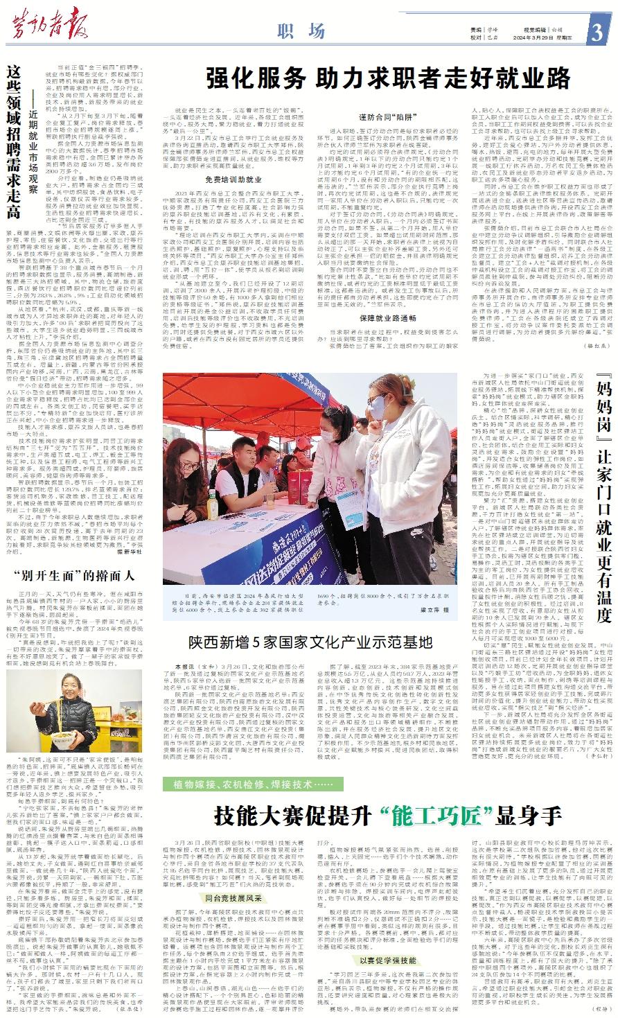 当前正值“金三银四”招聘季,就业市场有哪些变化?据权威部门及招聘机构最新数据,今年春节以来,招聘需求稳中有增,部分行业、企业及岗位用人需求明显增长,新技术、新消费、新服务带来的就业机会持续增加。 “从2月下旬至3月下旬,随着企业复工复产,岗位需求释放,春招市场企业招聘规模逐周上涨。”智联招聘执行副总裁李强说。 据全国人力资源市场信息监测中心的大数据统计,春季招聘市场需求稳中有增,全国已累计举办各类招聘活动超3.6万场,发布岗位2900万多个。 分行业看,制造业仍是吸纳就业大户,招聘需求占全国约三成半,其中纺织服装、食品饮料、电子设备、仪器仪表等行业需求较多。服务消费拉动就业效应加快显现。生活性服务业招聘需求快速增长,占比达到全国近三成。 “节后居家服务订单多但人手紧,商圈消费、文娱休闲等火爆出圈,家政、康养护理、零售、住宿餐饮、文化旅游、交通出行等行业招聘需求相应走高。此外,金融服务、租赁服务、信息技术等行业需求也较多。”全国人力资源市场信息监测中心负责人表示。 智联招聘基于38个重点城市春节后一个月的招聘求职数据也显示,服务消费、高端制造、新能源是三大热招领域。其中,物流仓储、旅游度假、酒店餐饮行业招聘职位数同比增速位列前三,分别为28.3%、26.8%、9%;工业自动化领域招聘职位数同比增幅为5.9%。 从地区看,“杭州、武汉、成都、重庆等新一线城市成为人才异地求职奔赴的高地,对年轻人的吸引力加大,许多‘00后’求职者把简历投向了这些城市。大学生返乡就业趋势明显,三四线城市人才粘性上升。”李强介绍。 据全国人力资源市场信息监测中心调查分析,东部省份仍是吸纳就业的主阵地,其中长三角、珠三角、京津冀地区招聘需求占全国招聘量五成左右。增量上,新疆、内蒙古等省份因承接国内产业转移,河南、广西、云南、黑龙江、吉林等省份受“假日经济”带动,招聘需求随之增多。 中小企业稳就业主力军作用进一步增强。99人以下小型企业招聘需求明显增加,100至999人企业需求平稳释放,招聘占比均已达到全部企业的四成左右。各类文创工坊、民宿餐吧、买手店层出不穷,“专精特新”企业加快培育,医疗诊所正在兴起,中小企业招聘需求进一步释放。 技能人才需求涨、康养文旅人员缺,也是春招市场一大特点。 技术技能岗位需求扩张明显,同普工的需求结构由“三七开”变为“五五开”。技术技能岗位需求中,生产类超五成,电工、焊工、钣金工等传统工种,以及信息工程师、电气工程师等新兴工种需求多。服务类超四成,护理员、育婴师、旅居顾问、美容师、健康咨询师等需求多。 智联招聘数据显示,春节后一个月,包装工招聘职位数同比增长129.7%,排名蓝领需求首位;客货运司机乘务、家政维修、普工技工、配送理货、机械设备维修等蓝领岗位招聘同比涨幅均位列前二十职业榜单。 不过,由于今年求职总人数继续增加,求职者面临的就业压力依然不减。“春招市场平均每个职位收到28次简历投递,高于去年同期的23次。高端制造、新能源、生物医药等新兴行业潜力被看好,求职竞争较其他领域更为激烈。”李强介绍。 据新华社