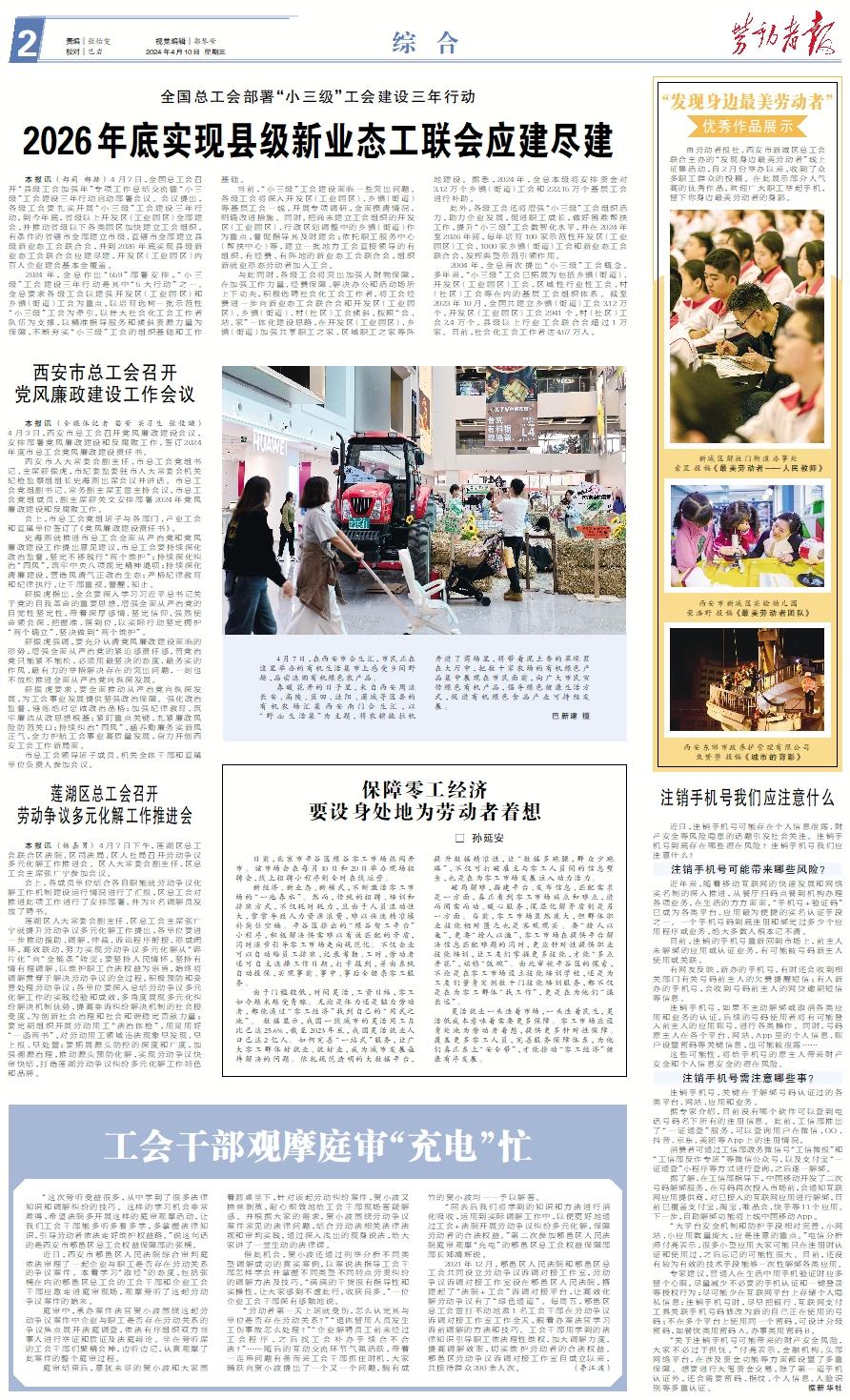 本报讯 (郑莉 郝赫) 4月7日,全国总工会召开“县级工会加强年”专项工作总结交流暨“小三级”工会建设三年行动启动部署会议。会议提出,各级工会要扎实开展“小三级”工会建设三年行动,到今年底,省级以上开发区(工业园区)全部建会,并推动省级以下各类园区加快建立工会组织,有条件的省辖市全部建立市级、直辖市全部建立县级新业态工会联合会,并到2026年底实现县级新业态工会联合会应建尽建,开发区(工业园区)内百人企业建会基本全覆盖。 2024年,全总作出“559”部署安排,“小三级”工会建设三年行动是其中“5大行动”之一。全总要求各级工会以建强开发区(工业园区)和乡镇(街道)工会为重点,以培育选树一批示范性“小三级”工会为牵引,以壮大社会化工会工作者队伍为支撑,以精准指导服务和倾斜资源力量为保障,不断夯实“小三级”工会的组织基础和工作基础。 当前,“小三级”工会建设面临一些突出问题。各级工会将深入开发区(工业园区)、乡镇(街道)等基层工会一线,开展专项调研,全面摸清情况,明确改进措施。同时,把尚未建立工会组织的开发区(工业园区)、行政区划调整中的乡镇(街道)作为重点,督促指导其及时建会;依托职工服务中心(帮扶中心)等,建立一批地方工会直接领导的有组织、有经费、有阵地的新业态工会联合会,组织新就业形态劳动者加入工会。 与此同时,各级工会将突出加强人财物保障,在加强工作力量、经费保障、解决办公和活动场所上下功夫,积极选聘社会化工会工作者,将工会经费进一步向新业态工会联合会和开发区(工业园区)、乡镇(街道)、村(社区)工会倾斜,按照“会、站、家”一体化建设思路,在开发区(工业园区)、乡镇(街道)加强共享职工之家、区域职工之家等阵地建设。据悉,2024年,全总本级将安排资金对3.12万个乡镇(街道)工会和222.15万个基层工会进行补助。 此外,各级工会还将增强“小三级”工会组织活力,助力企业发展,促进职工成长,做好困难帮扶工作,提升“小三级”工会数智化水平,并在2024年至2026年间,每年培育100家示范性开发区(工业园区)工会、1000家乡镇(街道)工会和新业态工会联合会,发挥典型示范引领作用。 2004年,全总首次提出“小三级”工会概念。多年来,“小三级”工会已拓展为包括乡镇(街道)、开发区(工业园区)工会、区域性行业性工会、村(社区)工会等在内的基层工会组织体系。截至2023年10月,全国共建立乡镇(街道)工会3.12万个,开发区(工业园区)工会2941个,村(社区)工会2.4万个,县级以上行业工会联合会超过1万家。目前,社会化工会工作者达4.57万人。