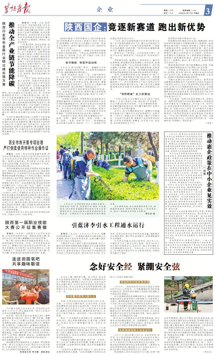 陕建控股多个项目相继开工;陕汽控股首批400台新能源轻卡交付地上铁租车(深圳)有限公司;陕煤集团小保当矿业公司提前5天完成一季度生产经营任务,煤炭产量同比增长9.24%,成本同比下降约15元/吨…… 新老交织、动能焕新,一幅幅生机勃勃的画卷在陕西大地徐徐展开。今年以来,陕西国企咬紧增长目标,以“新动能”之功,积“压舱石”之利,全力发挥陕西经济“稳定器”作用。数字赋能 转型升级加快 4月10日,陕汽控股厂区内,一辆重型卡车迎面驶来。驾驶室内没有司机,卡车按照规划路线自动行进,遇到障碍物会拐弯避让。 “暂停、紧急制动、取消……每一个指令都由后台‘大脑’发出。”陕汽控股汽车工程研究院研究员冉彬说,“表面看是一辆车,但考验的是感知、决策、控制等系统,背后是5G通信、激光雷达、高精地图等多项技术协同发力。我们的无人驾驶车辆已在物流园区、港口和钢铁厂等场地应用。” 传统产业转型升级的根本动力是科技创新。如今,从南到北、由西向东,陕西省属企业积极推动传统产业关键技术突破与赶超,促进“从0到1”的原始创新能力提升。 “为鼓励企业创新,省国资委印发创新驱动引领高质量发展20条措施,将创新发展和新产业培育考核权重提高至30%,推动企业建立科技创新委员会、科技创新管理部门和集团研究院‘一会两机构’,并分别从科技创新投入、平台建设、成果产出、创新影响力、人才引培5个方面设置30余项考核指标。”省国资委创新合作处负责人郑玲说。 为鼓励员工创新,陕西有色金属集团出台“一新品一奖励、一重器一奖励、一延链一奖励、一破难一奖励、一证券一奖励”的“五个一”专效激励办法在权属企业推行,每实现一个“一”,奖励班子团队和业务团队各20万元。 “今年,我们还鼓励权属企业开展科技型企业骨干员工持股及跟投试点工作,提升全员创新动力和活力,推动实现‘产业链五级延链建群、产品链五式创新集群’的新目标。”陕西有色金属集团党委书记、董事长吴群英说。 擂鼓鸣号,千帆竞发。在科技创新引领下,传统产业运用“数智技术”“绿色技术”加快转型升级。 围绕煤田地质、能源电力、半导体芯片、数字经济等领域,陕投集团开展关键核心技术攻关,取得了多项重大成果。“在无须挖煤的情况下,我们成功提取了全球第一桶地下原位热解煤焦油,实现煤田采油‘从0到1’的突破。”陕投集团所属自然资源部新型能源勘查开发创新团队首席专家马丽说。 此外,陕煤集团建成32处“智能矿井”和5个“智慧矿区”,煤炭智能化产能占比达99%。陕药集团聚焦“智能制造、绿色制造”,投资10亿元新建凌峰环球工厂。法士特高智新工厂被工信部认定为全国首批智能制造示范企业。秦川机床攻克高精高效磨齿机主轴数字化装配等25项关键核心技术。“育种蹲苗” 发力新赛道 “今年5月底,长安计算将在已有2条生产线的基础上,扩建2条新生产线,满足客户订单需求。”长安计算总经理常永玲说。长安计算是陕西第一家计算机整机制造企业,肩负着计算机国产化替代以及新兴产业布局的重任。 前不久,法士特集团党委书记、董事长马旭耀率队到湖北省十堰市先后走访东风商用车、东风华神、三环汽车、成都大运汽车集团十堰分公司等企业。企业家们达成共识:要紧抓产业变革带来的机遇,共同发力新领域、新赛道,培育新产业、新优势,加快发展新质生产力。 陕西国企积极布局新兴产业。 陕煤集团进军高效光伏电池片镀膜设备、半导体封测关键设备以及集成电路芯片等领域。陕投集团实施的铜川300MW非补燃人工硐室压缩空气储能电站项目,被确定为陕西省第一批工业领域碳达峰试点项目。陕汽控股孵化的新能源智能商用车整车公司完成3.8亿元融资。陕西电子信息集团在卫星通信、水上搜救等新兴领域的一批关键产品相继研制成功。陕西交控集团新组建3个二级集团,成立5家三级公司,加速布局和培育新兴产业。 看到成绩的同时,我们要清醒地认识到,省属企业前瞻性战略性新兴产业营收占比还不高。 近两年,省国资委打出“调结构、抓创新、优机制、强管理、拓市场”组合拳,督促企业全面启动新兴产业培育工程,并推动企业在集成电路、工业母机、关键软件等领域补短板强弱项。 省属企业倾力加大新兴产业投入。陕西有色金属集团战略性新兴产业投资已达到全年固定资产投资的40.25%;长安汇通发挥国有资本运营公司作用,出资19亿元相继投资涉及光子科技、生物医药等领域的29个项目;陕投所属秦创原发展公司搭建多层次科创服务体系,服务双创主体企业7369家;秦创原创新基金群累计在陕投资项目52个,投资金额20.81亿元。 “今年是新一轮国企改革的关键之年、攻坚之年。陕西省国资委对计划实施的重难点、持续性改革任务提前作了部署谋划,对企业上市、双百行动、综改试验等专项改革任务进行‘点对点’指导推动,将‘完成70%以上任务’作为目标列入省属企业2024年经营业绩考核,以更大力度推进改革不断深化。”陕西省国资委企业改革处处长薛恩华说, “今年,我们坚持国企改革‘量、质’同抓,在确保年底前完成70%以上改革任务的同时,进一步查漏补缺、巩固提升、落地见效。” (郭军)
