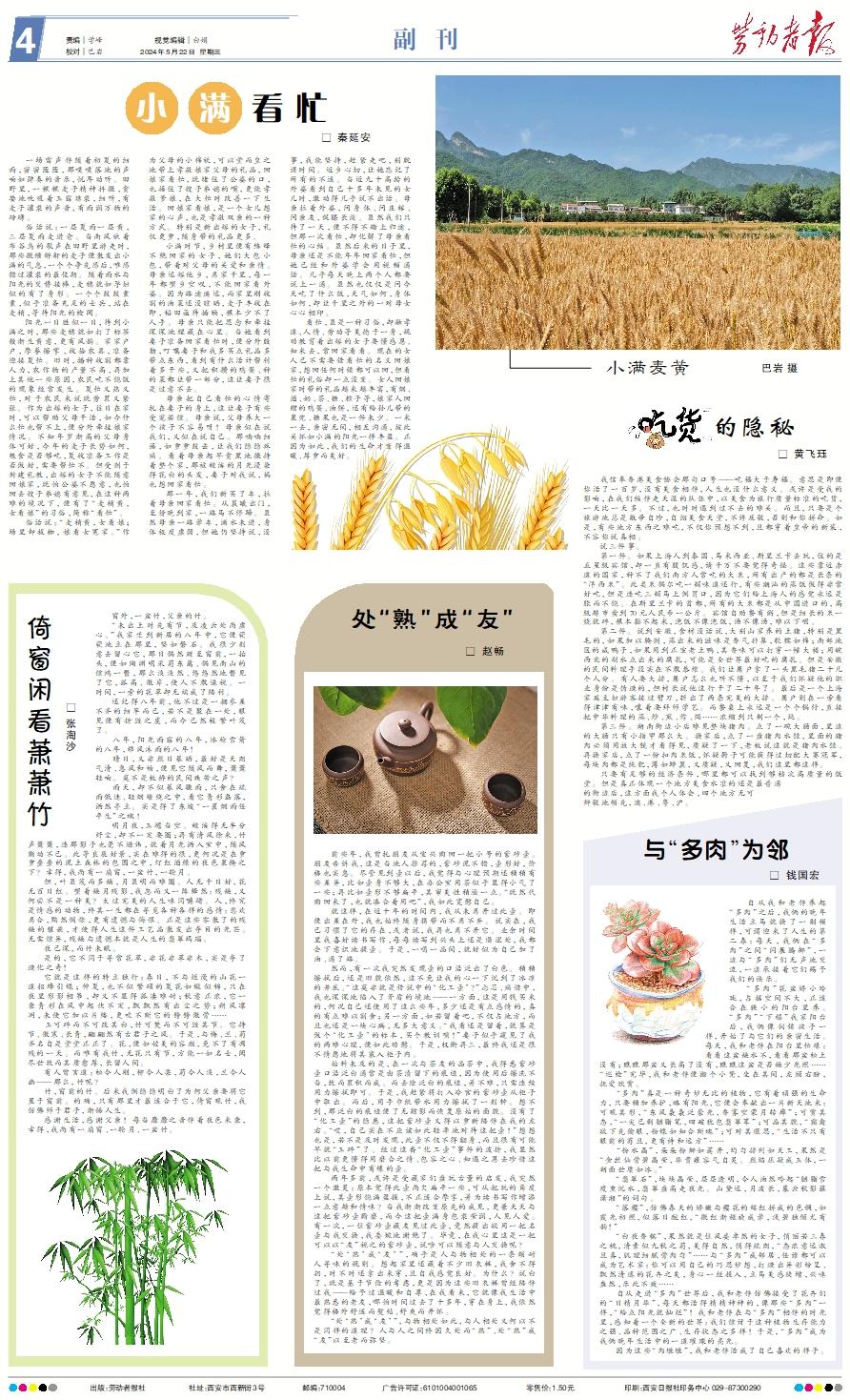 一场雷声伴随着初夏的细雨,密密匝匝,那噗噗落地的声响如弹奏的音乐,悦耳动听。田野里,一棵棵麦子精神抖擞,贪婪地吮吸着玉露琼浆,细听,有麦子灌浆的声音,有雨润万物的磅礴。 俗话说:一层夏雨一层黄,三层夏雨麦进仓。当南风驮着布谷鸟的歌声在田野里游走时,那些微醺醉鼾的麦子便散发出小满的气息,一个个争先恐后,唯恐错过灌浆的最佳期。随着雨水与阳光的交替接棒,麦穗就如孕妇似的有了身形。一个个鼓鼓囊囊,似乎准备充足的士兵,站在麦梢,等待阳光的检阅。 阳光一日胜似一日,待到小满之时,那些麦穗就如打了标签般渐生黄意,更有风韵。家家户户,摩拳擦掌,收拾农具,准备迎接夏忙。旧时,播种收割都靠人力,农作物的产量不高,再加上其他一些原因,农民吃不饱饭的现象经常发生。夏忙又热又忙,对于农民来说既劳累又紧张。作为出嫁的女子,往日在家时,可以帮助父母干活,如今什么忙也帮不上,便分外牵挂娘家情况。不知年岁渐高的父母身体可好,今年的麦子长势如何,粮食是否够吃,夏收准备工作是否做好,需要帮忙不。但受制于封建礼教,出嫁的女子不能随意回娘家,既怕公婆不愿意,也怕回去嫂子弟媳有意见,在这种两难的境况下,便有了“麦梢黄,女看娘”的习俗,简称“看忙”。 俗话说:“麦梢黄,女看娘;场里卸拔枷,娘看女冤家。”作为父母的小棉袄,可以堂而皇之地带上孝敬娘家父母的礼品,回娘家看忙,既堵住了公婆的口,也捂住了嫂子弟媳的嘴,更能孝敬爹娘,在大忙时改善一下生活。回娘家看娘,是一个女儿想家的心声,也是孝敬双亲的一种方式。特别是新出嫁的女子,礼仪更重,随身带的礼品更多。 小满时节,乡村里便有络绎不绝回家的女子,她们大包小包,带着对父母的关爱和亲情。母亲远嫁他乡,离家千里,每一年都望乡空叹,不能回家看外婆。因为路途遥远,而家里刚收割的油菜还没晾晒,麦子丰收在即,稻田亟待插秧,根本少不了人手。母亲只能把思念和牵挂深深地埋藏在心里。当她看到妻子准备回家看忙时,便分外殷勤,叮嘱妻子和我多买点礼品多带点东西,看到有什么活计帮衬着多干些,又把积攒的鸡蛋、种的菜都让带一部分,这让妻子很是过意不去。 母亲把自己看忙的心情寄托在妻子的身上,这让妻子有些受宠若惊。母亲说,父母养大一个孩子不容易呀!母亲似在说我们,又似在说自己。那喃喃细语,如重重鼓击,让我们隐隐疼痛。看着母亲起早贪黑地操持着整个家,那被皎洁的月光浸染得花白的头发,妻子对我说,妈也想回家看忙。 那一年,我们新买了车,拉着母亲回家看忙。从晨曦出门,至傍晚到家,一路马不停蹄。虽然母亲一路晕车,滴水未进,身体极度虚弱,但她仍坚持说,没事,我能坚持,赶紧走吧,别耽误时间。近乡心切,让她忘记了所有的不适。当近九十高龄的外婆看到自己十多年未见的女儿时,激动得几乎说不出话。母亲拉着外婆,问身体、问庄稼、问亲友,促膝长谈。虽然我们只待了一天,便不得不踏上归途,但那一次看忙,却化解了母亲看忙的心结。虽然后来的日子里,母亲还是不能年年回家看忙,但她已经和外婆学会用视频通话。几乎每天晚上两个人都要说上一通。虽然也仅仅是问今天吃了什么饭,天气如何,身体如何,却让千里之外的一对母女心心相印。 看忙,虽是一种习俗,却融孝道、人情、劳动等美德于一身,规劝教育着出嫁的女子要懂感恩、知来去,常回家看看。现在的女人已不需要借看忙的名义回娘家,想回任何时候都可以回,但看忙的礼俗却一点没变。女人回娘家时带的礼品越来越丰富,有烟、酒、奶、茶、糖、粽子等,娘家人回赠的鸡蛋、油饼,还有给孙儿带的裹兜、糖果也是一件未少。一来一去,亲密无间,相互沟通,彼此关怀如小满的阳光一样丰盈。正因为如此,我们的生命才变得温暖、厚重而美好。