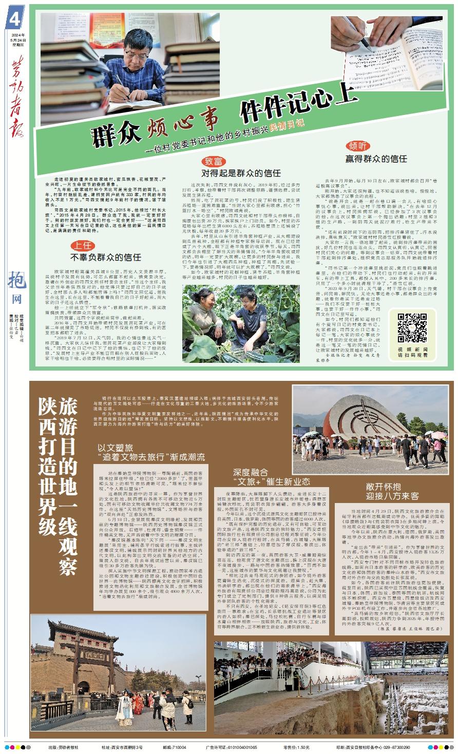 走进初夏的潼关县欧家城村,蜜瓜飘香、花椒繁茂、产业兴旺,一片生命拔节的盎然景象。 “九年前,欧家城村和今天比可是完全不同的面孔。当年,村容村貌脏乱差、建档贫困户就有333家,村民的年均收入不足1万元。”司四文提起9年前村子的情况,皱了皱眉头。 司四文是欧家城村党委书记,2015年,他接过‘村长大旗’,“2015年4月28日。群众选了我,我就一定要好好干。别的村能发展好,我们村也一定会更好……”这是司四文上任第一天写在日记里的话,这也是他的第一篇民情日记,是满满的责任和期待。上任,不辜负群众的信任 欧家城村距离潼关县城8公里,历史人文资源丰厚。虽说村子发展有优势,可怎么都富不起来。镇党委决定,邀请在外创业的司四文担任村委会主任。“当这个主任,我父亲当年是强烈反对的,他觉得只要过好自己的日子就好,全村那么多人咱都能管得上吗?”司四文回忆道,但我生在这里,长在这里,不能看着我自己的日子好起来,而大家的日子还这么恓惶。 他一上任就立下“军令状”:修路修渠打机井、落实政策搞扶贫、带领群众共致富。 共同致富,这四个字说起来简单,做起来难。 2016年,司四文开始带领村民发展黄花菜产业,可在第二年就撞见了市场低迷。村民不仅没有挣到钱,有的甚至把本都赔了进去。 “2019年7月12日,天气阴。我的心情也像这天气一样沉重。大家伙儿信任我,但黄花菜产业却没让大家赚到钱。”司四文在日记中记下了他的懊恼,也记下了他的反思,“发展村上主导产业不能盲目跟在别人屁股后面转,人家干啥咱也干啥,必须要符合咱村里的实际情况……”致富,对得起是群众的信任 这次失利,司四文并没有灰心。2019年初,经过多方打听、考察,他带着村干部再次调整思路、谨慎选择,尝试发展生猪养殖。 然而,吃了黄花菜的亏,村民们没了积极性,建生猪养殖场一度困难重重。“当时大家心里都有顾虑,担心‘竹篮打水一场空’。”村民欧诚亮说。 大家心里有顾虑,司四文就和村干部带头作榜样,自掏腰包出资20万元,挨家挨户上门动员。如今,村里的养殖场每年出栏生猪6000头左右,养殖场屋顶上还铺设了光伏板,每年收益20多万元。 去年,村里从山东引进羊角蜜种植产业,从大棚建设到瓜苗栽种,全程都有种植专家指导培训。现在已经建成了六个大棚,眼下正是羊角蜜的收获季节,每天,司四文都会去棚里了解当天的采摘情况。“今年羊角蜜收成好的话,明年一定要扩大规模,让更多的村民参与进来。我们今年也引进了大棚西瓜种植,种植了两棚,先试验一下,要是情况好,明年就可以扩大规模了。”司四文说。 如今,欧家城村的花椒种植、猪牛养殖、羊角蜜种植等产业越来越多,村民的日子也越来越好。倾听,赢得群众的信任 去年9月开始,每月10日左右,欧家城村都会召开“巷道板凳议事会”。 刚开始,大家还很拘谨,也不知道该说些啥。慢慢地,大家都熟悉了议事会的流程。 “说是开会,就是一起在巷口谝一会儿,有啥烦心事忧心事,说出来,让村干部帮助解决。”在去年12月的议事会上,村民熊拥军说。已经参加了3次议事会的他,在这次议事会上第一个抛出话题:村里2组和3组的生产路,一到阴雨天就泥泞难行,给生产带来不便。 “还有前段时间下的连阴雨,把排污渠堵住了,污水没法排,臭味熏天。”欧家城村村民潘雪红接着说。 大家你一言我一语地聊了起来。说到排污渠带来的困扰,好几位村民也连连点头。司四文认真听、认真记,回答村民们关心的问题。等到议事会一结束,司四文就带着村干部赶到排污渠处,组织党员志愿服务队开始疏通排污渠。 “司书记第一个冲进渠里挑淤泥,党员们也跟着跳进渠里。在他们的带动下,村民们也行动起来,有的开来车,有的带上工具,都投入其中。200多米长的排污渠,只用了一个多小时就清理干净了。”潘雪红说。 “2023年9月28日,天气晴。村干部在议事会上传党音、问民需、解民忧。无论大事还是小事,都是群众出的考题,就看你是实干还是走过场……我们不仅要干好一桩桩大事,也要干好一件件小事。”司四文在日记里写道。 如今,村民们都知道他们有个爱写日记的村党委书记。大家都说,司四文在日记本上每记一笔,大家的烦心事就少一件,村里的变化就多一分,就是这一笔又一笔的民情日记,让欧家城村的发展越来越好。 全媒体记者 孙雯 赵文青 裴雅乔