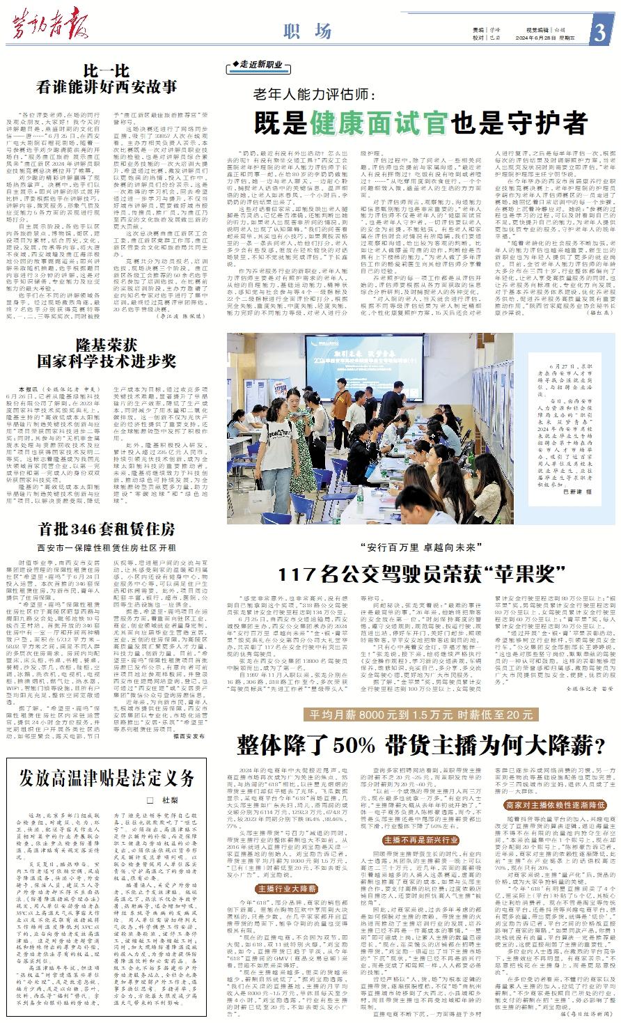 “奶奶,最近有没有外出活动?怎么出去的呢?有没有乘坐交通工具?”西安工会医院老年护理院的老年人能力评估师于长鑫正和同事一起,在给80岁的李奶奶做能力评估,她一边与老人聊天,一边耐心聆听,捕捉老人话语中的关键信息。温声细语的她,让老人如沐春风,一个小时后,李奶奶的评估结果出来了。 这些对话看似家常,却能反映出老人腿脚是否灵活,记忆是否准确,还能判断出她的听力,如果老人出现答非所问的情况,则说明老人出现了认知障碍。“我们的问答看起来简单,其实也有小技巧,如果真按表格里的一条一条去问老人,给他们打分,老人多少会有些反感,但放在轻松愉快的对话场景里,不知不觉就能完成评估。”于长鑫说。 作为养老服务行业的新职业,老年人能力评估师主要是对有照护需求的老年人,从他的自理能力、基础运动能力、精神状态、感知觉与社会参与等4个一级指标及22个二级指标进行全面评价和打分,根据完全失能、重度失能、中度失能、轻度失能、能力完好的不同能力等级,对老人进行分级护理。 评估过程中,除了问老人一些相关问题,评估师也会提前与家属沟通,“最近老人有没有摔倒过?吃饭有没有呛到或者噎过?……”从吃穿用度到衣食住行,一个个问题细致入微,涵盖老人的生活的方方面面。 对于评估师而言,观察能力、沟通能力和信息甄别能力也是非常重要的。“老年人能力评估师不仅是老年人的‘健康面试官’,也是老年人守护者,一切评估要以老人的安全为前提,不能勉强。有些老人和家属在评估时会对情况有所隐瞒,我们要通过观察和沟通,给出较为客观的判断。比如让老人做膝盖弯曲的动作,判断他是否具有上下楼梯的能力。”为老人做了多年评估工作的杨爱莉医生向其他评估师分享着自己的经验。 养老照护的每一项工作都是从评估开始的,评估师要根据从各方面获取的信息综合分析研判,及时捕捉老人的各种变化。 “对入院的老人,当天就会进行评估,根据不同等级评估结果为老人制定精细化、个性化康复照护方案,15天后还会对老人进行复评,之后是每半年评估一次,根据每次的评估结果及时调解照护方案,当老人出现突发状况时则需要立即评估。”老年护理院护理部主任宁朝华说。 在今年举办的西安市首届康养行业职业技能竞赛决赛上,老年护理院的护理员李萌作为老年人评估师赛区的一员走进了赛场,她回忆着日常培训中的每一个步骤,在赛场上沉着冷静应对。她说:“参赛的过程也是学习的过程,可以及时看到自己的不足,更快提升自己的能力,为老年人提供更加优质专业的服务,守护老年人的晚年幸福。” “随着老龄化的社会服务不断加强,老年人的能力评估也越来越重要,催生出的新职业也为年轻人提供了更多的就业岗位。目前,全省老年人能力评估师的年龄大多分布在三四十岁,行业整体都偏向了年轻化,让老人享受高质量服务的同时,也让养老服务向标准化、专业化方向发展。对于基本养老服务体系建设、优化养老服务供给、促进养老服务高质量发展有重要推动作用。”陕西省家庭服务业协会秘书长康沙萍说。 (骆红燕)