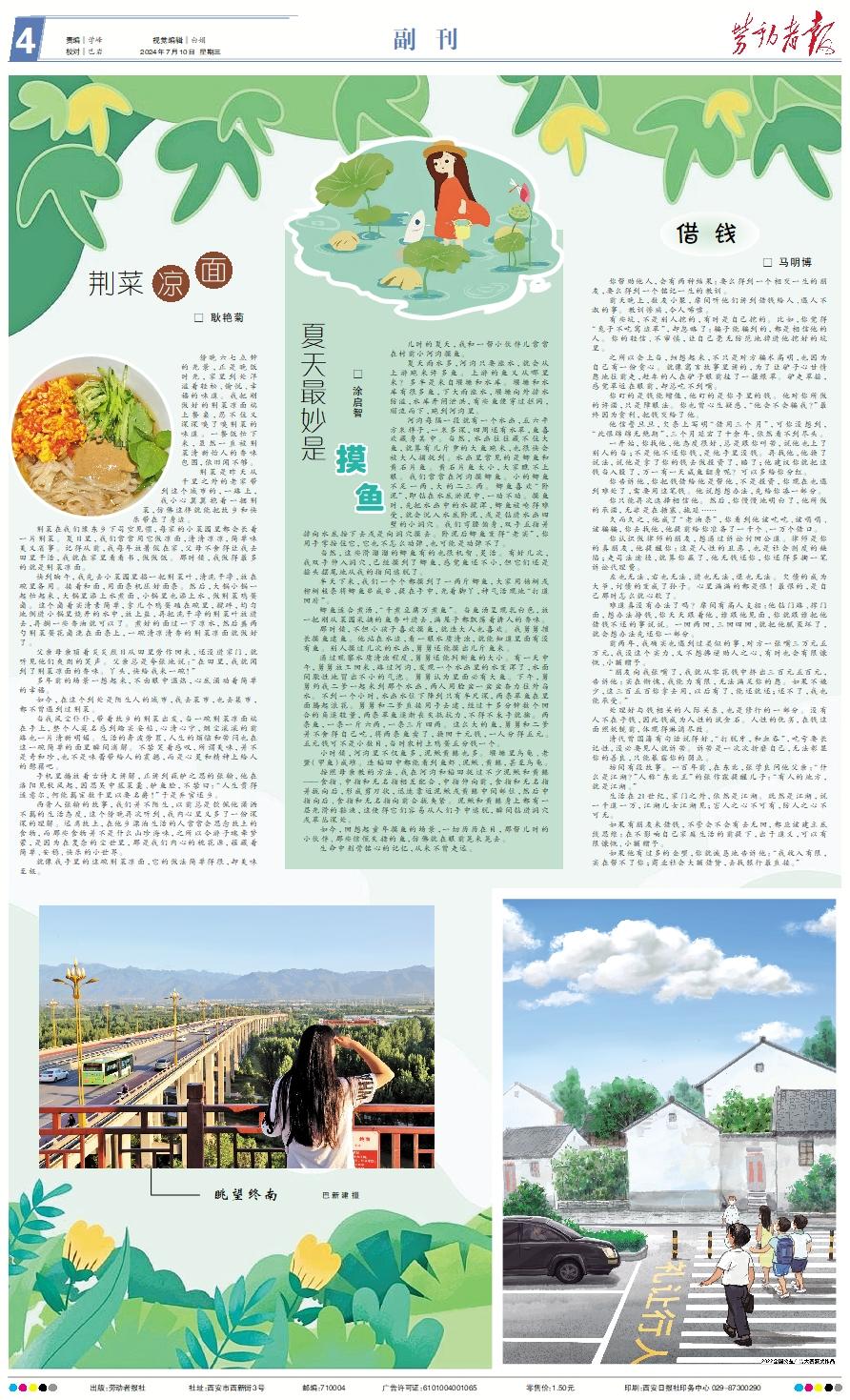 儿时的夏天,我和一帮小伙伴儿常常在村前小河沟摸鱼。 夏天雨水多,河沟只要涨水,就会从上游跑来许多鱼。上游的鱼又从哪里来?多半是来自堰塘和水库。堰塘和水库有很多鱼,下大雨涨水,堰塘向外排水防溢,水库开闸泄洪,有些鱼便穿过拦网,顺流而下,跑到河沟里。 河沟每隔一段就有一个水凼,五六平方米样子,一米多深,四周还有水草,鱼喜欢藏身其中。当然,水凼往往藏不住大鱼,就算有几斤重的大鱼跑来,也很快会被大人捕捉到。水凼里常见的是鲫鱼和黄石片鱼。黄石片鱼太小,大家瞧不上眼。我们常常在河沟摸鲫鱼。小的鲫鱼不足一两,大的二三两。鲫鱼喜欢“卧泥”,即钻在水底淤泥中,一动不动。摸鱼时,先把水凼中的水搅浑,鲫鱼被呛得难受,就会沉入水底卧泥,或是钻进水凼四壁的小洞穴。我们弯腰俯身,双手五指并排向水底按下去或是向洞穴摸去。卧泥后鲫鱼变得“老实”,你用手掌按住它,它也不怎么动弹,也可能是动弹不了。 当然,这些滑溜溜的鲫鱼有的也很机智、灵活。有好几次,我双手伸入洞穴,已经摸到了鲫鱼,感觉鱼还不小,但它们还是摇头摆尾地从我的指间逃脱了。 半天下来,我们一个个都摸到了一两斤鲫鱼,大家用杨树或柳树枝条将鲫鱼串成串,提在手中,光着脚丫,神气活现地“打道回府”。 鲫鱼适合煮汤,“千煮豆腐万煮鱼”。当鱼汤呈现乳白色,放一把刚从菜园采摘的鱼香叶进去,满屋子都飘荡着诱人的香味。 那时候,不但小孩子喜欢摸鱼,就连大人也喜欢。我舅舅擅长摸鱼逮鱼。他站在水边,看一眼水质清浊,就能知道里面有没有鱼。别人摸过几次的水凼,舅舅还能摸出几斤鱼来。 通过观察水质清浊程度,舅舅还能判断鱼的大小。有一天中午,舅舅放工回来,路过河沟,发现一个水凼里的水变浑了,水面间歇性地冒出不小的气泡。舅舅认为里面必有大鱼。下午,舅舅约我二爹一起来到那个水凼,两人用脸盆一盆盆奋力往外舀水。不到一个小时,水凼水位下降到只有半尺深,两条草鱼在里面腾起浪花。舅舅和二爹直接用手去逮,经过十多分钟数个回合的角逐较量,两条草鱼逐渐丧失抵抗力,不得不束手就擒。两条鱼,一条一斤六两,一条三斤四两。这么大的鱼,舅舅和二爹并不舍得自己吃,将两条鱼卖了,换回十元钱,一人分得五元。五元钱可不是小数目,当时农村土鸡蛋五分钱一个。 小时候,河沟里不仅鱼多,泥鳅黄鳝也多。堰塘里乌龟、老鳖(甲鱼)成堆。连稻田中都能看到鱼虾、泥鳅、黄鳝,甚至乌龟。 按照母亲教的方法,我在河沟和稻田捉过不少泥鳅和黄鳝——食指、中指和无名指相互配合,中指伸向前,食指和无名指并拢向后,形成剪刀状,迅速靠近泥鳅或黄鳝中间部位,然后中指向后、食指和无名指向前合拢夹紧。泥鳅和黄鳝身上都有一层光滑的黏液,这使得它们容易从人们手中逃脱,瞬间钻进洞穴或草丛深处。 如今,回想起童年摸鱼的场景,一切历历在目,那帮儿时的小伙伴、那些惊慌失措的鱼,仿佛就在眼前晃来晃去。 生命中刻骨铭心的记忆,从来不曾走远。