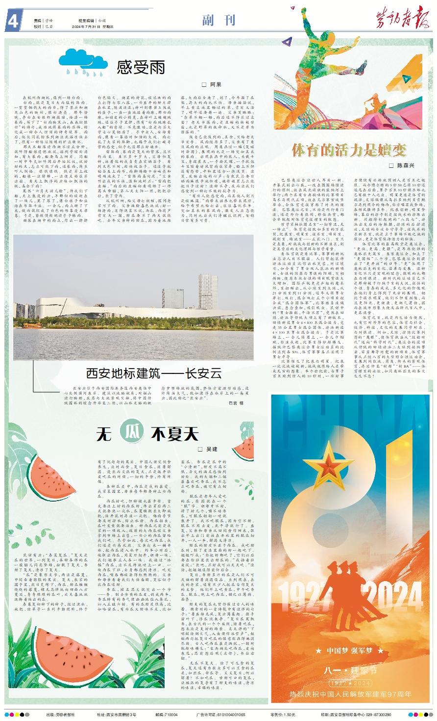 在杭州西湖玩,遇到一场白雨。 白雨,就是夏日大而猛的阵雨。一贯贯铜钱大的雨串,得了墨云和湖光山色的映衬,银白透亮。那年傍晚,李白在安徽虾湖投宿,恰逢一场暴雨,写下了“白雨映寒山,森森似银竹”的诗句,成功地将暴雨的恐怖,转化成一种令人惊讶的神奇境界。雨后,他伙同采铅客到湖边洗浴凉快去了,很有一种任运随缘的旷达襟怀。 那天木船荡进西湖不过五分钟,就听得船娘遗憾地说,接到管理处通知,有大暴雨,船要马上回岸。同船一对中年夫妇听闻后开始抗议,说好好的天,怎么可能下雨,还暴雨,简直吓人倒怪。退钱退钱。钱是岸上收的,船娘一边解释,一边使足劲往岸边摇。看天上飘浮的云块如飘扬的帆,真会下雨? 果然“六月天孩儿脸”,待我们下船,天上散漫的云,羊群似的被赶在了一块儿,黑了厚了,像白娘子和法海在布阵斗法。一会儿,雨点砸了下来,俄而就织成了白色的帷幕漫天席卷。于是,紧赶慢赶跑进亭子躲雨。 砸落在湖中的雨点,炸出一弹弹白色焰火。湖里的荷花,被迅疾的雨点打得七零八落,一些盛开的瓣片掉在水里,随波逐流;荷叶则像碧玉做成的盘子,一盘一盘地接着雨珠,那些雨珠,如顽皮的小精灵,在荷叶上蹦蹦跳跳,还往亭子里弹,很有“白雨跳珠乱入船”的意境。不免激动,这是与苏大学士心灵相通了。亭中众人,安静看雨,像看一幕临时加演的大戏。雨打乱了大家的阵脚,也赐予我们打破寻常的感受,似乎也没那么好嫌弃。 雷阵雨、暴雨是夏天的常客,且不约而至。差不多十岁大,父母忙夏种,放暑假的我负责在家晒谷子。看到天色不对,赶快收谷子。还没等把稻谷盖上雨布,雨脚踢踏十分响亮和明确地来了。“雷阵雨真讨厌。”父亲听出我的不快,温和地纠正:“雷雨肥庄稼。”雨后的庄稼初看喝醉了一样蔫头耷脑,第二天太阳一照,肥肥壮壮,长了骨肉。 从杭州回,给父母打视频,探问老家可下雨。父亲满脸喜色地说:好一场透雨,省得浇菜不说,南瓜、西葫芦肯定大一圈,甜瓜要不了两天就能吃。去年父亲种的甜瓜,因为着地爬藤,大雨后全淹了、烂了,今年搭了瓜架,再大的雨也不怕。母亲插话说,早上黄豆地里锄过的草,肯定又活了,明早还要薅一遍。父亲笑眯眯:“杂草不锄一锄,雨后还不得压过豆苗?老天爷落雨,是庄稼的杨枝甘露,也是野草的救命水,又不是单为谁落的。” 做自己能做到的,其余,交给老天爷定夺。风雨经历多了,父亲有了看淡风雨的达观。周臣画过一幅《夏畦时泽图》,展现的也是一场突如其来的暴雨。出现在画中的农人,头戴斗笠,身披蓑衣,一手拎瓦罐,一手扶住斗笠顶着逆风冒雨往家奔,脸上不但没有愁苦,平和里还含一抹浅笑。这笑,反映出他的心声:当农民总要日晒雨淋艰辛地忙碌,嫌苦嫌累怎么能把日子过好?这种不争,反而让我们感受到一种打不败的抗争力。 “有些人能感受雨,而其他人则只是被淋湿。”雨带来滋养也带来泥泞,给予希望也给打击,往往喜忧参半。突如其来的暴风雨,激发人应急能力,同时也让我们清醒认识到,安稳日常有多可贵。