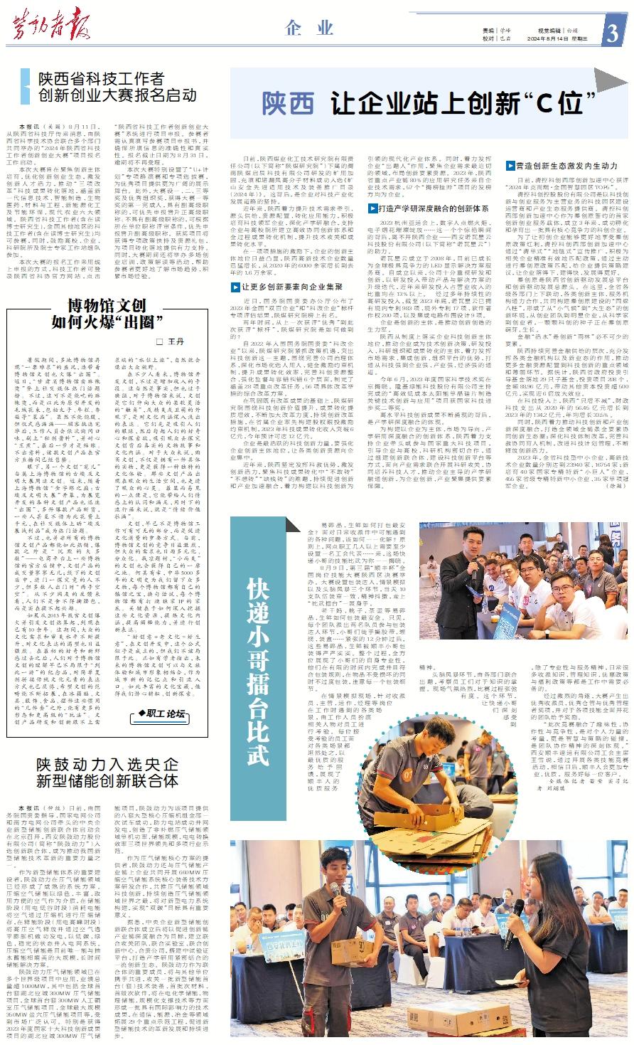 日前,陕西煤业化工技术研究院有限责任公司(以下简称“陕煤研究院”)下属的渭南陕煤启辰科技有限公司研发的矿用加固、充填和堵漏风高分子材料成功入选《矿山安全先进适用技术及装备推广目录(2024年)》。这背后,是企业对科技产业化发展道路的坚持。 近年来,陕西着力提升技术需求牵引、源头供给、资源配置、转化应用能力,积极培育科技领军企业,深化产学研融合,支持企业与高校院所建立高效协同创新体系和全过程成果转化机制,提升技术攻关和成果转化水平。 在一项项措施的激励下,企业的创新主体地位日益凸显,陕西高新技术企业数量迅猛增长,从2020年的6000余家增长到去年的1.6万余家。让更多创新要素向企业集聚 近日,国务院国资委办公厅公布了2023年全国“双百企业”和“科改企业”标杆专项评估结果,陕煤研究院榜上有名。 两年时间,从上一次获评“优秀”到此次获评“标杆”,陕煤研究院是如何做到的? 自2022年入围国务院国资委“科改企业”以来,陕煤研究院紧抓政策机遇,突出科技创新这一主题,围绕完善公司治理体系、深化市场化选人用人、健全激励约束机制、提升成果转化效率、完善科创资源整合、强化监督与容错纠错6个层面,制定了涵盖28项重点改革任务、56项具体改革举措的综合改革方案。 在巩固既有改革成果的基础上,陕煤研究院围绕科技创新价值提升、成果转化提质增效,不断加大改革力度,持续创新改革措施,在省属企业率先构建股权跟投激励约束机制,2023年科技成果转化收入突破6亿元,今年预计可达12亿元。 企业是最活跃的科技创新力量,要强化企业创新主体地位,让各类创新资源向企业集中。 近年来,陕西坚定发挥科教优势,激发创新活力,聚焦科技成果转化中“不敢转”“不想转”“缺钱转”的难题,持续促进创新和产业加速融合,着力构建以科技创新为引领的现代化产业体系。同时,着力发挥企业“出题人”作用,聚焦企业需求最迫切的领域,布局创新要素资源。2023年,陕西省重点产业链80%的应用研究任务来自企业技术需求,57个“揭榜挂帅”项目的发榜方均为企业。 打造产学研深度融合的创新体系 2023杭州亚运会上,数字人点燃火炬、电子烟花璀璨绽放……这一个个惊艳瞬间的背后,离不开陕西企业——西安诺瓦星云科技股份有限公司(以下简称“诺瓦星云”)的助力。 诺瓦星云成立于2008年,目前已成长为全球极具竞争力的LED显示解决方案服务商。自成立以来,公司十分重视研发和创新,以研发投入带动产品与解决方案的升级迭代,近年来研发投入占营业收入的比重均在13%以上。 经过多年持续性的高研发投入,截至2023年底,诺瓦星云已拥有境内专利983项、境外专利17项、软件著作权200项,以及集成电路布图设计9项。 企业是创新的主体,是推动创新创造的生力军。 陕西从制度上落实企业科技创新主体地位,推动企业成为技术创新决策、研发投入、科研组织和成果转化的主体,着力发挥市场需求、集成创新、组织平台的优势,打通从科技强到企业强、产业强、经济强的通道。 今年6月,2023年度国家科学技术奖在京揭晓。隆基绿能科技股份有限公司主持完成的“高效低成本太阳能单晶硅片制造关键技术创新与应用”项目获国家科技进步奖二等奖。 高水平科技创新成果不断涌现的背后,是产学研深度融合的体现。 为构建以企业为主体、市场为导向、产学研用深度融合的创新体系,陕西着力支持企业牵头或参与国家重大科技项目,引导企业与高校、科研机构密切合作,通过组建创新联合体、建设科技创新平台等方式,面向产业需求联合开展科研攻关、协同培养科技人才,推动企业主导的产学研融通创新,为企业创新、产业聚集提供要素保障。营造创新生态激发内生动力 日前,清控科创西部创新加速中心获评“2024年克而瑞·全国智慧园区TOP5”。 清控科创控股股份有限公司是以科技创新与创业服务为主营业务的科技园区建设运营商和产业生态服务提供商。清控科创西部创新加速中心作为秦创原签约的首家创新创业服务载体,成立3年来,成功孵化和孕育出一批具有核心竞争力的科创企业。 为了让初创企业能够更好地享受秦创原政策红利,清控科创西部创新加速中心通过“清单式”“地毯式”宣传推广,积极为相关企业精准有效地匹配政策,通过主动进行秦创原政策匹配,给企业提供策略建议,让企业落得下、建得快、发展得更好。 秦创原是陕西省创新驱动发展总平台和创新驱动发展总源头。在这里,全省各级各部门上下联动,各类创新主体、服务机构通力合作,共同构建秦创原建设的“四梁八柱”,形成了从“小气候”到“大生态”的创新环境,从创业团队到明星企业,从科学家到创业者,一颗颗科创的种子正在秦创原萌芽、生长。 金融“活水”是创新“雨林”必不可少的要素。 陕西持续完善金融供给的层次,充分发挥各类金融机构以及新业态的作用,推动更多金融资源配置到科技创新的重点领域和薄弱环节。据统计,陕西省政府投资引导基金落地29只子基金,投资项目208个、金额88.96亿元,带动其他资本投资超500亿元,实现近6倍放大效应。 在科技投入上,陕西“只增不减”,财政科技支出从2020年的56.45亿元增长到2023年的134.2亿元,年均增长33.5%。 同时,陕西着力推动科技创新和产业创新深度融合,打造全领域全链条全要素