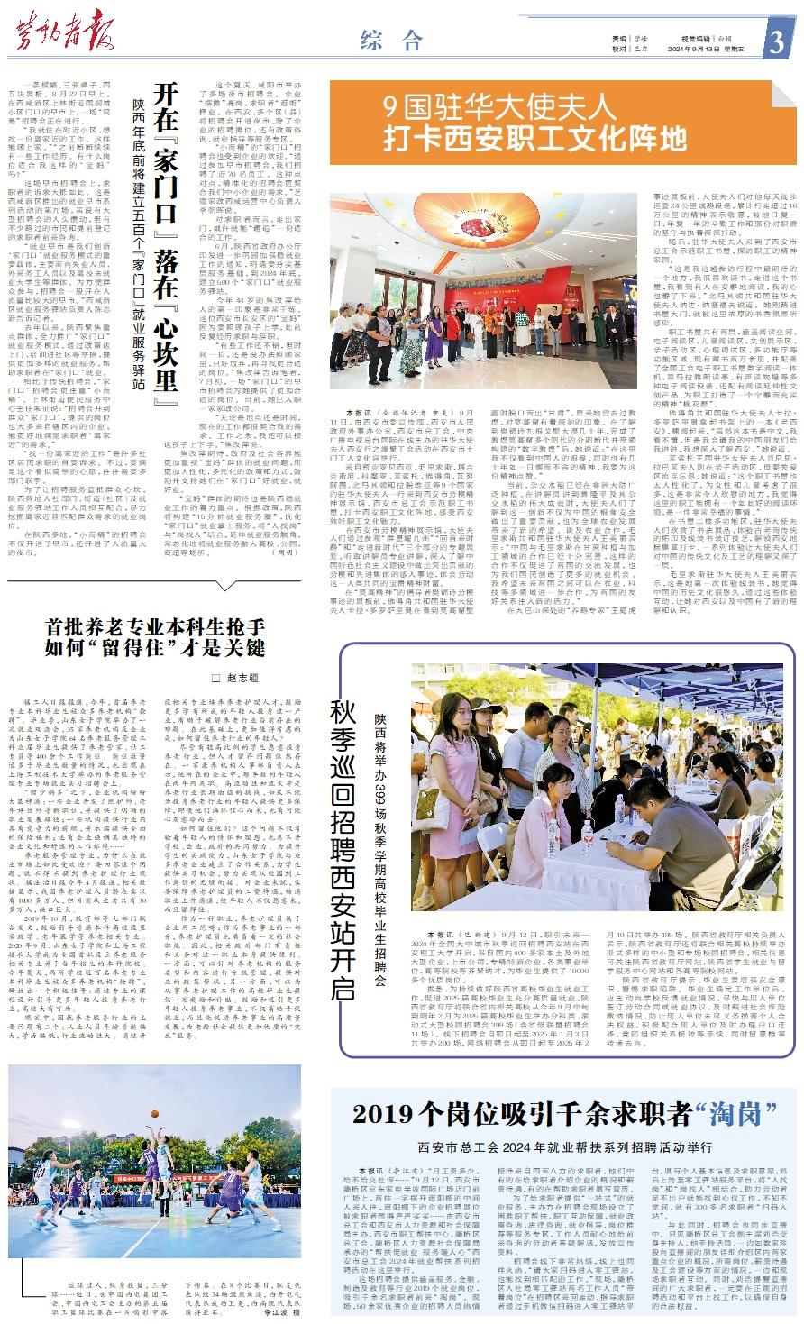 本报讯 (李江波) “月工资多少,给不给交社保……”9月12日,西安市灞桥区京东家电半坡国际广场店门前广场上,两排一字摆开遮阳棚的中间人来人往,遮阳棚下的企业招聘展位被求职者围得严严实实……由西安市总工会和西安市人力资源和社会保障局主办,西安市职工帮扶中心、灞桥区总工会、灞桥区人力资源社会保障局承办的“帮扶促就业 服务暖人心”西安市总工会2024年就业帮扶系列招聘活动在这里举行。 这场招聘会提供涵盖服务、金融、制造及教育等行业2019个就业岗位,吸引千余名求职者前来“淘岗”。现场,50余家优秀企业的招聘人员热情接待来自四面八方的求职者,他们中有的在给求职者介绍企业的概况和薪资待遇,有的在帮助求职者填写简历。 为了给求职者提供“一站式”的就业服务,主办方在招聘会现场设立了困难职工帮扶、职工互助保障、就业政策咨询、法律咨询、就业指导、岗位推荐等服务专区,工作人员耐心地给前来咨询的劳动者答疑解惑,发放宣传资料。 招聘会线下非常热络,线上也同样火热。“请大家扫码进入零工驿站,也能找到相匹配的工作。”现场,灞桥区人社局零工驿站两名工作人员“带着岗位”在招聘区来回走动,指导求职者通过手机微信扫码进入零工驿站平台,填写个人基本信息及求职意愿,然后上传至零工驿站服务平台,将“人找岗”和“岗找人”相结合,助力劳动者足不出户就能找到心仪工作,不知不觉间,就有300多名求职者“扫码入站”。 与此同时,招聘会也同步直播中。只见灞桥区总工会副主席刘浩变身主持人,他手持话筒,一边如数家珍般向直播间的朋友详细介绍区内两家重点企业的概况、所需岗位、薪资待遇及工会建设等方面的情况,一边和现场求职者互动。同时,刘浩提醒直播间的广大求职者,一定要在正规的招聘活动和平台上找工作,以确保自身的合法权益。