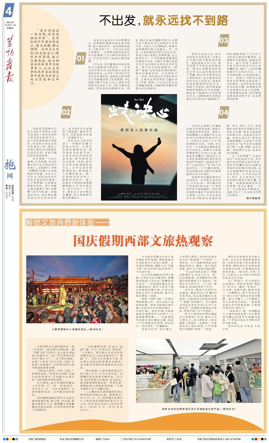 大唐芙蓉园内上演精彩演出。(新华社发) 在陕西西安大唐芙蓉园来一场“华服秀”,到甘肃省博物馆一睹“马踏飞燕”的风采,去云南乡村感受“诗和远方”,赴广西尽享南方夜市的“烟火气”……这个国庆假期,体验“小而美”的文艺游、追求“松弛感”的微旅行,在西部地区文旅市场受到游客追捧。 记者走访陕西、甘肃、云南、广西等地发现,“深度文化体验”正成为旅游关键词,文旅融合出新出彩,为游客解锁多样选择。 秋日傍晚,挂在仿唐建筑檐角上的夕阳,已一缕一缕地收尽。华灯初上,在一片流光溢彩中,大唐芙蓉园迎来一天中最热闹的时刻。 园内雕梁画栋的建筑在光影交错间熠熠生辉,紫云楼、仕女馆、彩霞长廊等打卡点,簇拥着众多身着精美华服的游客,纷纷用相机定格下美丽瞬间。 “大家身穿华服,游走在‘盛唐气象’之中,不时还有‘贺知章’‘上官婉儿’等华服大巡游的扮演者擦肩而过,我仿佛感觉自己‘穿越’了。”来自北京的郭女士说,历史和文化被这样具象化地感知,这种身临其境的体验是前所未有的。 国庆假期,大唐芙蓉园发出华服之邀,10月1日当天面向每一位身着华服的游客免费开放。“连日来,园内游客天天爆满,东仓鼓乐、南北狮舞等非遗表演,‘梦回大唐’等精彩演出深受游客喜爱。”大唐芙蓉园工作人员魏贝说。 人头攒动的大唐芙蓉园折射出陕西旅游市场的火热。数据显示,仅10月1日一天,陕西重点监测的51个旅游景区就接待游客41.17万人次,同比增长18.65%;旅游经营收入2741.65万元,同比增长38.37%。 游客在甘肃省博物馆艺术生活馆挑选文创产品。(新华社发) 当文物的厚重与文创产品的精妙相互碰撞,博物馆成为许多游客打卡的热门选择。在甘肃省博物馆,镇馆之宝“马踏飞燕”所在的展厅被游客围了个水泄不通。 15岁的李瑾豪来自四川成都,对历史文化兴趣浓厚,借着假期他和父母决定“跟着课本去旅行”。“近距离观摩这件东汉青铜佳作,铜马飞奔的气势以及昂扬的精气神,不由让我想起古诗中大漠孤烟、塞外边关的意境。”他说。 围绕“马踏飞燕”,甘肃省博物馆推出的一系列文创产品受到热捧。铜奔马或是化身玩偶,绿茸茸的马欢脱地踏在一只燕子身上,憨态可掬;亦或是被制作成清甜可口的饼干,让游客啧啧称赞……“这款铜奔马毛绒文创玩偶很出圈,我买了几件准备送给同学,相信他们一定会喜欢。”李瑾豪说。 美景在远方,也在身边。今年国庆假期,市内游及城市周边的“微度假”“乡村游”广受欢迎。在云南昆明滇池边的海晏村码头,邂逅一场日落的浪漫,成为不少游客的新选择。 “在这里我体会到了‘落霞与孤鹜齐飞,秋水共长天一色’的诗情画意,美景搭配周边惬意的旅游氛围让人很放松。”游客汪女士倚坐在一个小院二楼的窗边,悠闲地享受下午茶。 近年来,得益于良好的生态基础,海晏村这个有着600多年历史、保存较完整的古渔村落,在滇池落日美景的映衬下“颜值”持续提升。不少昆明市民将这里比作家门口的“诗和远方”,选择国庆假期徒步至此,享受夕阳下的“松弛感”。 四川人缪朋灼经营的海晏湾小院离码头不远,最近几天生意红火,适合观景的二楼包厢和三楼露台一座难求。“凡是到我家小院的游客,下午茶和落日晚餐是‘标配’。”他说。 昆明市文旅局有关负责人介绍,近年来乡村旅游受到欢迎,为满足游客个性化和多样性需求,昆明通过生态建设和文旅融合发展,打造滇池旅游黄金岸线,一批可游、可观、可玩、可品的山水田园乡村旅游目的地正在形成。 在广西南宁,不少游客以夜间漫步、品味美食等“微旅行”的方式,畅游“夜南宁”。灯光秀、美食市集、歌舞表演……夜幕降临,南宁市良庆区的“南宁之夜”街区拉开夜市帷幕。彩灯闪耀下,人们穿梭于各式各样的店铺间,一些游客还拿出手机现场直播,分享南方夜市的“烟火气”。 “夜游南宁,是一种领略风土人情的别样选择,可以更好地读懂这座城市的底蕴与温度。”广西社科院社会学研究所所长姚华说。 新华社记者 王泽昊 文静 严勇