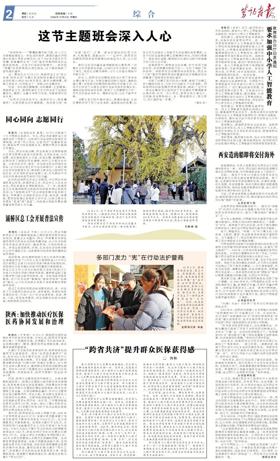 本报讯 (通讯员 于皎) 12月4日,西安市灞桥区总工会在灞桥街道爱心驿站组织开展普法宣传活动,邀请北京市盈科(西安)律师事务所薛电琛律师举行宪法与劳动法专题讲座,向户外劳动者普及宪法的法律地位、基本原则、公民的权利义务。并通过典型案例,详细、生动地向劳动者讲解在工作中遇到工伤、违法解除劳动关系等问题时该如何维权。 活动现场,薛电琛围绕职工关心的法律问题,以案释法普及了《中华人民共和国宪法》《中华人民共和国工会法》《劳动合同法》等法律法规知识,并现场对大家所提出的法律问题进行答疑解惑。区总工会工作人员向在场的职工发放《宪法》《工会法》《劳动合同法》等法律法规,灞桥街道职工爱心驿站专门设立法律咨询角,进一步延伸法律服务触角,将户外劳动者“歇脚地”和法律知识“加油站”融合,让户外劳动者在休息之余潜移默化学到法律知识。 通过工会联动开展送法进驿站活动,进一步加强了工会组织在法治宣传、法律援助、协调劳动关系等的作用,引导广大户外劳动者学法、知法、尊法、守法,增强法律意识,切实保障劳动者合法权益,构建和谐劳动关系。