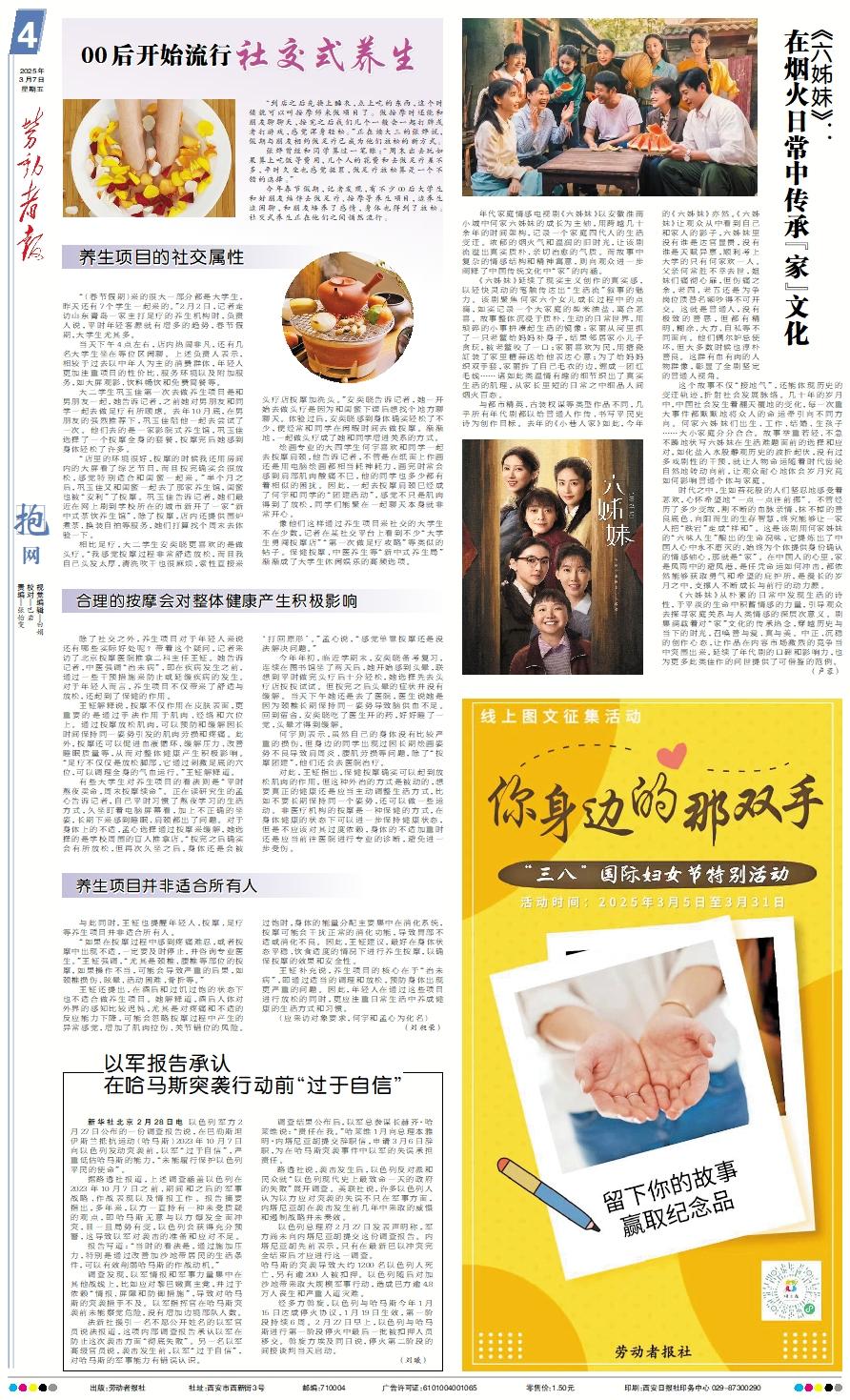 “到店之后先换上睡衣,点上吃的东西,这个时候就可以叫按摩师来做项目了。做按摩时还能和朋友聊聊天,按完之后我们几个一般会一起打牌或者打游戏,感觉浑身轻松。”正在读大三的张烨说,假期与朋友相约做足疗已成为他们放松的新方式。 张烨曾经和同学算过一笔账:“周末出去玩如果算上吃饭等费用,几个人的花费和去做足疗差不多,平时久坐也感觉挺累,做足疗放松算是一个不错的选择。” 今年春节假期,记者发现,有不少00后大学生和好朋友结伴去做足疗、按摩等养生项目,边养生边闲聊,和朋友培养了感情,身体也得到了放松。社交式养生正在他们之间悄然流行。养生项目的社交属性 “(春节假期)来的很大一部分都是大学生,昨天还有7个学生一起来的。”2月2日,记者走访山东青岛一家主打足疗的养生机构时,负责人说,平时年轻客源就有增多的趋势,春节假期,大学生尤其多。 当天下午4点左右,店内热闹非凡,还有几名大学生坐在等位区闲聊。上述负责人表示,相较于过去以中年人为主的消费群体,年轻人更加注重项目的性价比、服务环境以及附加服务,如大屏观影、饮料畅饮和免费简餐等。 大二学生巩玉佳第一次去做养生项目是和男朋友一起,她告诉记者,之前她对男朋友和同学一起去做足疗有所顾虑。去年10月底,在男朋友的强烈推荐下,巩玉佳陪他一起去尝试了一次。他们去的是一家影院式养生馆,巩玉佳选择了一个按摩全身的套餐,按摩完后她感到身体轻松了许多。 “店里的环境很好,按摩的时候我还用房间内的大屏看了综艺节目,而且按完确实会很放松,感觉特别适合和闺蜜一起来。”半个月之后,巩玉佳又和闺蜜一起去了那家养生馆,闺蜜也被“安利”了按摩。巩玉佳告诉记者,她们最近在网上刷到学校所在的城市新开了一家“新中式茶饮养生馆”,除了按摩,店内还提供围炉煮茶、换装自拍等服务,她们打算找个周末去体验一下。 相比足疗,大二学生安奕晓更喜欢的是做头疗。“我感觉按摩过程非常舒适放松,而且我自己头发太厚,清洗吹干也很麻烦,索性直接来头疗店按摩加洗头。”安奕晓告诉记者,她一开始去做头疗是因为和闺蜜下课后想找个地方聊聊天。体验过后,安奕晓感到身体确实轻松了不少,便经常和同学在闲暇时间去做按摩。渐渐地,一起做头疗成了她和同学增进关系的方式。 绘画专业的大四学生何宇喜欢和同学一起去按摩肩颈,他告诉记者,不管是在纸面上作画还是用电脑绘画都相当耗神耗力,画完时常会感到肩部肌肉酸痛不已,他的同学也多少都有着相似的困扰。因此,一起去按摩肩颈已经成了何宇和同学的“团建活动”,感觉不只是肌肉得到了放松,同学们能聚在一起聊天本身就非常开心。 像他们这样通过养生项目来社交的大学生不在少数,记者在某社交平台上看到不少“大学生勇闯按摩店”“第一次做足疗攻略”等类似的帖子。保健按摩、中医养生等“新中式养生局”渐渐成了大学生休闲娱乐的高频选项。合理的按摩会对整体健康产生积极影响 除了社交之外,养生项目对于年轻人来说还有哪些实际好处呢?带着这个疑问,记者采访了北京按摩医院推拿二科主任王钲。她告诉记者,中医强调“治未病”,即在疾病发生之前,通过一些干预措施来防止或延缓疾病的发生。对于年轻人而言,养生项目不仅带来了舒适与放松,还起到了保健的作用。 王钲解释说,按摩不仅作用在皮肤表面,更重要的是通过手法作用于肌肉、经络和穴位上。通过按摩放松肌肉,可以预防和缓解因长时间保持同一姿势引发的肌肉劳损和疼痛。此外,按摩还可以促进血液循环、缓解压力、改善睡眠质量等,从而对整体健康产生积极影响。“足疗不仅仅是放松脚部,它通过刺激足底的穴位,可以调理全身的气血运行。”王钲解释道。 有些大学生对养生项目的看法则是“平时熬夜卖命,周末按摩续命”。正在读研究生的孟心告诉记者,自己平时习惯了熬夜学习的生活方式,久坐盯着电脑屏幕看,加上不正确的坐姿,长期下来感到睡眠、肩颈都出了问题。对于身体上的不适,孟心选择通过按摩来缓解,她选择的是学校周围的盲人推拿店。“按完之后确实会有所放松,但再次久坐之后,身体还是会被‘打回原形’。”孟心说,“感觉单靠按摩还是没法解决问题。” 今年年初,临近学期末,安奕晓备考复习,连续在图书馆坐了两天后,她开始感到头晕,联想到平时做完头疗后十分轻松,她选择先去头疗店按按试试。但按完之后头晕的症状并没有缓解。当天下午她还是去了医院,医生说她是因为颈椎长期保持同一姿势导致脑供血不足。回到宿舍,安奕晓吃了医生开的药,好好睡了一觉,头晕才得到缓解。 何宇则表示,虽然自己的身体没有比较严重的损伤,但身边的同学出现过因长期绘画姿势不良导致肩周炎、腰肌劳损等问题,除了“按摩团建”,他们还会去医院治疗。 对此,王钲指出,保健按摩确实可以起到放松肌肉的作用,但这种外治的方式是被动的,想要真正的健康还是应当主动调整生活方式,比如不要长期保持同一个姿势,还可以做一些运动。非医疗机构的按摩是一种保健的方式,在身体健康的状态下可以进一步保持健康状态,但是不应该对其过度依赖,身体的不适加重时还是应当前往医院进行专业的诊断,避免进一步受伤。养生项目并非适合所有人 与此同时,王钲也提醒年轻