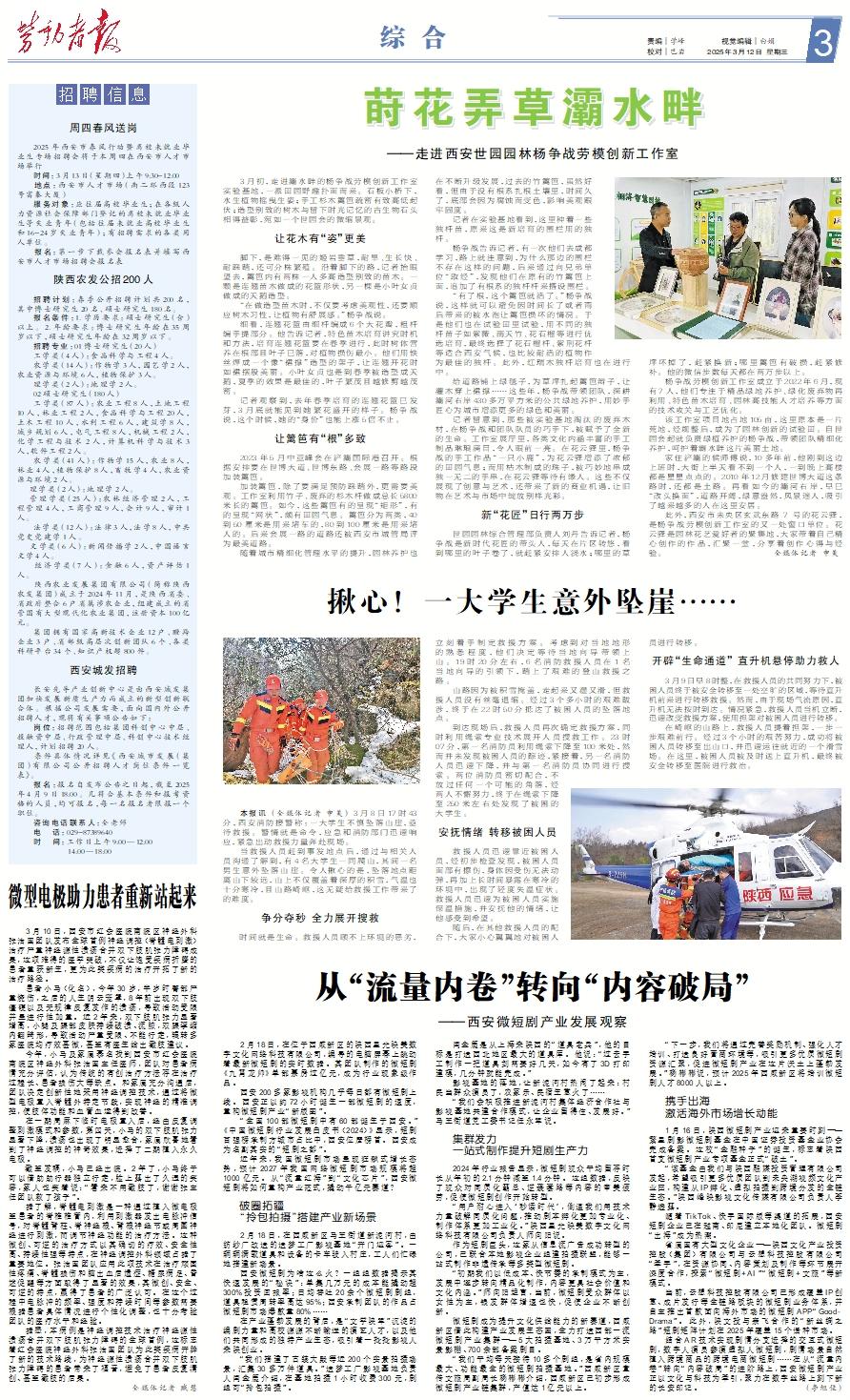 周四春风送岗 2025年西安市春风行动暨离校未就业毕业生专场招聘会将于本周四在西安市人才市场举行 时间:3月13日(星期四)上午9:30-12:00 地点:西安市人才市场(南二环西段123号富秦大厦) 服务对象:应往届高校毕业生;在各级人力资源社会保障部门登记的离校未就业毕业生等失业青年(包括往届未就业高校毕业生和16-24岁失业青年);有招聘需求的各类用人单位。 报名:第一步下载参会报名表并填写西安市人才市场招聘会报名表陕西农发公招200人 招聘计划:春季公开招聘计划共200名,其中博士研究生20名、硕士研究生180名。 报名条件:1.学历要求:硕士研究生(含)以上。2.年龄要求:博士研究生年龄在35周岁以下,硕士研究生年龄在32周岁以下。 招聘专业:01博士研究生(20人) 工学类(4人):食品科学与工程4人。 农学类(14人):作物学3人,园艺学2人,农业资源与环境6人,植物保护3人。 理学类(2人):地理学2人。 02硕士研究生(180人) 工学类(87人):农业工程8人,土地工程10人,林业工程2人,食品科学与工程20人,土木工程10人,水利工程6人,建筑学8人,城乡规划6人,电气工程8人,机械工程2人,化学工程与技术2人,计算机科学与技术3人,软件工程2人。 农学类(41人):作物学15人,农业8人,林业4人,植物保护8人,畜牧学4人,农业资源与环境2人。 理学类(2人):地理学2人。 管理学类(25人):农林经济管理2人,工程管理4人,工商管理9人,会计9人,审计1人。 法学类(12人):法律3人,法学8人,中共党史党建学1人。 文学类(6人):新闻传播学2人,中国语言文学4人。 经济学类(7人):金融6人,资产评估1人。 陕西农业发展集团有限公司(简称陕西农发集团)成立于2024年11月,是陕西省委、省政府整合6户省属涉农企业,组建成立的省管国有大型现代化农业集团,注册资本100亿元。 集团拥有国家高新技术企业12户、瞪羚企业3户、省部级高层次创新团队6个、各类科研平台34个、知识产权超800件。西安城发招聘 长安先导产业创新中心是由西安城发集团加快发展新质生产力而成立的新型创新联合体。根据公司发展需要,面向国内外公开招聘人才,现将有关事项公告如下: 岗位:招聘范围包括集团科创中心中层、投融资中层、行政管理中层、科创中心技术经理人,计划招聘20人。 条件具体情况详见《西安城市发展(集团)有限公司公开招聘人才岗位条件一览表》。 报名:报名自发布公告之日起,截至2025年4月9日18:00。凡符合基本条件和报考资格的人员,均可报名,每一名报名者限报一个职位。 咨询电话联系人:全老师 电 话:029-87389640 时 间:工作日上午9:00—12:00 14:00—18:00