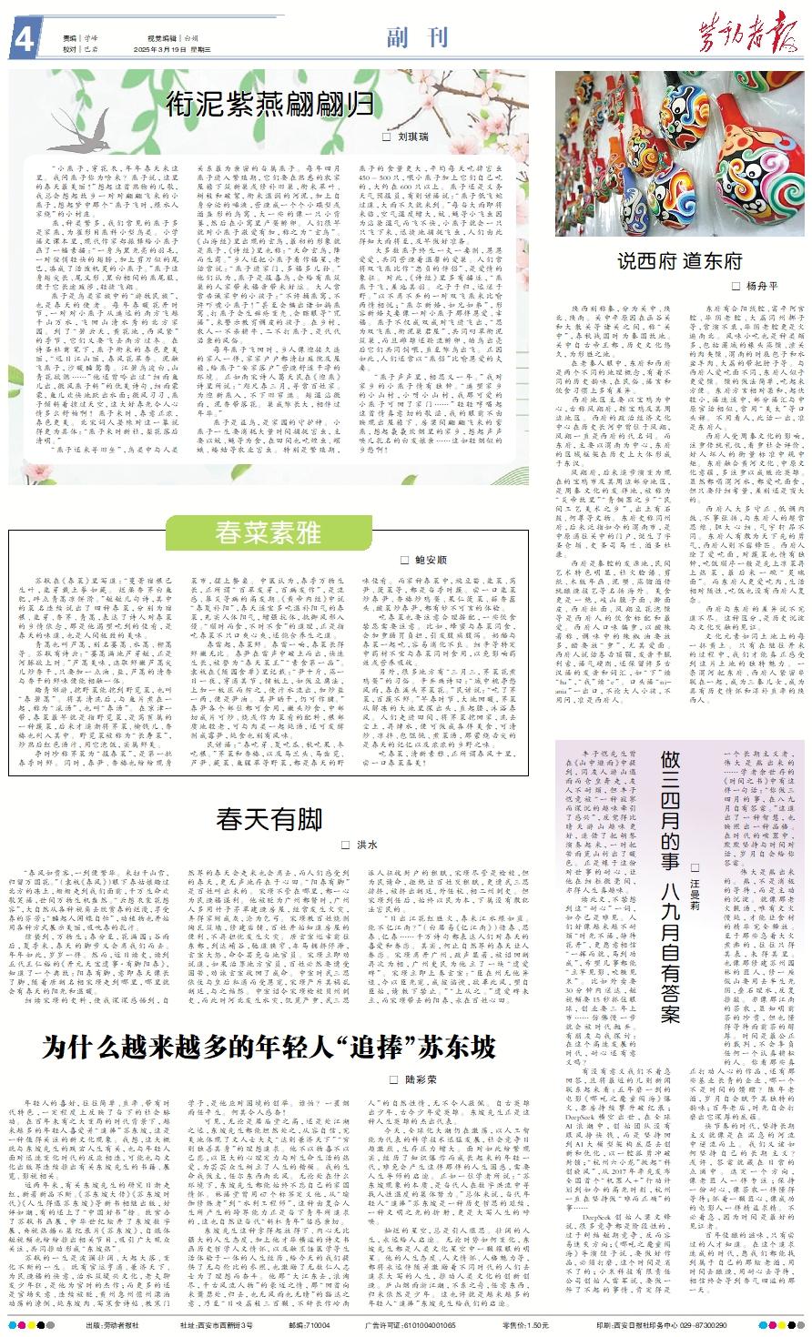 苏轼在《春菜》里写道:“蔓菁宿根已生叶,韭芽戴土拳如蕨。烂烝香荠白鱼肥,碎点青蒿凉饼滑。”短短几句诗,其中的菜名连续说出了四种春菜,分别为宿根、韭芽、香荠、青蒿,表达了诗人对春菜的乡情依念,那是他渴望吃到的佳肴,是春天的味道,也是人间极致的美味。 青蒿也叫芦蒿,别名蒌蒿、水蒿、柳蒿等。苏轼有诗云:“蒌蒿满地芦芽短,正是河豚欲上时。”芦蒿美味,选取鲜嫩芦蒿尖儿炒香干,只要加一点油、盐,芦蒿的清香与香干的鲜味便能相融一体。 踏青郊游,挖野菜能挖到野苋菜,也叫“春碧蒿”。将其清洗后,与鱼片煮在一起,称为“滚汤”,也叫“春汤”。在京津一带,春菜最早就是指野苋菜,是莴苣属的一种蔬菜,后来才逐渐将荠菜、榆钱儿、香椿也列入其中。野苋菜被称为“长寿菜”,炒熟后红色汤汁,用它泡饭,实属鲜美。 李时珍称荠菜为“报春菜”,是第一批春季时鲜。同时,春笋、香椿也纷纷现身菜市,摆上餐桌。中医认为,春季万物生长,正所谓“百草发芽,百病发作”,是流感、鼻炎等病的高发期。《黄帝内经》中说“春夏补阳”,春天适宜多吃温补阳气的春菜,充实人体阳气,增强抗体,抵御风邪入侵。“顺时而食,不时不食”的道理,正是指吃春菜不只口爽心爽,还饱含养生之道。 春雷起,春菜鲜。春雷一响,春菜长得鲜嫩无比。春笋在雷声中破土而出,快速生长,被誉为“春天菜王”“素食第一品”。袁枚在《随园食单》里记载:“笋十斤,蒸一日一夜,穿通其节,铺板上,如做豆腐法,上加一板压而榨之,使汁水流出,加炒盐一两,便是笋油。其笋晒干,仍可作脯。”春笋各个部位都可食用,嫩头炒食,中部切成片可炒、烧或作为菜肴的配料,根部质地较老,可与肉类一起炖汤,还可发酵制成霉笋,炖食也别有风味。 民谚语:“春吃芽、夏吃瓜、秋吃果、冬吃根。”荠菜和香椿,以及马兰头、马齿苋、芦笋、蕨菜、鱼腥草等野菜,都是春天的野味佳肴。而家种春菜中,豌豆苗、韭菜、莴笋、菠菜等,都是当季时蔬。尝一口韭菜炒春笋、香椿炒鸡蛋、果仁菠菜、蒜香藠头、酸菜炒春笋,都有妙不可言的体验。 吃春菜也要注意合理搭配,一些饮食禁忌需要注意。比如,蜂蜜与春菜同食,会加重肠胃负担,引发腹痛腹泻。奶酪与春菜一起吃,容易消化不良。细辛等特定中药材不宜与春菜同时食用,以免影响药效或营养吸收。 另外,很多地方有“三月三,荠菜花煮鸡蛋”的习俗。辛弃疾诗曰:“城中桃李愁风雨,春在溪头荠菜花。”民谚说:“吃了荠菜,百蔬不鲜。”早春时节,大地回暖,荠菜从解冻的大地里探出头,直起腰,沐浴春风。人们走进田间,将荠菜挖回家,洗去尘土,再焯水,便可做成各样美食,可清炒、凉拌、包馄饨、煮菜汤,那萦绕舌尖的是春天的记忆以及浓浓的乡野之味。 吃春菜,清新素雅,正所谓春风十里,尝一口春菜真美!