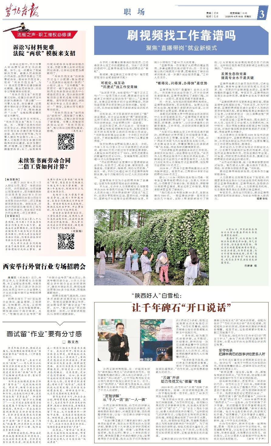 在手机上跟着主播看岗位投简历,已经是很多人找工作的便捷途径。当前广泛开展的春招中,直播带岗成为各地招聘会的“标配”。 刷视频、看直播找工作靠谱吗?能否更好促进企业和求职者匹配? 可视化、强互动 “沉浸式”找工作受青睐 “加班多不多,包住宿吗?”“属于正式工吗?”……每周五晚8点起,搭建成企业车间或者工作场所实景的快手“职小二”直播间里,主播亚亚细致介绍企业招聘情况,同时快速回答评论区里弹出的各种问题。短短一小时,后台就收到数百名求职者发来的报名意向。 近两年来,不少互联网平台将招工“搬”进直播间、将企业实地探访“剪”成短视频。这种可视化、强互动的招聘方式快速普及,为劳动者就业、企业招聘打开一扇新窗。 亚亚告诉记者,自己以前在一家快递公司从事宣传性短视频制作发布,发现视频页面不时有网友留言询问怎样到公司就业。“当时我就觉得这应该是一个介绍工作的好途径,于是就换到现在的公司专门从事直播带岗。” 快手快聘内容营销负责人赵天一介绍,今年1月15日至2月12日新春招工活动期间,超1000万用户通过快手视频直播求职,人数较去年同期增长了184%,双方达成意向的数量同比增长572%。仅滴滴专场,就吸引超13万人次投递简历。 “目前招聘岗位主要集中在蓝领和新就业形态,包括普工、配送仓储、餐饮服务、健身教练、育婴照护、咖啡师、网约车司机等。”赵天一说,平台已有超过40万名直播带岗专职主播,每个月能吸引约2.5亿人次劳动者参与。 直播带岗不仅为企业招聘开辟了新渠道,也成为各地政府促就业的新措施。 不久前,长沙市人力资源和社会保障局举办2025年春风行动线下专场招聘会,工作人员则在线上同步带求职者“沉浸式”找工作,实时分享现场比亚迪、蓝思科技、中联重科、蓝桥电子科技等企业招聘岗位信息,不到2小时吸引了超10万人次观看。 “直播带岗一方面能扩大招聘的覆盖范围,多渠道搭建供需对接平台;另一方面也能让我们根据用户反馈,更精准地了解劳动者的需求,进一步提升就业服务质量。”工作人员表示。“看得见、问得清、办得快”是优势 直播带岗为何广受青睐?业内人士表示,一方面是当前就业形势下,不少劳动者有求职需求,直播带岗降低了求职门槛,在手机上一点即可,甚至简历都不需要准备。 另一方面,与传统的网络招聘机构相比,直播带岗即时性、互动性更强。如果充分发挥其优势,能够提升求职者的信任度,让劳动者和企业更直接、更高效对接。 首都经济贸易大学中国新就业形态研究中心主任张成刚表示:“直播带岗不是简单通过主播把招聘信息‘念’出来,而是要‘看得见、问得清、办得快’,让劳动者最关心的薪资福利、工作环境、劳动时间等问题及时得到解答。” “大家可以看到这里工作环境还是不错的,招聘岗位对学历和工作经验要求不高,入职有老员工带着,很容易上手。”近期,在广西来宾市双飞汽车线束系统有限公司,一名主播走进车间,带着屏幕那头的求职者“看”流水线,并就各种问题频频互动。 “劳动者能直观感受到未来的工作状况,求职会比较放心,就业意愿也会增强。”来宾市人社局就业服务中心副主任黄美连说,了解到这家企业因生产需要急需用工,人社部门决定采用入企探岗方式直播招聘,很快帮企业招到113名员工。 2024年,广西首个直播带岗基地在来宾市挂牌成立。截至目前,已帮助50余家企业招聘约2500名员工。 职小二(山东)网络科技有限公司是一家专注直播带岗招聘的企业,负责人闫伟介绍,公司搭建了快递分拣、家政服务、焊接等12类招聘直播间,真实还原工作场景,帮助求职者更直观了解岗位。 “我们现在有专职主播30多名,兼职主播约1300名。一场直播就讲解一至两家企业的几个岗位,实际上帮求职者进行了筛选,让大家能比较容易找到适合自己的岗位。这种贴近服务是普通求职者过去难以获得的。”闫伟说。 发展生态待完善 提高专业水平是关键 直播带岗模式日益普及的同时,记者也注意到,具备专业素养的团队和人员还不多,统一完善的行业标准暂未建立,直播带岗整体质量还不高。专家表示,直播带岗的发展生态亟待完善,提高专业化水平是关键一步。 “直播招聘师不仅要具备直播经验,更需兼顾专业性和贴近性。”闫伟表示,作为中介桥梁,直播招聘师需完成企业和个人两端的资质审核和匹配,要收集梳理真实准确的用工信息,让求职者通过一块小屏幕就能“货比三家”,找到心仪工作。 当前通过线上直播带岗的,既有政府工作人员,也有用工企业和人力资源机构,其中相当一部分带岗主播没有接受过专门技能培训,对岗位情况和求职者需求缺乏足够了解,带岗效果有待提升。 人力资源社会保障部2024年发布的新一批新职业中,直播招聘师被正式列为新工种,在增强其职业认同的同时,也意味着这份工作将更加规范化、标准化。 多位业内人士建议加快培养职业化人才,让主播不仅做岗位信息的传递者,还应发挥就业指导等作用,增强直播的专业度、可信度,同时完善后端服务体系,提高企业招聘和劳动者就业的成功率。 “从目前的情况看,线上收集求职意愿相对较快。能否成功入职,重点取决于联系、筛选、面试等后续服务质量。”闫伟说。 推动直播带岗创新发展,还需各方力量积极参与。 人力资源社会保障部此