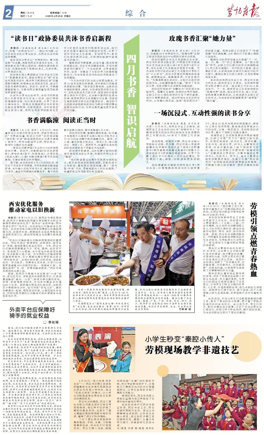 本报讯 (全媒体记者 臧慧 实习记者 刘蔚) 4月24日,由西安市总工会指导,新城区总工会主办的2025年“新城讲书人”主题阅读展示活动在西安航投未来发展集团职工书屋启动,50余名干部职工代表参加。 活动现场,新城区劳模、西安市实验小学副校长刘刚,区劳模,西安育英小学教师胡静先后声情并茂地讲述了阅读《曾国藩家书》和苏霍姆林斯基经典著作《把整个心灵献给孩子》时获得的深刻感悟,分享了劳模工匠在平凡的岗位上不平凡的事迹,用劳模的干劲、闯劲、钻劲感染更多的职工。 活动邀请帆书高级讲师邵强分享《智启未来:AI赋能高效阅读与办公效率提升》,通过AI技术与阅读的深度融合,探索AI工具在知识管理、高效阅读及智能办公中的应用,打造一场沉浸式、互动性强的读书分享,提升干部职工的数字素养。 新城区总工会将持续推动书香新城建设,以职工书屋“百千万”提质工程为抓手,开展经典诵读、读书征文、演讲比赛、文化沙龙、阅读分享、讲书人大赛等形式多样、内容丰富的线上线下阅读学习活动,重点在全区职工书屋开展“新城讲书人”主题阅读分享活动,征集并遴选优秀讲书人,为读书人、好书人、爱书人搭建交流平台和展示舞台,为第十九届“西安读书月”全民阅读活动开展营造良好氛围,不断提升职工综合素质、更好普惠服务职工。