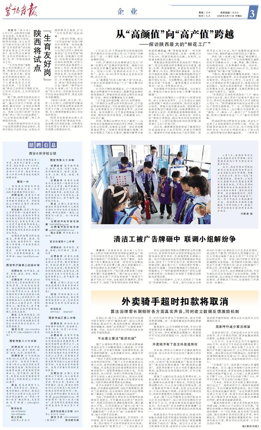 本报讯 (杨小玲) 6月9日,从陕西省妇联传来消息,为促进育儿群体高质量充分就业,陕西省妇联、省人社厅近日联合印发《关于开展“生育友好岗”试点促进就业创业工作的通知》,拟在西安市碑林区、宝鸡市眉县等20个县(市、区)开展首批试点工作。 “生育友好岗”是指用人单位根据生产、经营、管理特点开发的全日制、非全日制、新就业形态等就业岗位,优先面向履行12周岁以下儿童法定抚养义务的劳动者。“生育友好岗”具有工作时间可弹性安排、工作方式灵活、工作环境友好的特点。 据了解,陕西省鼓励支持企业开发形式多样的“生育友好岗”,重点引导生产制造、住宿餐饮、数字经济、文创经济等领域探索“生育友好岗”就业模式。各级人社部门将把“生育友好岗”纳入“家门口就业驿站”、“15分钟就业服务圈”、零工市场服务内容。 各级妇联组织将结合特色产业发展挖掘灵活就业岗位,及时对接女企业家企业、女性社会组织等用工需求,扩大“生育友好岗”就业容量。 《通知》明确,设立“生育友好岗”的部门和单位将享受一定的优惠措施。试点县(市、区)人社部门对育儿群体积极参加“生育友好岗”岗前培训、技能提升培训的,将按规定落实职业培训补贴政策;对用人单位招用就业困难育儿群体人员的,按规定落实社会保险补贴;对吸纳就业多、社会影响好的“生育友好岗”用人单位,在申请就业见习单位、参加“促进就业先进企业(组织)”等评选中予以优先考虑;对“生育友好岗”用人单位,省妇联将优先给予妇女就业创业项目、资金支持及表彰激励。 《通知》强调,试点县(市、区)人社部门、妇联组织将督导用人单位严格落实国家及陕西省关于产假、生育奖励假、陪产假、育儿假等待遇和女职工劳动保护规定。 陕西省妇联相关负责人表示,“生育友好岗”是就业形态、就业模式的创新实践,对构建生育友好型社会具有十分重要的示范意义和推动作用。