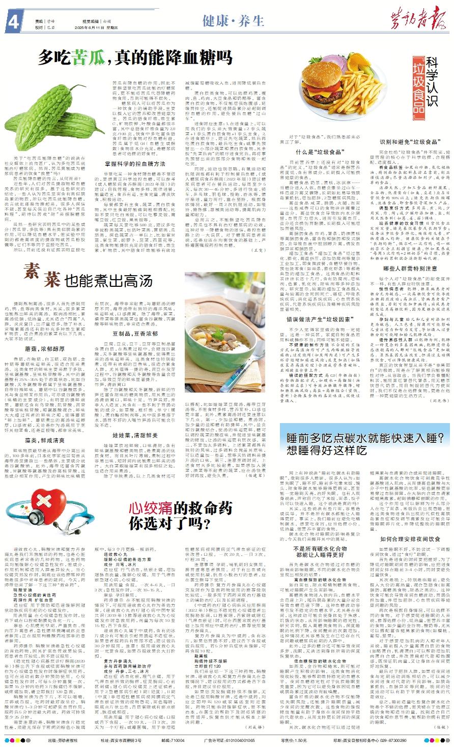 对于“垃圾食品”,我们熟悉却未必真正了解。什么是“垃圾食品” 目前营养学上还没有对“垃圾食品”的定义。“垃圾食品”通常是指营养密度低、含有害成分、长期摄入可能损害健康的食品。 高糖食品 奶茶、蛋糕、冰淇淋……当糖分进入人体,血糖会像坐过山车一样迅速升高又骤降,长期如此易导致胰岛素抵抗,增加肥胖、2型糖尿病风险。 高盐食品 咸菜、腊肠、火腿、泡面……这些咸香可口的食物往往藏着过量盐分。高盐饮食会导致体内水分潴留,血管压力增大,进而引发高血压。盐分还会损伤胃黏膜,长期摄入可能增加胃癌风险。 高脂肪食品 炸鸡、薯条、奶油蛋糕等高脂肪食品,富含饱和脂肪和反式脂肪,会导致血液中胆固醇升高,诱发血脂异常和脂肪肝。 超加工食品 “超加工食品”经过氢化、膨化、高温挤压、添加防腐剂等复杂工业加工,即食微波餐、含糖早餐谷物、预包装零食(如辣条、膨化虾条)等都是典型的超加工食品。这类食品的配料表往往长达十几行,含有防腐剂、增味剂、色素、乳化剂、甜味剂等多种添加剂。研究显示,较高的超加工食品摄入量与较高的全死因死亡、癌症、呼吸系统疾病、消化道系统疾病、心血管系统疾病、代谢系统疾病以及精神疾病风险显著相关。错误做法产生“垃圾因素” 不少人觉得家里做的食物一定健康。这是一种误区。家庭自制食品若用料或操作不当,同样可能不健康。 不健康的制作方法 不合理的烹饪方式如高温油炸可产生丙烯酰胺等致癌物;过度烧烤(如炭烤肉类)可产生多环芳烃增加癌症风险;反复加热(如隔夜菜再高温处理)会造成营养素破坏,亚硝酸盐含量上升。 错误的搭配方式 高GI(升糖指数)的食物搭配方式,如碳水+高脂肪(油条配甜豆浆)可导致血糖骤升骤降,增加糖尿病风险;高盐+高糖组合(蜜饯、酱料)会掩盖食物的真实味道,促使过量摄入。识别和避免“垃圾食品” 完全杜绝“垃圾食品”并不现实,健康管理的核心在于科学选择、合理搭配、适度摄入。 看食品标签 如果白砂糖、氢化植物油、精制面粉在配料表排名靠前,则应谨慎选择;尽量选择添加剂少、成分简单的食品。 选择天然、少加工食品 新鲜蔬果、全谷物、优质蛋白(如鱼、豆类)应占日常饮食的80%以上;避免长期依赖罐头、速冻食品、即食餐饮等深加工产品。 调整烹饪方式 多用蒸、煮、炖,少用煎、炸、烤;减少额外添加糖、盐,利用天然香料(如葱、姜、蒜)调味。 培养健康的饮食习惯 日常饮食应定时定量,避免暴饮暴食或长期节食;还要注重饮食多样化,确保维生素、矿物质摄入均衡。健康饮食的关键在于“长期均衡”,偶尔吃一次炸鸡、喝一杯奶茶不会立刻损害健康,但如果养成“每周3次炸鸡+2杯奶茶”的习惯,热量和糖分的累积就会逐渐影响代谢。哪些人群需特别注意 每个人对“垃圾食品”的耐受度并不一样,有些人群应特别注意。 慢性病患者 肥胖、糖尿病患者对糖分尤为敏感,一次高糖饮食可能导致血糖剧烈波动;高血压、肾病患者需严格限盐,否则可能加重病情;痛风患者则需远离高糖饮料,因为果糖会促进尿酸生成。 孕妇与儿童 胎儿和儿童对添加剂更为敏感。人工色素、防腐剂可能影响儿童注意力和智力发育,孕妇摄入过量糖分则可能增加胎儿肥胖风险。 遗传易感性人群 以肥胖为例,肥胖是一种复杂的多基因疾病,肥胖遗传易感性较高的人群对“垃圾食品”更加敏感。虽然基因无法改变,但通过主动调整饮食,可以降低健康风险。 真正的饮食智慧从来不是“非黑即白”的极端,而是在了解真相后能够理性对待、从容取舍。当我们学会看懂配料表,能用蒸红薯替代薯条,用无糖茶饮替代奶茶,用自制饭团替代方便面时,我们不仅是在选择食物,更是在选择一种更健康的生活方式。 (刘光伟)