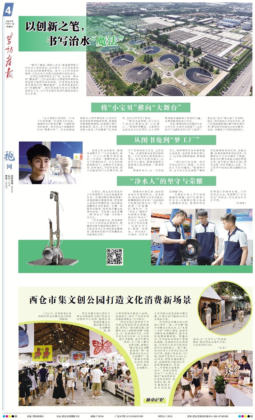 “镜写三秦色,窗摇八水光”是温庭筠笔下的长安八水好风光,从古至今,人们对美好的向往总与水脉紧密相连。如今,人们对水系的情深,已经从诗人的笔尖流淌至科技的前沿。 在西安市第四再生水厂里,有这样一群水质“魔法师”,工作室的领头人蔡虎林带领团队用创新之笔续写治水新篇。30多项技术创新项目是他们的“魔法卷轴”,16项专利是他们的“荣誉勋章”。他们用创新为净水公司激活新质生产力,让千年水脉在新时代继续流淌出动人乐章。将“小宝贝”推向“大舞台” “这个是我们发明的一个水下打捞装置。”在创新工作室里,蔡虎林向记者展示着一个造型独特的设备。他介绍这个装置是团队的“得意之作”。污水处理池需要24小时不停运转,以往的打捞设备需要依赖起吊绳,但是起吊绳易磨损断裂,导致停工停产影响效率,现在,水下打捞装置的投入使用,不仅提高了打捞效率,也为公司节约了成本。 “领导也没想到,员工会在下班后会琢磨这些‘小玩意儿’。”蔡虎林笑着说。正是因为这些实实在在的项目,让公司管理层越来越看到了创新的力量,也更加重视创新工作室。 目前,蔡虎林所在的清远中水公司共有24座污水处理厂,过去每个厂也都会有自己的“小发明”,但这些“宝贝”难以被广泛知晓。现在,通过创新工作室的平台,各厂的创新成果得以集中展示和共享,推动技术经验的交流与复用,也进一步激发了公司的创新活力。从图书角到“梦工厂” 谈及工作室的起步,蔡虎林感慨万千:“工作室最初,是从一个小小的图书角开始的。”公司的一笔图书资金,成为了梦想的种子。在工会的扶持和推动下,这颗种子生根发芽、茁壮成长,不知不觉间,那个仅能容纳几人的图书角,成为了省级创新工作室,也见证了每一位成员职业发展的新航程。“工作室现在是由我核心带头,有两个主要负责人,以及五个小组长,都是由高级工程师和工程师组成。”蔡虎林说到。 蔡虎林坦言,从一名普通员工,到带领团队每年都要拿出创新性、发明性专利的领头人,这份转变既是挑战,更是成长。 “现在的工作室是一张对外的宣传名片,更是一个对内的人才培养基地。”蔡虎林介绍,这几年工作室承接了集团的技能等级考试培训、技能大赛,并承担组织考试的任务,为集团的人才培养提供了摇篮。那些曾在图书角被点亮的智慧火种,如今通过“理论培训+项目实战”的培育模式,在新一代工匠手中绽放出更加耀眼的光芒。“净水人”的坚守与荣耀 在西安,再生水的用途早已不再局限于工业冷却或景观补水。护城河畔的碧波荡漾、汉城湖畔的清澈见底,甚至街头绿地的喷灌系统,处处都流淌着再生水的身影。它像一条隐形的脉络,悄然滋养着这座城市的每一寸肌理,也见证着一群“净水人”日复一日的坚守与付出。 “污水处理行业,我觉得除了对个人的专业有要求外,更重要的是不能间断的责任心。”在谈及净水工作者的职业精神时,蔡虎林的眼中闪烁着坚定而温和的光芒。 蔡虎林告诉记者,他的家就住在护城河附近。茶余饭后,他也会和家人在河边散步,指着清澈的河水说:“这就是我们处理过的再生水。”那一刻,他脸上洋溢着的,是作为一名“净水人”最质朴的骄傲与荣耀。或许对“净水人”们而言,这份职业早已不仅仅是一份谋生的工作,更是一种使命,一种对家乡、对城市、对自然的深情守护。 当城砖在匠人手中垒起巍峨的城墙,他们以筋骨守护长安;当数据在指尖流淌出清澈的河流,蔡虎林团队用智慧守护城市水域。守护的方式在变,但那颗让“长安常安”的执念,仍在流水中生生不息。 (刘翊琪)