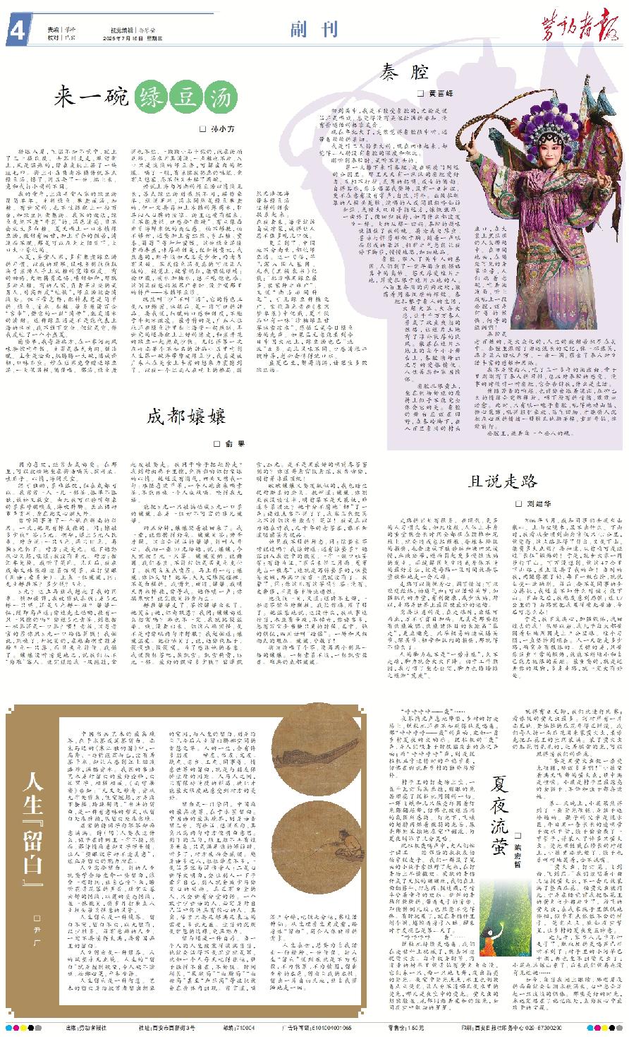 因为喜欢,经常去成都耍。在那里,可以放松地坐在街沿喝茶、掏耳朵、嗑瓜子。心情,海阔天空。 酒可独酌,茶难孤饮,但在成都可以。我常常一人一几一杯茶,孤单不孤独,放松又放空。由此我可以静听邻桌的茶客呼朋唤友,海吹神聊。虽止语却市声贯耳,身在此又心游天外。 曾听同事讲了一个她在越南的经历。一天,她见有擦皮鞋的。问:擦鞋多少钱?答:5元。擦毕,递上5元人民币。对方说:一只5元,两只10元。再掏5元扔下。对方:是美元。这下她怒从心头起,吼道:我没有美元。对方:按汇率兑换。我听了笑死。几天后,我在成都文殊院路边茶馆喝茶,正打望眼(川话:看美女)。上来一位孃孃,问:先生擦鞋不?多少钱?5元。 5元?这立马让我想起了我的同事。稍加掩饰,我故作认真状:是5元擦一只呢,还是5元擦一双?孃孃一怔,随即高声道:你这先生怪哟,鞋有一只一只擦的吗?你这5元素茶,到底按一杯算还是一口算?喂!老板,这哥老官的茶你照5元一口给他算钱!我忙说,别喊了,开玩笑的,在越南擦皮鞋是按5元一只算,而且美元计价,我怕了。孃孃没听清楚地名,说我们从不“为难”客人。说完递给我一双拖鞋,拿起皮鞋要走。我问干啥子把鞋拎走?我到对面巷子里擦,免得影响你打望眼的心情。她还没有消气,回头又怼我一句:难怪喜欢单吊,一个人跑出来喝素茶,不能再喊一个人成双喝。呛得我无语。 能把5元一只鞋搞怪成5元一口茶的孃孃,真是一位妙不可言的非凡孃孃。 约五分钟,孃孃提着鞋回来了。我一看,说你擦得好亮。孃孃笑答:帅哥才靓。这么会说话的孃孃,好叫人开心。我抽一张10元给她,说,孃孃,今天就按5元一只算。孃孃笑纳,说谢谢,我们善良,不计较你是否美元支付了。我闻言差点喷茶。马上补一句:孃孃,你仁义呀!她答,天天文殊院摆摊,不是白摆的。我嘴欠,戏道,孃孃,我明天再来擦鞋,你等我。她佯嗔一声:你骗鬼嗦!说完微笑转身而去。 擦鞋孃孃走了,茶馆孃孃出来了。她笑言:她,你都敢惹?我问:孃孃都这么厉害吗?那也不一定,我就比较温柔。哦,没看出来。你这人确实怪,是不是对你吼两句才舒服?我赶忙道:孃孃温柔。她扑哧笑了,说,送你包瓜子,慢慢嗑,慢慢喝。为了感谢她的善意,我说换杯茶吧,换飘雪。飘雪稍贵,15元一杯。最好的飘雪多少钱?碧潭飘雪,25元。是不是用最好的明前春茶窨制的?你这哥老官假老练,我告诉你,明前并非最顶级! 瞅瞅孃孃又要发飙似的,我也暗生捉对厮杀的念头。挑衅道:孃孃,你别欺我没读过书,明前茶不是天花板,难道冬茶顶流?她十分不屑地“切”了一声:读过点书不得了了,我家三代做茶比不过你这书蠹头?笑话!我是真以为她在诈我,几十年的老茶客,谁不知道明前茶为极品。 她见我不服的神态,问:惊蛰采茶听说过吗?我惊讶道:还有惊蛰茶?她露出入我彀中的微笑,一字一顿口吐芬芳:有诗为证,“雀舌未经三月雨,龙芽先占一枝春”,这就是写惊蛰茶的,惊蛰茶太嫩,那满口清香一泡就没有了。我蒙了,问:你这儿有这茶吗?答:没有,太奢侈,不具备市场流通性。 她浅浅一笑,又道:这诗不生僻,一些老茶馆当对联挂。我忙作揖,服了服了。她温柔地说,这没什么,我从事这行当,术业有专攻,不稀奇,你读书多,总有万宝全书缺只角的时候,正常。她的调侃,四川话叫“踏谑”。一场和风细雨式的碾压。孃孃,受教了! 街边边喝了个茶,遭遇两个别具一格的孃孃。一杯素茶不淡,一杯飘雪盈香。难忘的成都孃孃。