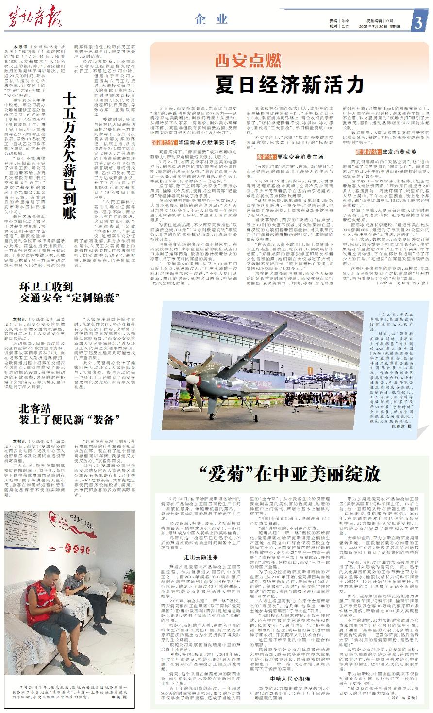 7月24日,位于哈萨克斯坦北哈州的爱菊农产品物流加工园区面粉生产车间一派繁忙景象。伴随着机器的轰鸣,一袋袋包装完成的面粉源源不断走下生产线。 经过码垛、归集、装车,这批面粉将搭乘最近一趟中欧班列(西安),一路向东,最终成为中国人餐桌上的美味佳肴。 尽管对这一流程早已烂熟于心,39岁的芦培杰仍然会抽出时间到各个生产环节看看。走出去融进来 芦培杰是爱菊农产品物流加工园区副经理。作为首批进入园区的中方员工之一,自2016年满载2000吨油脂产品的首趟中欧班列(西安)回程专列开行以来,他见证了超过40万吨的油脂、小麦等哈萨克斯坦农产品进入中国百姓家。 2015年,响应共建“一带一路”倡议,西安爱菊粮油工业集团(以下简称“爱菊集团”)沿着中欧班列(西安)足迹走进哈萨克斯坦,吹响了陕西企业向西“出海”的号角。 哈萨克斯坦地广人稀,是闻名世界的粮食生产国和小麦出口国,其广袤的平原和肥沃的黑土地为小麦提供了得天独厚的生长环境。 跟随公司考察团首次踏足中亚的芦培杰十分兴奋。 考察、签约、投资、建厂,2016年底,经过半年的建设,哈萨克斯坦最大的油脂厂在爱菊农产品物流加工园区拔地而起。 爱菊,这个来自古丝路起点的陕西企业,如生机勃勃的小麦般在北哈州的沃土扎下了根。 近十年的光阴倏忽而过。一年超过300天的时间常驻北哈州,如今的芦培杰不仅学会了哈萨克语,还成了当地人眼里的“土专家”。从小麦各生长阶段管理要点到常见的病虫害防治问题,附近的种植户上门咨询,芦培杰基本上能够对症下药。 “咱们不仅走出来了,也融进来了!”芦培杰笑着说。 “融”进中亚的,不只是芦培杰。 随着共建“一带一路”倡议的不断深化,爱菊集团在哈萨克斯坦建立粮油生产基地、在阿拉山口综合保税区设立仓储加工中心、在西安浐灞国际港打造销售集散中心,逐步形成“生产—物流—消费”全流程粮食生产加工贸易体系,并构建起“北哈州、阿拉山口、西安”三位一体的跨国产业链。 为了充分挖掘哈萨克斯坦粮油的产业潜力,从2018年开始,爱菊集团与当地政府、农场主深度合作,先后签订150万亩的“订单农业”,通过“订单收购”“预付货款”的方式,引导当地农民进行田间管理、科学种植。 农场主格里高利·加尔库什金是芦培杰的“老朋友”。这几年,他拿出一半的土地参与爱菊集团“订单农业”项目。 “我们按市场需求种粮,不仅有预付款,还有中国农业专家的技术指导和帮助,风险更小了,底气更足了。”格里高利·加尔库什金说,明年他打算引进中国种子和农机,开展更深入的技术合作。 这正是不断深化的中国—中亚合作的缩影。 越来越多哈萨克斯坦优质农产品进入中国市场,越来越多的中国技术赋能哈萨克斯坦农业升级,越来越密切的中哈情谊为“一带一路”民心相通、互利共赢写下了崭新的篇章。中哈人民心相连 28岁的耶力加斯做梦也没想到,少年时代的成长经历,会在十几年后迎来一场温暖的回响。 耶力加斯是爱菊农产品物流加工园区(美奈实园区)饲料车间主任。16岁之前,他一直跟随父母在新疆生活,能讲一口流利的汉语和哈萨克语。2014年,在新疆维吾尔自治区伊宁市念完初中后,耶力加斯听从父母的安排,回到哈萨克斯坦完成了高中和大学的学业。 大学毕业后,耶力加斯在哈萨克斯坦辗转多地,一直没能找到称心如意的工作。2023年6月,举家迁居北哈州的耶力加斯在网上看到了爱菊集团的招聘信息。 “爱菊,我见过!”耶力加斯兴冲冲地报了名,并如愿成为爱菊的一员。熟悉的文化氛围和高效的工作节奏让耶力加斯如鱼得水,他很快成长为饲料车间骨干,2024年10月开始担任车间主任,与中方派驻的员工也成了无话不谈的朋友。 如今,爱菊集团在哈萨克斯坦建成油脂厂、面粉车间、饲料车间、挂面车间等生产单元以及仓容10万吨的粮库和6条铁路专用线,带动当地1000多人实现稳定就业。 不忙的时候,耶力加斯时常邀请芦培杰和同事到位于科克舍套的家里小聚。妻子准备一桌丰盛的大餐,还会端上哈萨克传统美食——巴吾尔萨克,然后告诉大家:“食材用的是爱菊面粉,是熟悉的味道!” 从哈萨克斯坦小麦,到爱菊的面粉,再到热气腾腾的哈萨克美食,跨越国界的农业合作,在一块块巴吾尔萨克中化作真挚的情谊,让中哈人民的心紧紧相连。 耶力加斯说,中国企业的到来不仅推动当地农业发展,也让他们下一代的未来有了更多可能。 “希望我的孩子将来能走得更远,看到更大的世界!”耶力加斯说。 (刘印 田若楠)