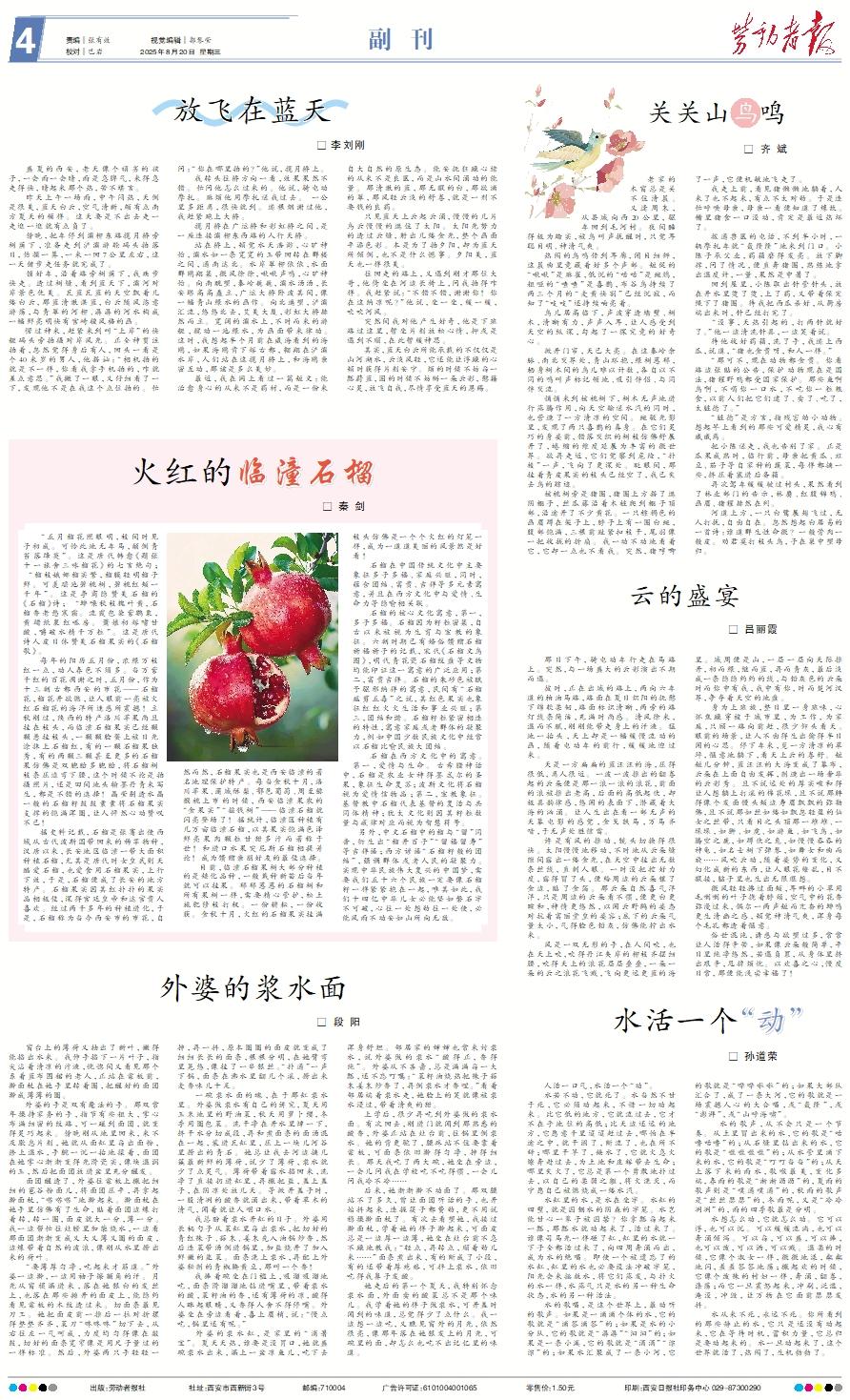“五月榴花照眼明,枝间时见子初成。可怜此地无车马,颠倒青苔落绛英”。这是唐代韩愈《题张十一旅舍三咏榴花》的七言绝句; “榴枝娥娜榴实繁,榴膜轻明榴子鲜。可羡瑶池碧桃树,碧桃红颊一千年”。这是李商隐赞美石榴的《石榴》诗; “蝉噪秋枝槐叶黄,石榴香老愁寒霜。流霞包染紫鹦粟,黄蜡纸裹红呱房。萧娘初嫁嗜甘酸,嚼破水精千万粒”。这是唐代诗人皮日休赞美石榴果实的《石榴歌》。 每年的阳历五月份,浓绿万枝红一点,动人春色不须多。当万紫千红的百花凋谢之时,五月份,作为十三朝古都西安的市花——石榴花,榴花开欲燃,让人眼前一亮被火红石榴花的海洋所迷惑所震撼!立秋刚过,陕西的特产洛川苹果尚且挂在枝头,而临潼石榴果实已经颗颗悬挂枝头,一颗颗脸蛋上被日光涂抹上石榴红,有的一颗石榴果独秀,有的两颗三颗甚至更多的石榴果仿佛是双胞胎多胞胎,将石榴树枝条压迫弯下腰,这个时候不论是拍摄照片,还是田间地头翰墨丹青来写生,都是不错的选择!晶莹剔透水晶一般的石榴籽鼓鼓囊囊将石榴果实支撑的饱满浑圆,让人怦然心动赞叹不已! 据史料记载,石榴是张骞出使西域从古代波斯国带回来的稀罕物种,汉唐以来,长安地区临潼一带大面积种植石榴,尤其是唐代时女皇武则天酷爱石榴,也爱食用石榴果实,上行下效,于是,石榴便成了长安的地方特产。石榴果实因其红扑扑的果实品相极佳,深得宫廷皇帝和达官贵人喜欢。经过两千多年的种植进化,于是,石榴称为当今西安市的市花,自然而然,石榴果实也是西安临潼的著名地理保护特产。每当金秋十月,洛川苹果、蒲城酥梨、鄠邑葡萄、周至猕猴桃上市的时候,西安临潼果农的“金果实”“摇钱树”——临潼石榴就闪亮登场了!据统计,临潼区种植有几万亩临潼石榴,以其果实饱满色泽鲜亮果肉颗粒甘甜多汁而著称于世!和进口水果突尼斯石榴相提并论!成为馈赠亲朋好友的最佳选择。 目前,临潼石榴果树大部分种植的是矮化品种,一般栽种新苗后当年就可以挂果。郁郁葱葱的石榴树和所有果树一样,需要精心管护,松土施肥修枝打杈。一份耕耘,一份收获。金秋十月,火红的石榴果实挂满枝头仿佛是一个个火红的灯笼一样,成为一道道美丽的风景煞是好看! 石榴在中国传统文化中主要象征多子多福、家庭兴旺,同时,蕴含团结、富贵、吉祥等多元素寓意,并且在西方文化中与爱情、生命力等隐喻相关联。 石榴的核心文化寓意,第一,多子多福。石榴因为籽粒密集,自古以来被视为生育与宗教的象征。六朝时期已有婚俗馈赠石榴祈福祈子的记载,宋代《石榴文鸟图》,明代青花瓷石榴纹盘等文物均能印证这一寓意的广泛应用;第二,富贵吉祥。石榴的朱砂色被赋予驱邪纳祥的寓意,民间有“石榴瘟剪五毒”之说,其红色果实也象征红红火火生活和事业兴旺;第三,团结和谐。石榴籽粒紧密相连的特性,寓意家庭或者群体的凝聚力,例如中国少数民族文化中经常以石榴比喻民族大团结。 石榴在西方文化中的寓意。第一,爱情与生命。古希腊神话中,石榴是农业女神得墨忒尔的圣果,象征生命复苏;波斯文化将石榴视为爱情信物品;第二,宗教象征。基督教中石榴代表基督的复活与共同体精神;犹太文化则因其籽粒数量与戒律对应而视为智慧符号。 另外,中文石榴中的榴与“留”同音,衍生出“榴开百子”“留福留寿”等吉祥语;西方谚语“石榴籽般的团结”,强调群体或者人民的凝聚力。实现中华民族伟大复兴的中国梦,需要我们五十六个民族一定要像石榴籽一样紧紧抱在一起,唯其如此,我们十四亿中华儿女必能坚如磐石牢不可破,心往一处想劲往一处使,必能风雨不动安如山所向无敌。